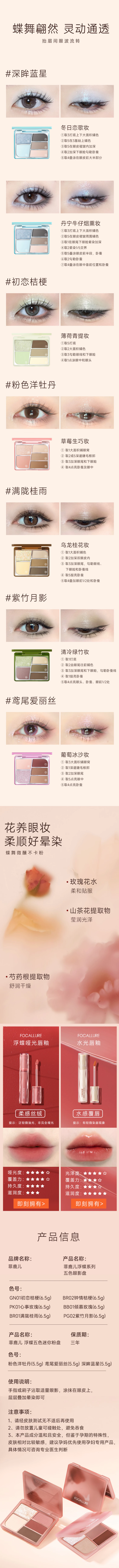 【42元会员福利哦】菲鹿儿五色眼影盘PK01-心事玫瑰 【潮品】