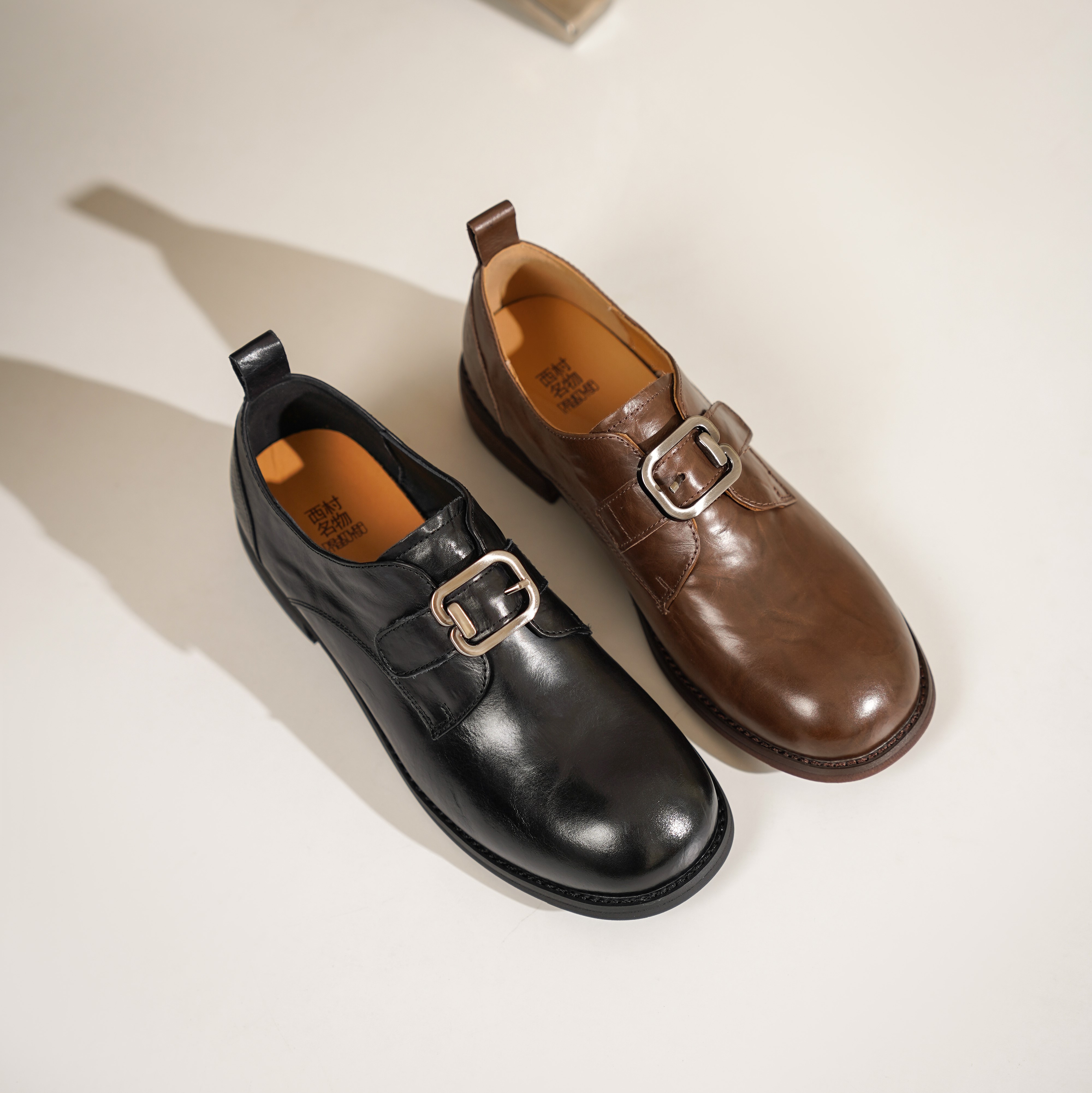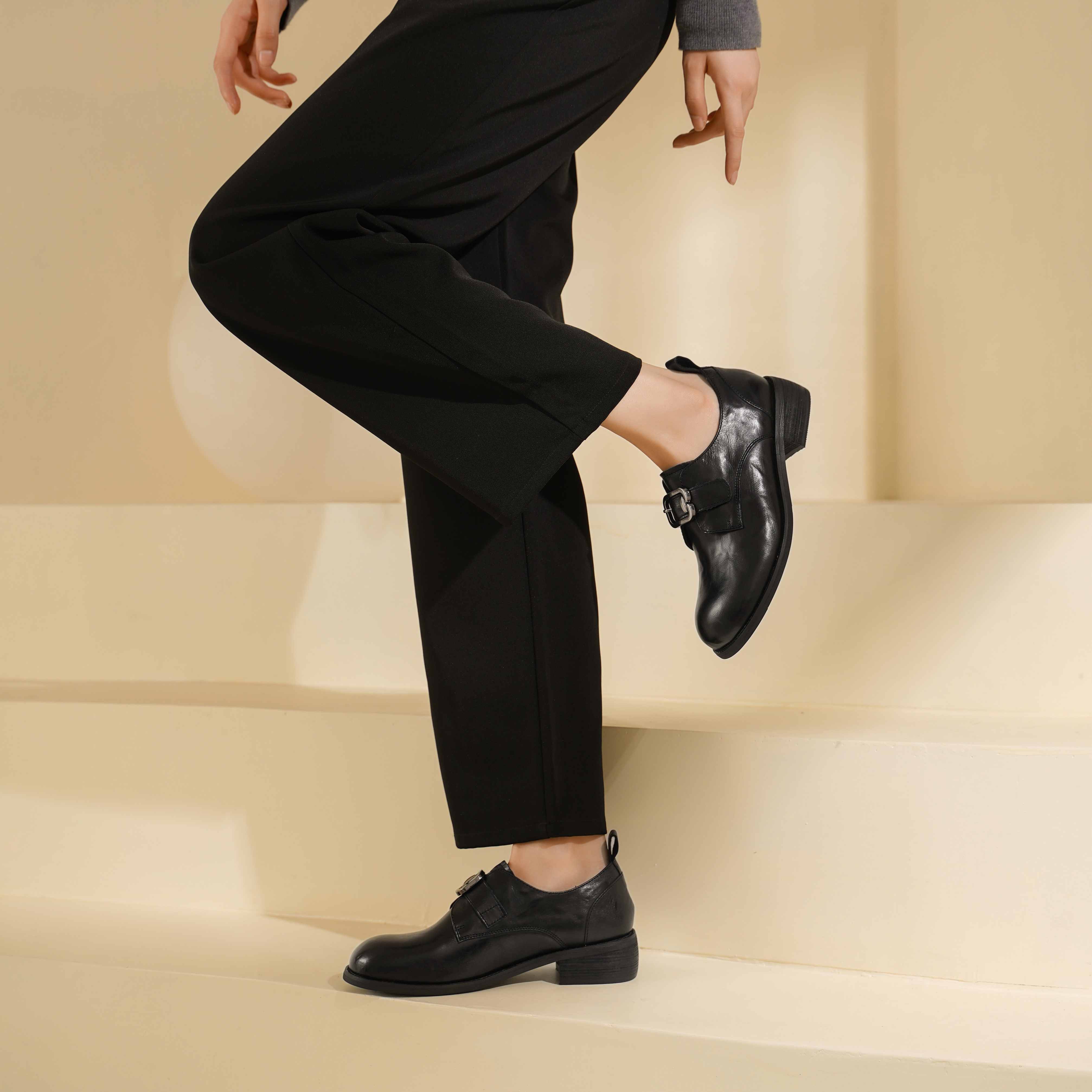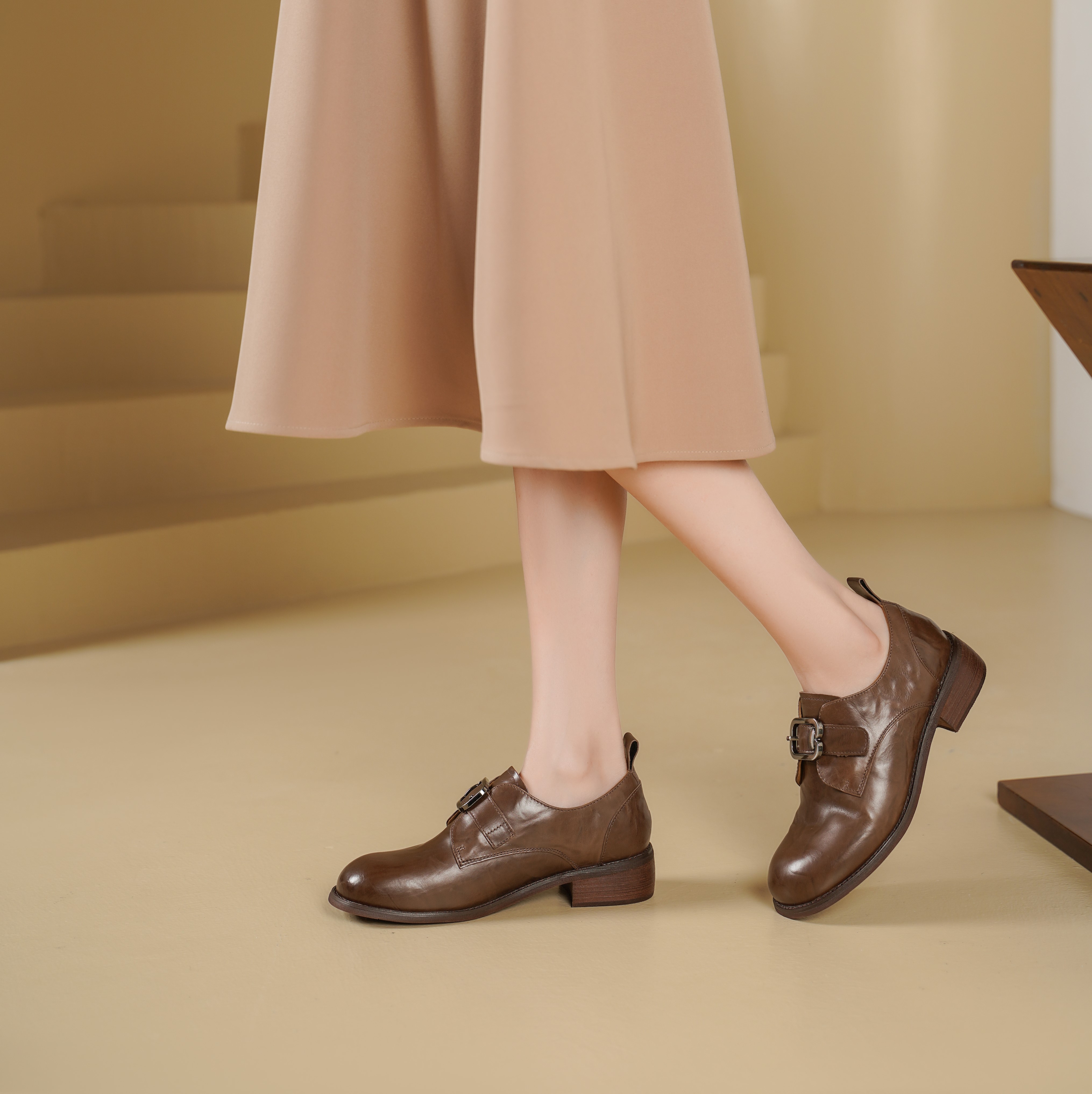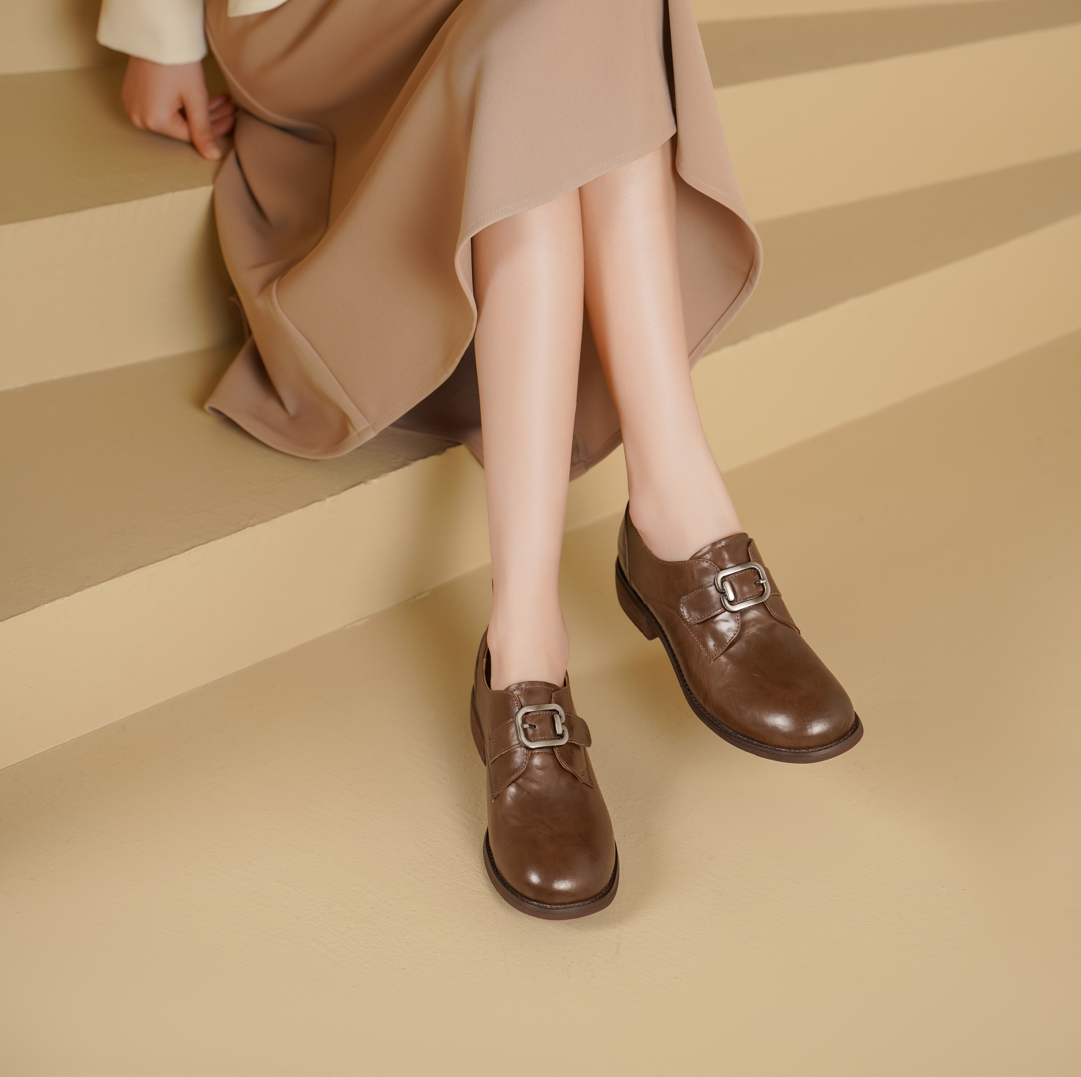 西村名物2025年春季新款小圆头低平跟乐福鞋深口单鞋X25AM15401