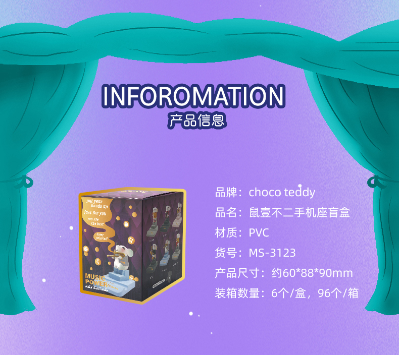 巧克力熊鼠壹不二手机座盲盒MS-3123玩具礼物潮流桌面摆件手办
