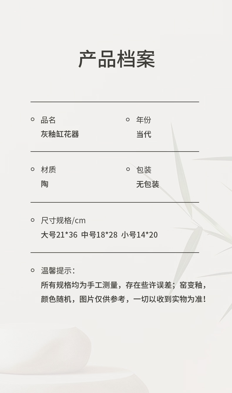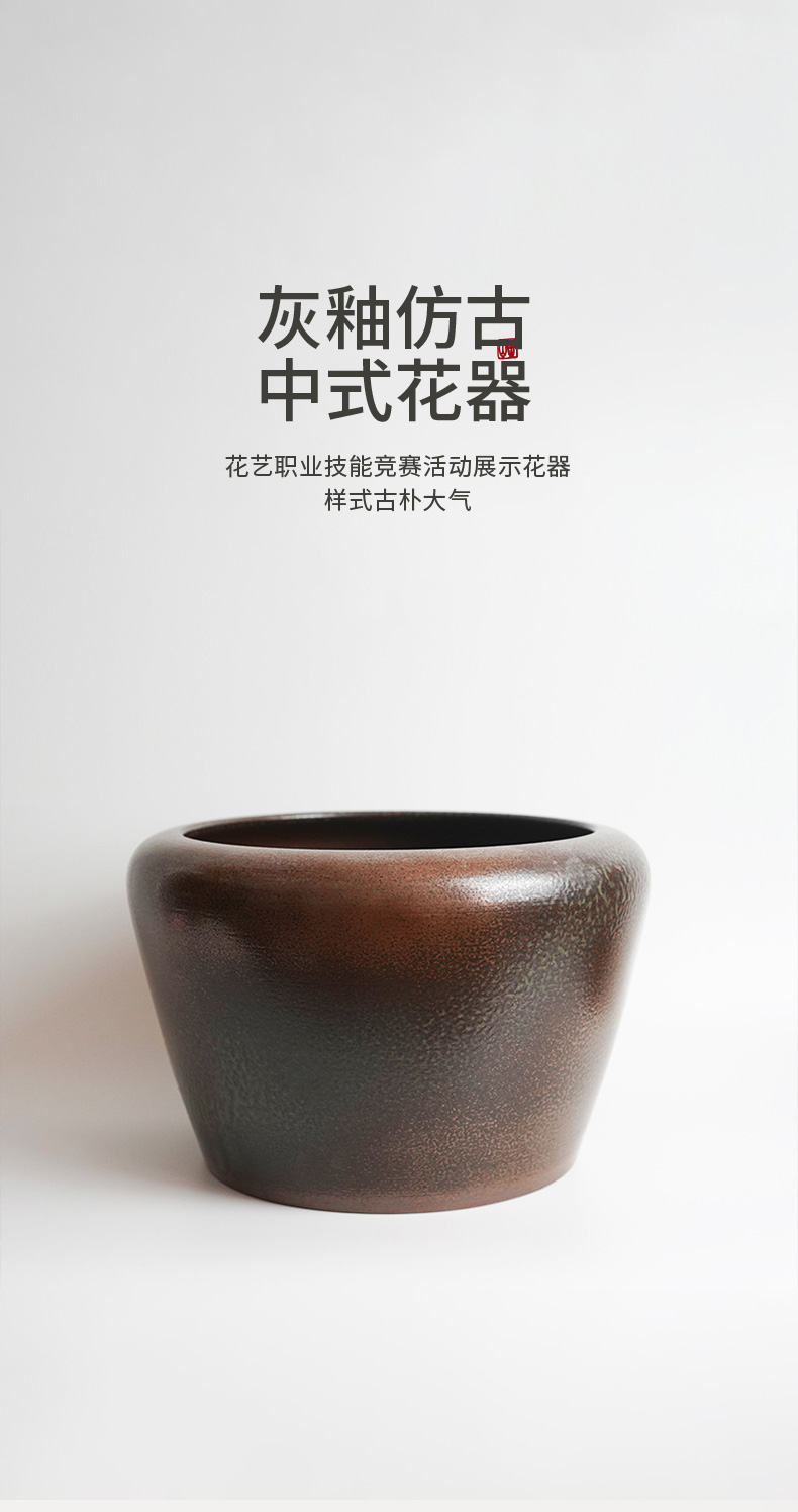 灰釉缸花器中式传统花瓶花艺花道比赛用花器花艺职业技能竞赛活动展示