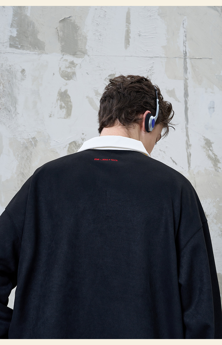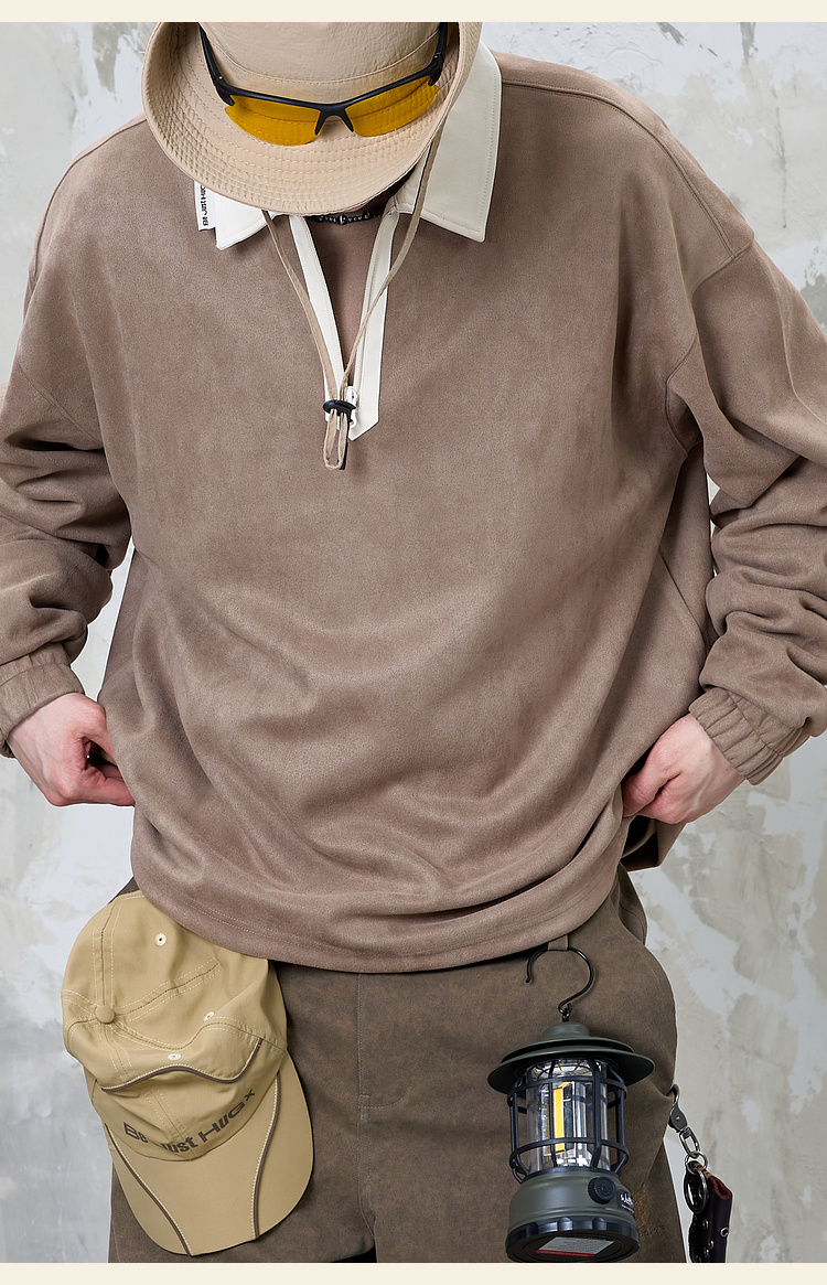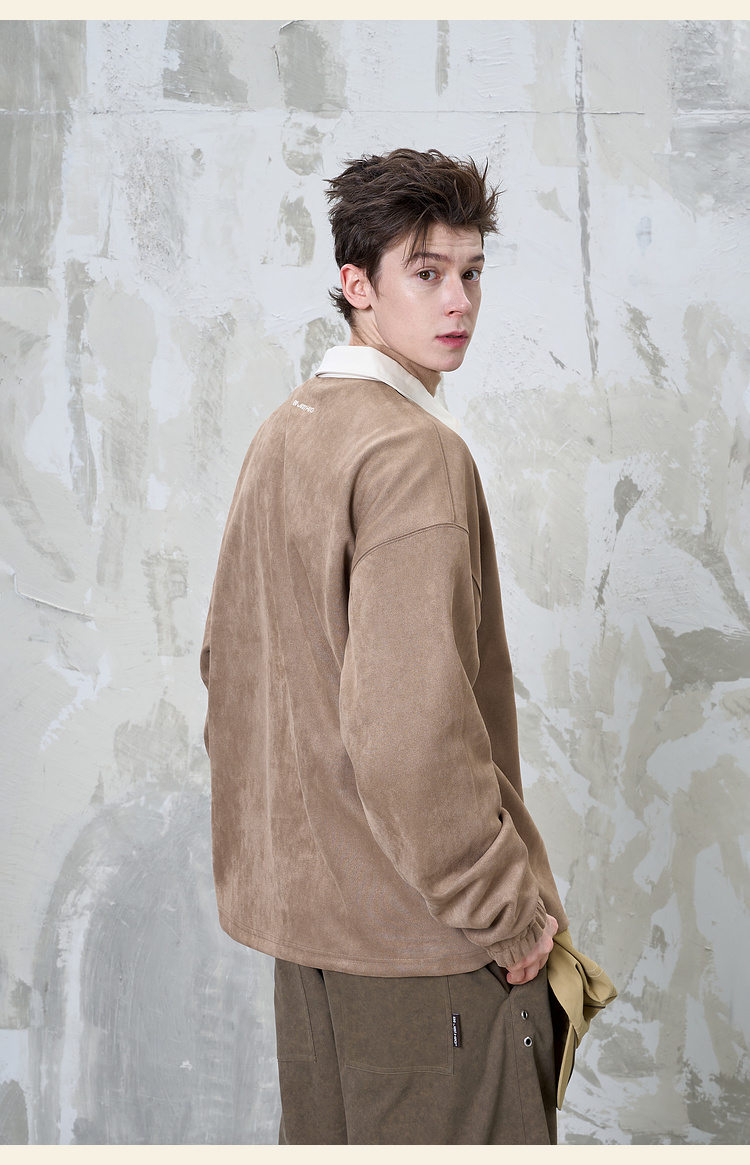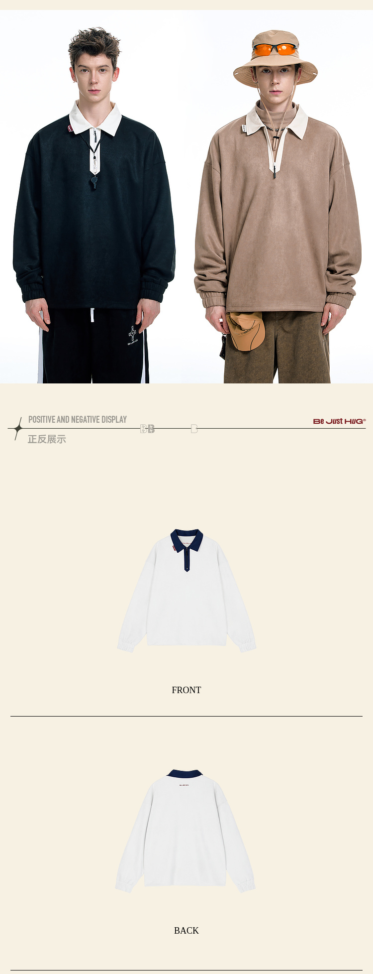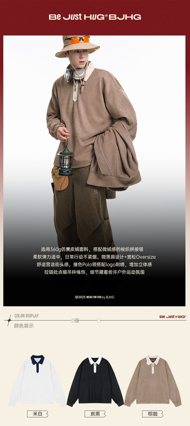 BJHG不计后果 美式高街POLO衫男春季流行宽松简约仿麂皮绒长袖t恤