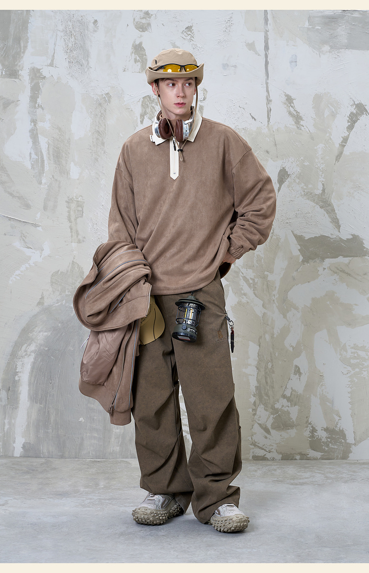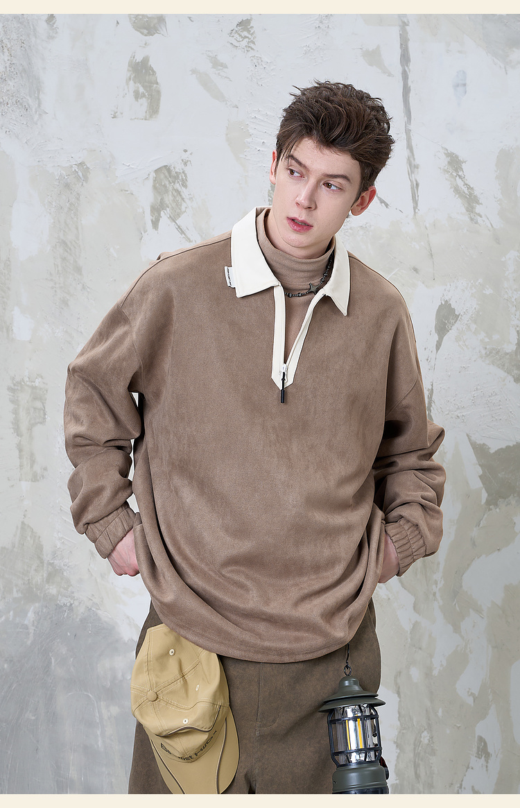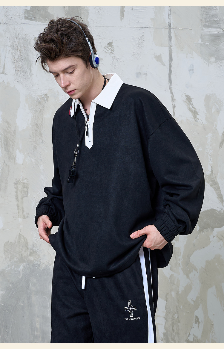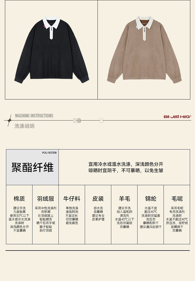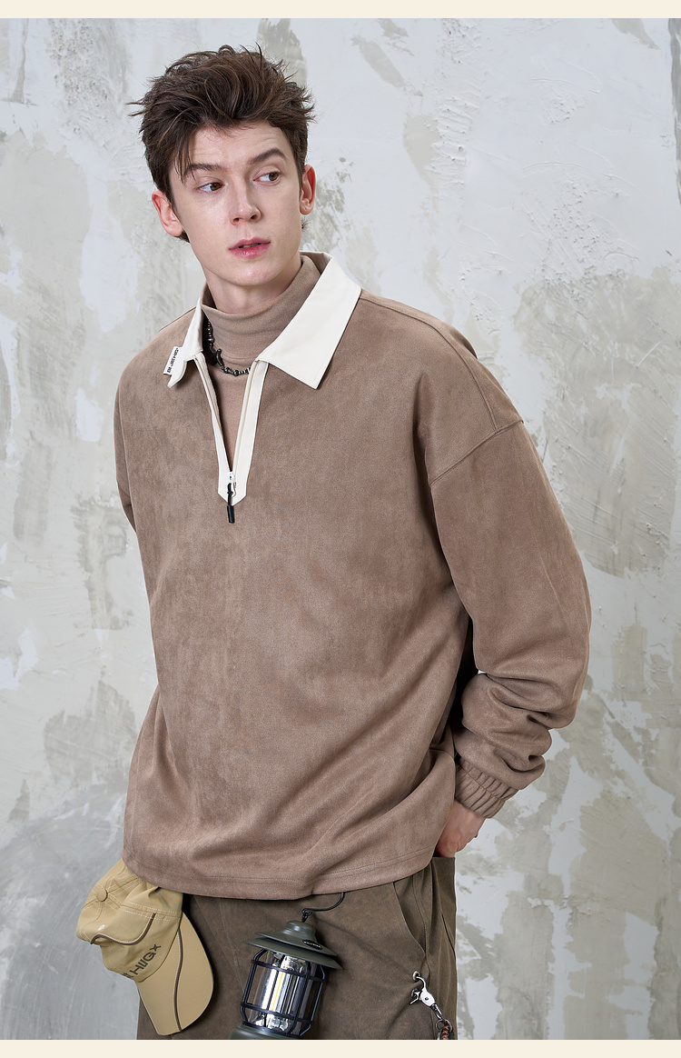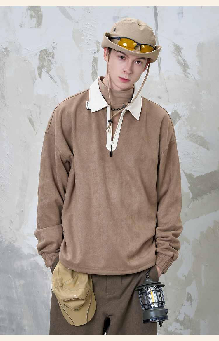 BJHG不计后果 美式高街POLO衫男春季流行宽松简约仿麂皮绒长袖t恤