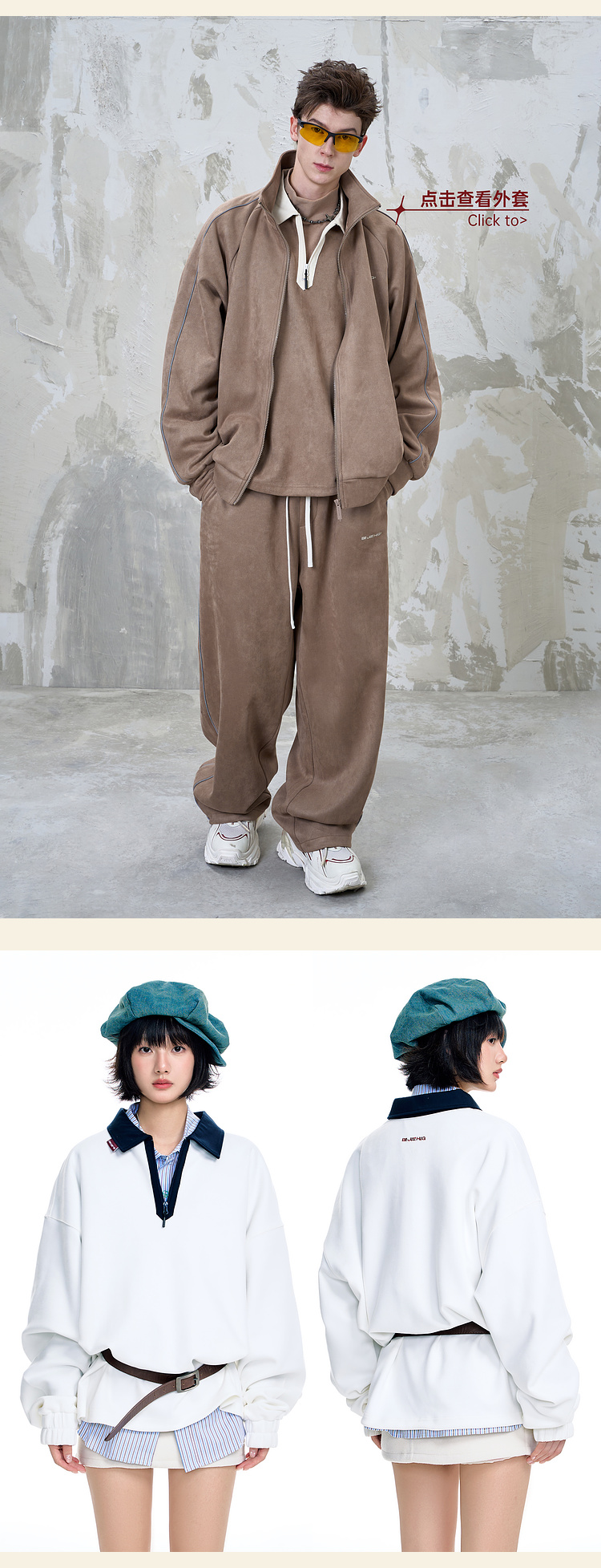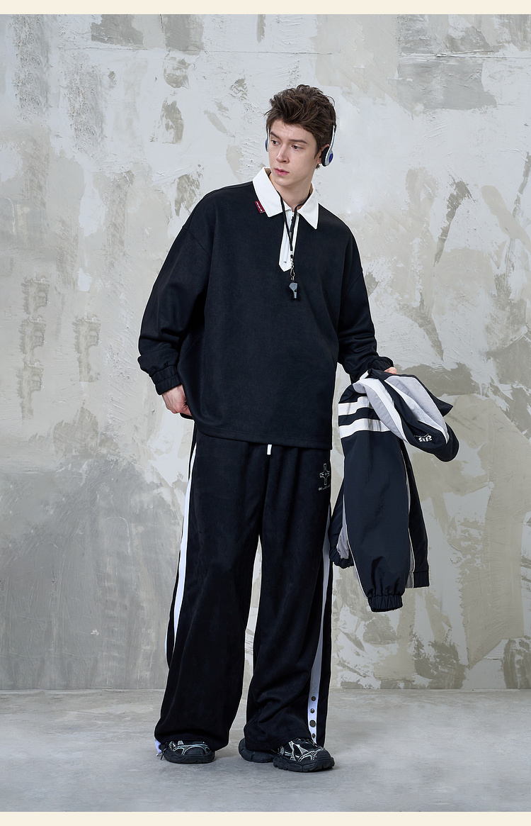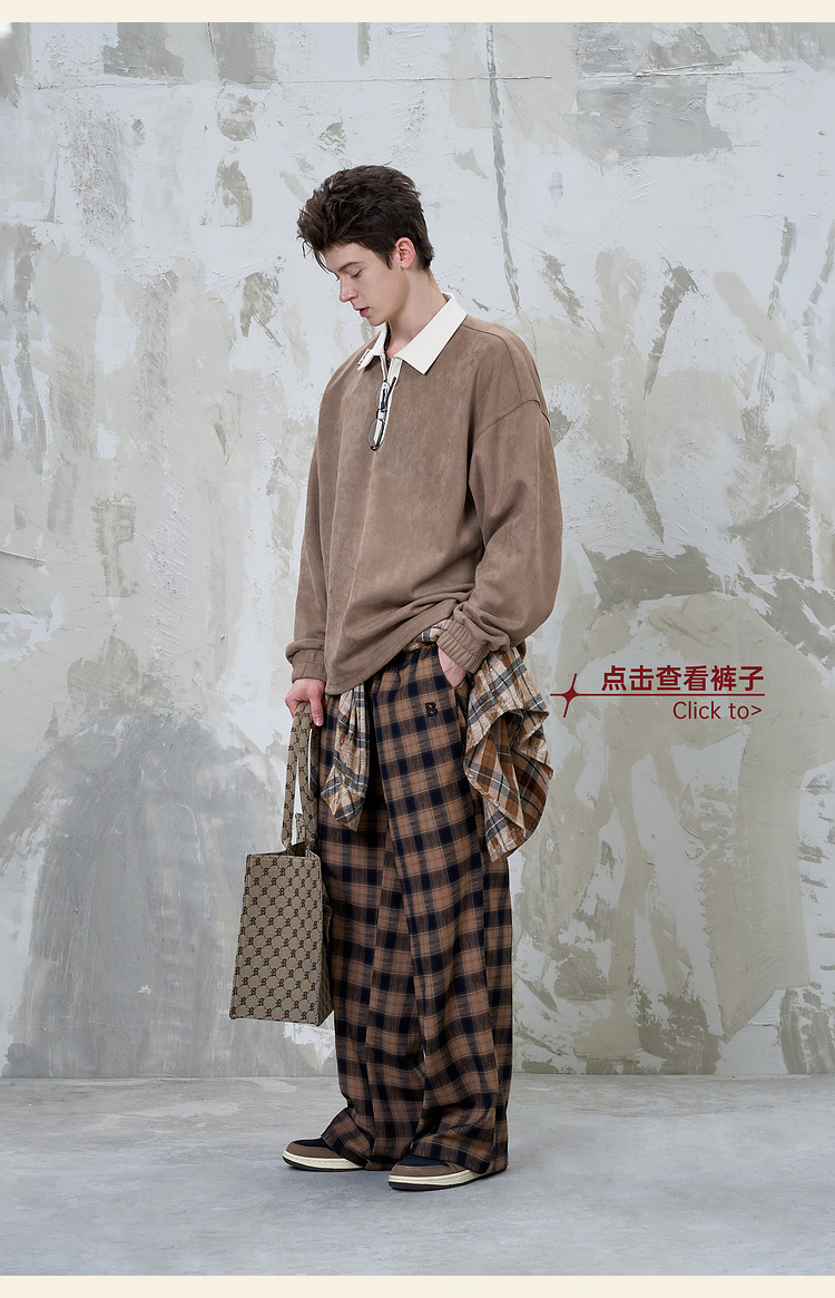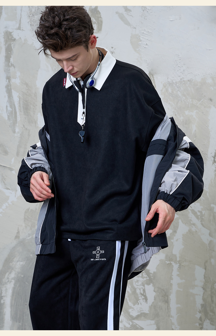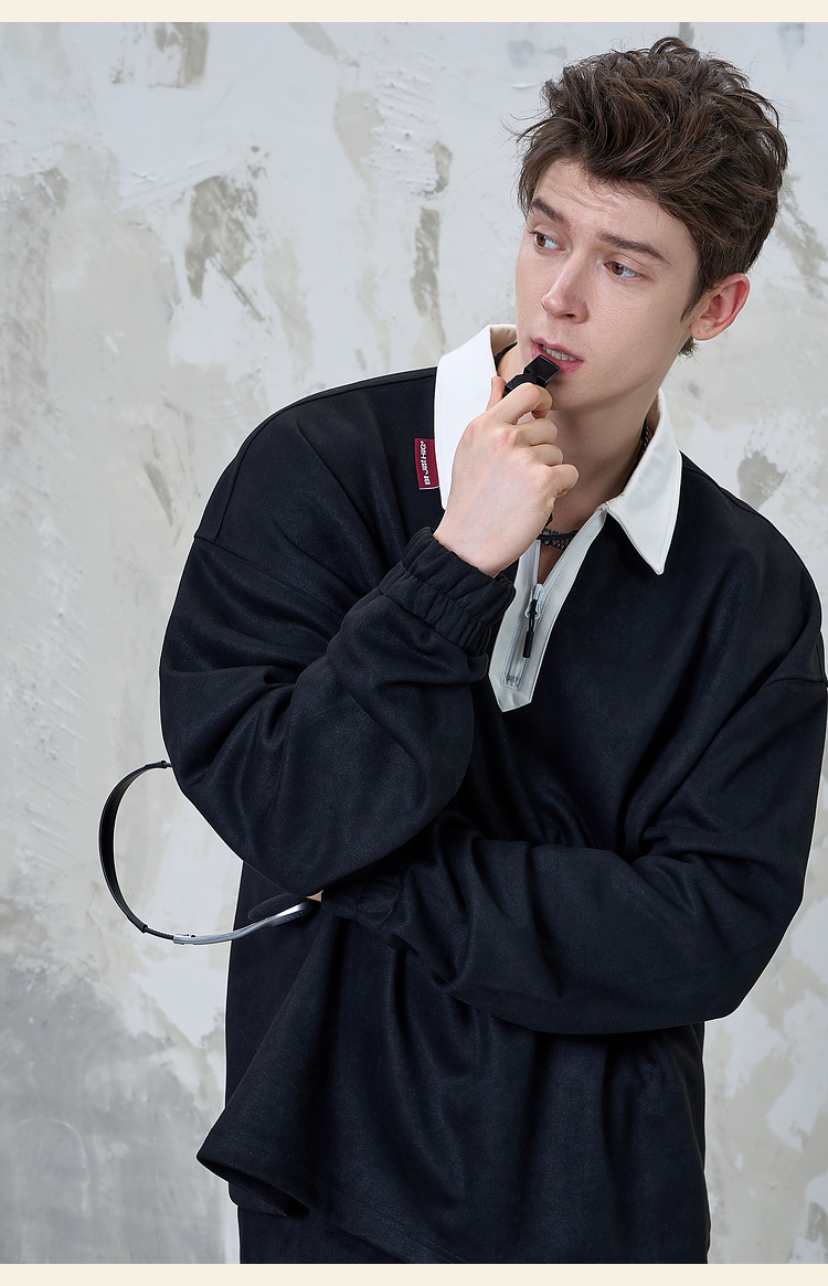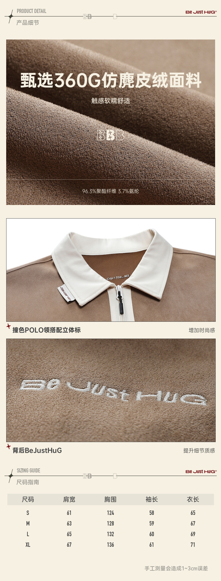 BJHG不计后果 美式高街POLO衫男春季流行宽松简约仿麂皮绒长袖t恤