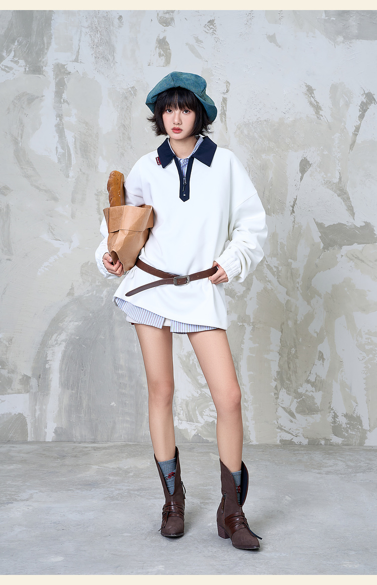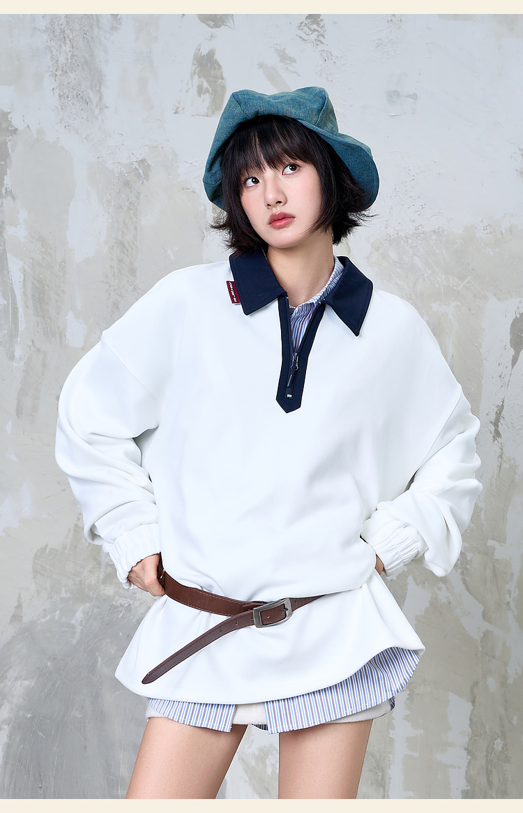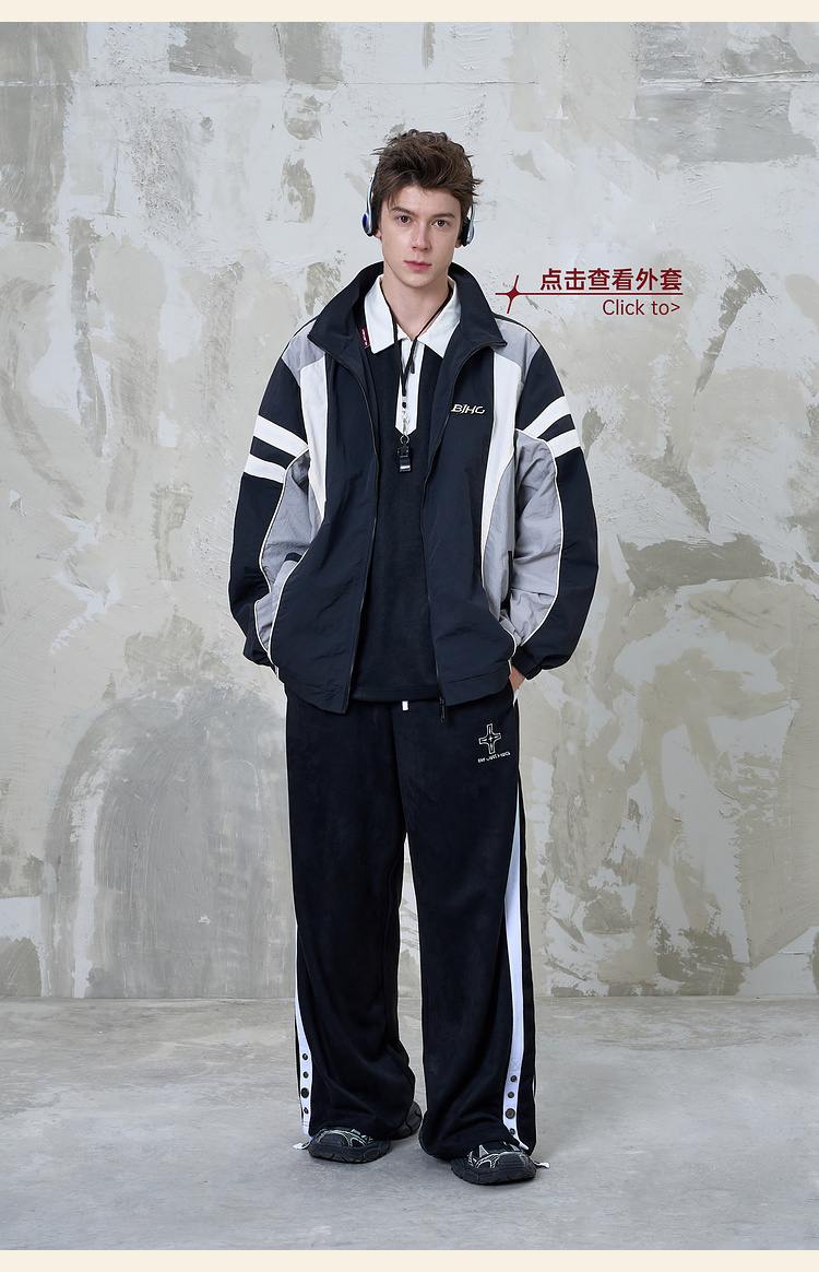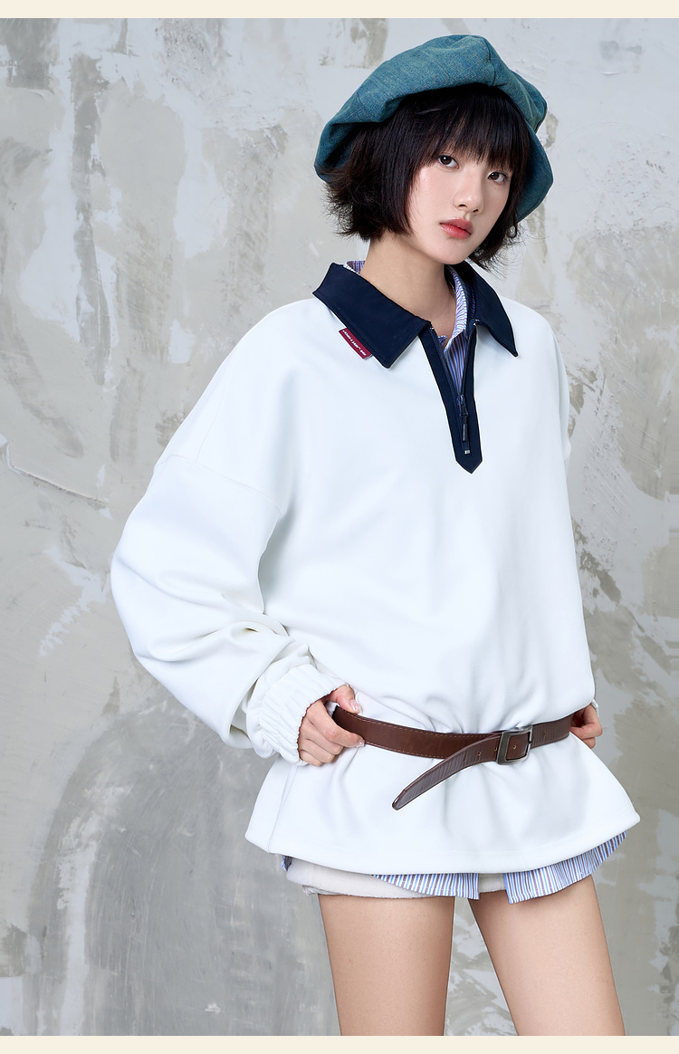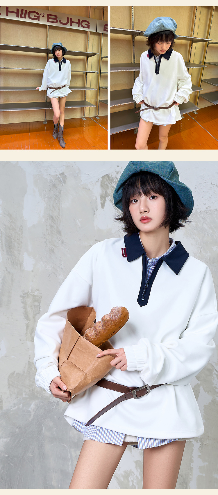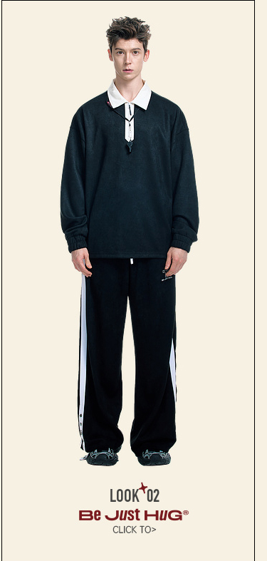 BJHG不计后果 美式高街POLO衫男春季流行宽松简约仿麂皮绒长袖t恤