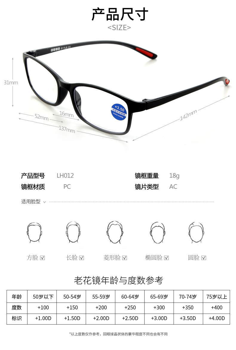 可靠 时尚防蓝光老花镜 简约弧形镜腿 多色可选