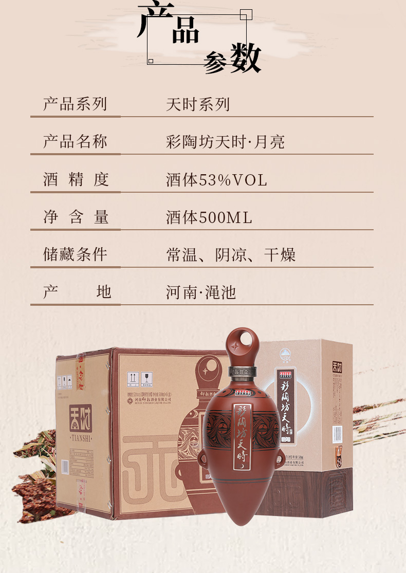 彩陶坊天时月亮 单瓶装 53度500ml 礼盒版白酒 仰韶官方旗舰店