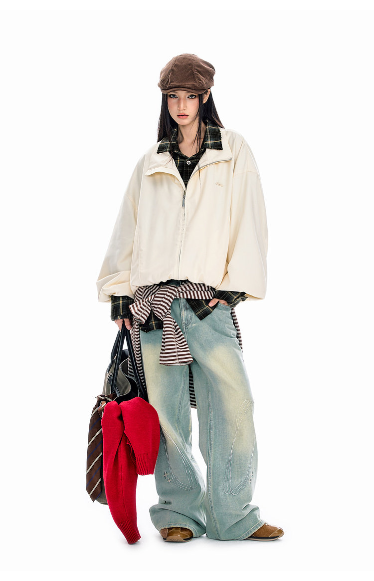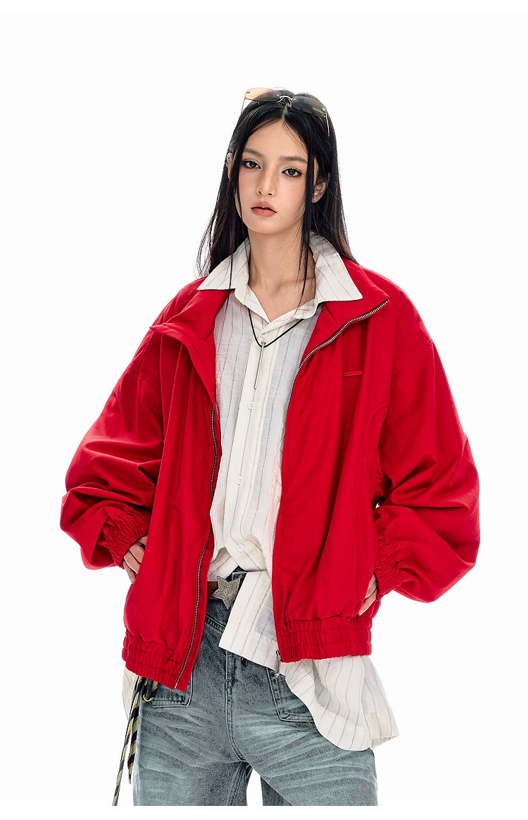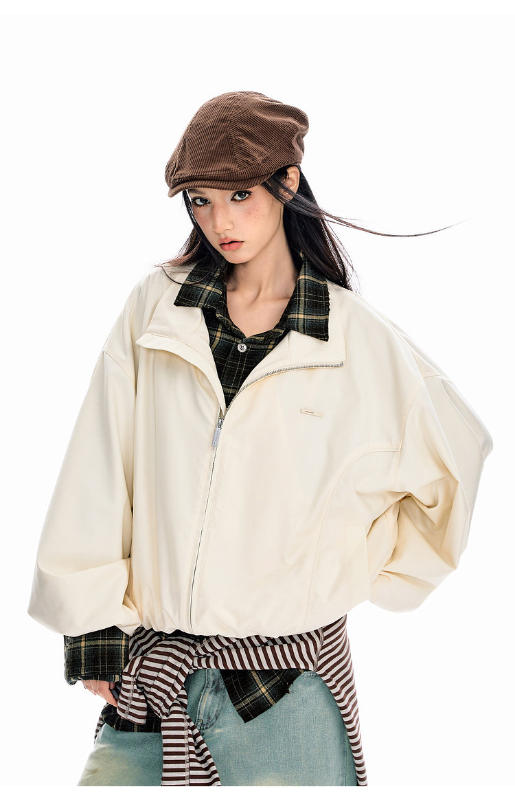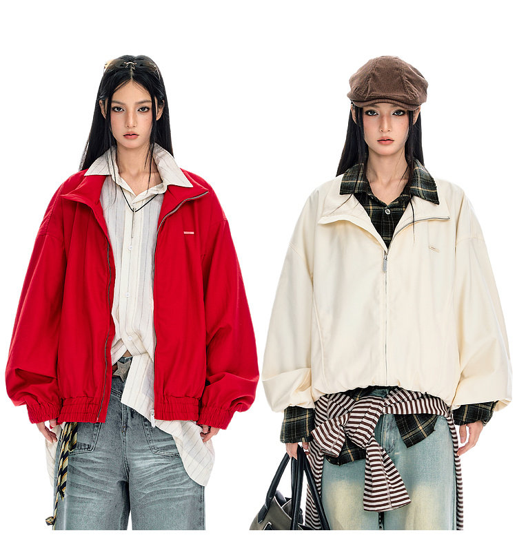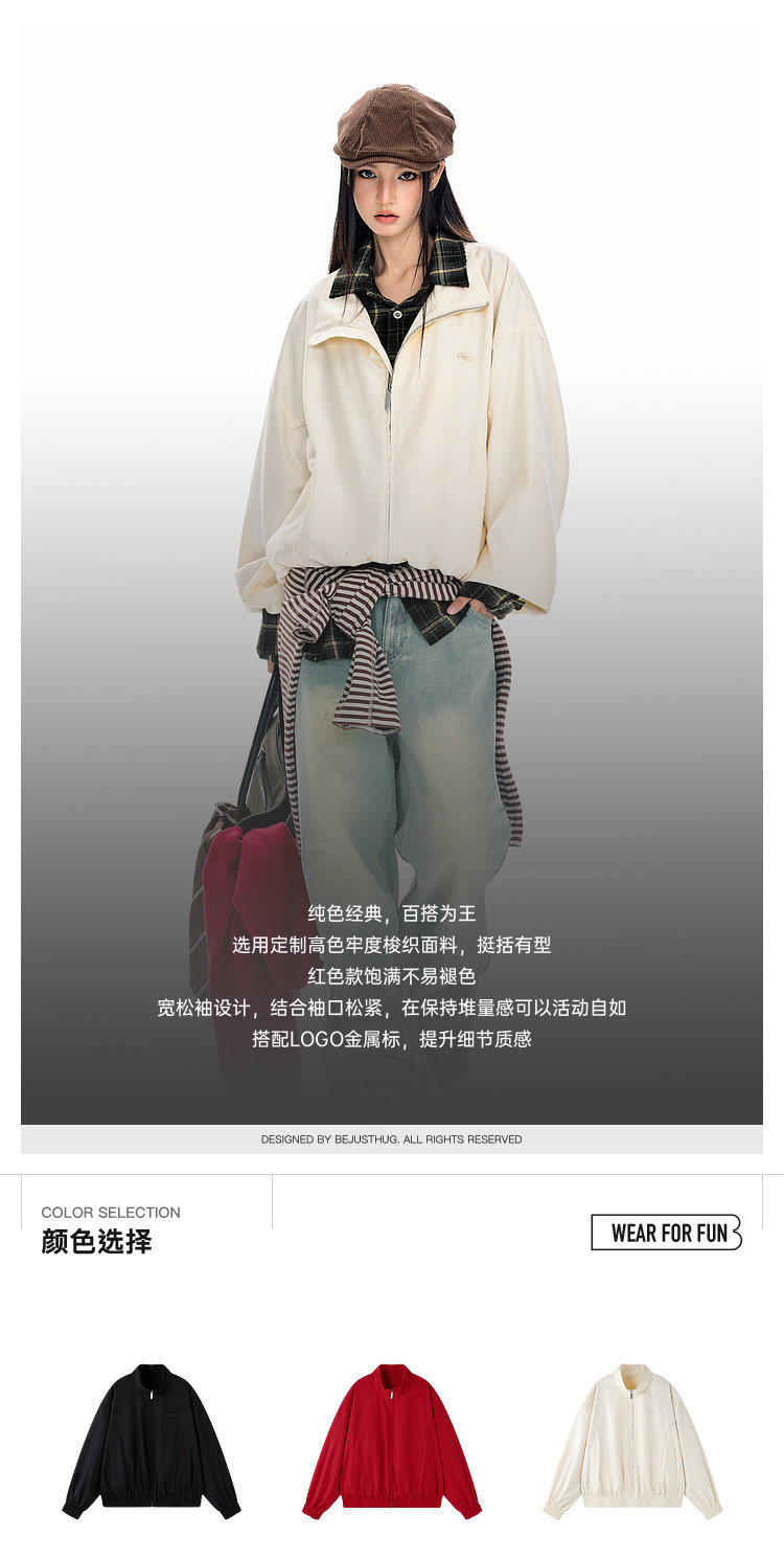 BJHG不计后果纯色短夹克外套男春2026新款美式休闲基础翻领上衣女