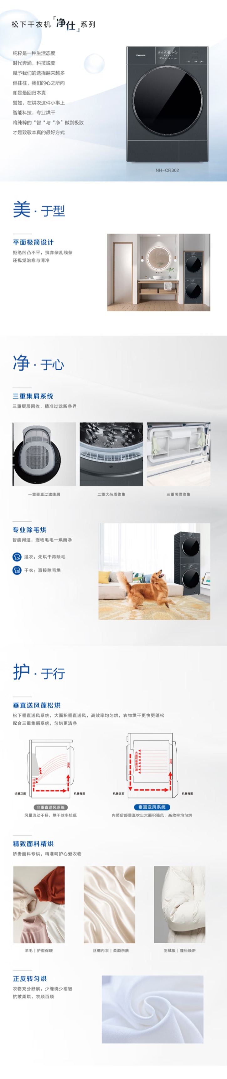 松下干衣机 NH-CR302 10KG 滚筒 烘干 变频 热泵式