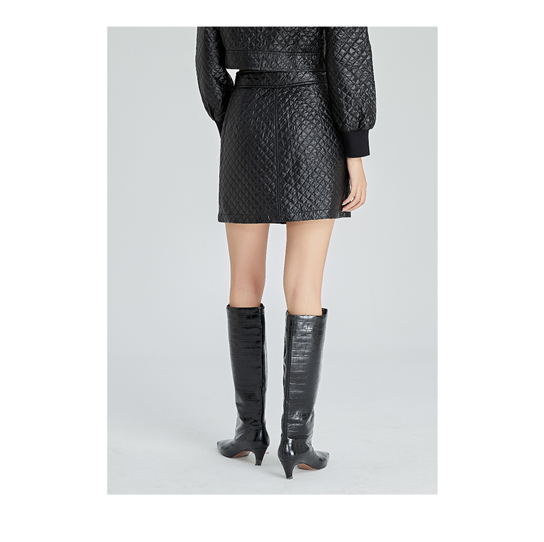 oldcolour2022冬新款黑色皮裙A字高腰显瘦小个子包臀短款半身裙女