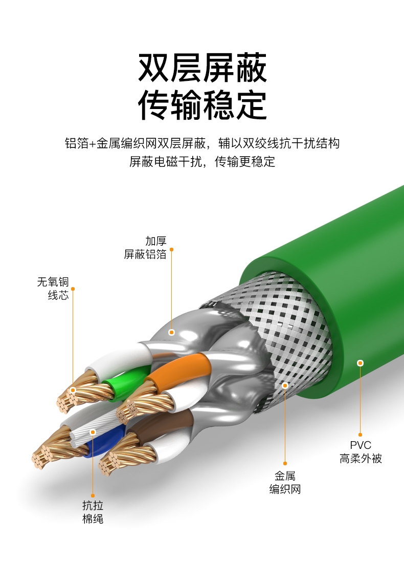 爆款热卖@超六类【绿色双屏蔽伺服专用网线】 EtherCAT伺服8芯高柔工业级以太网线超6六类千兆双屏蔽工业Profinet网线伺服EtherCAT屏蔽成品超六6类千兆