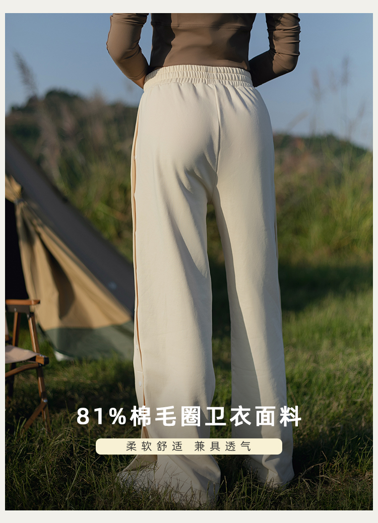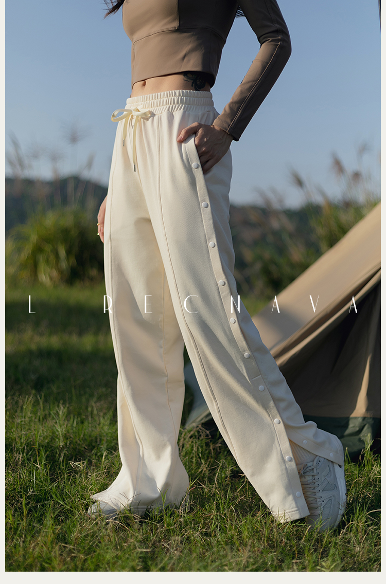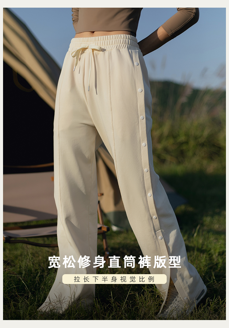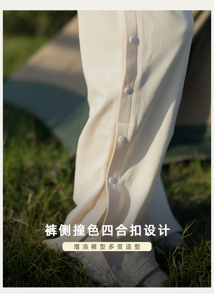 【81%棉垂感毛圈卫衣面料】多穿法侧缝排扣运动休闲长裤
