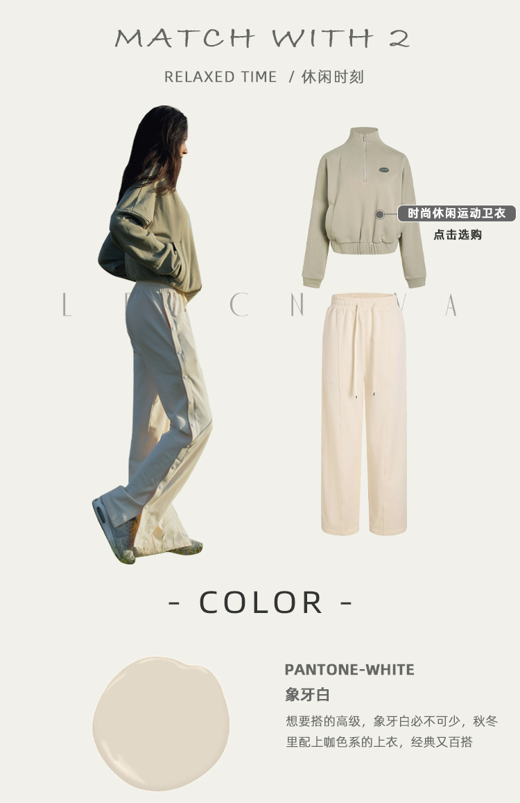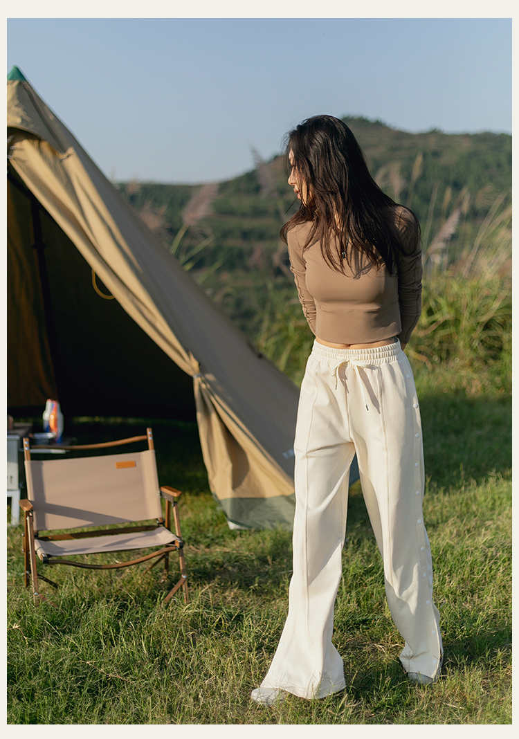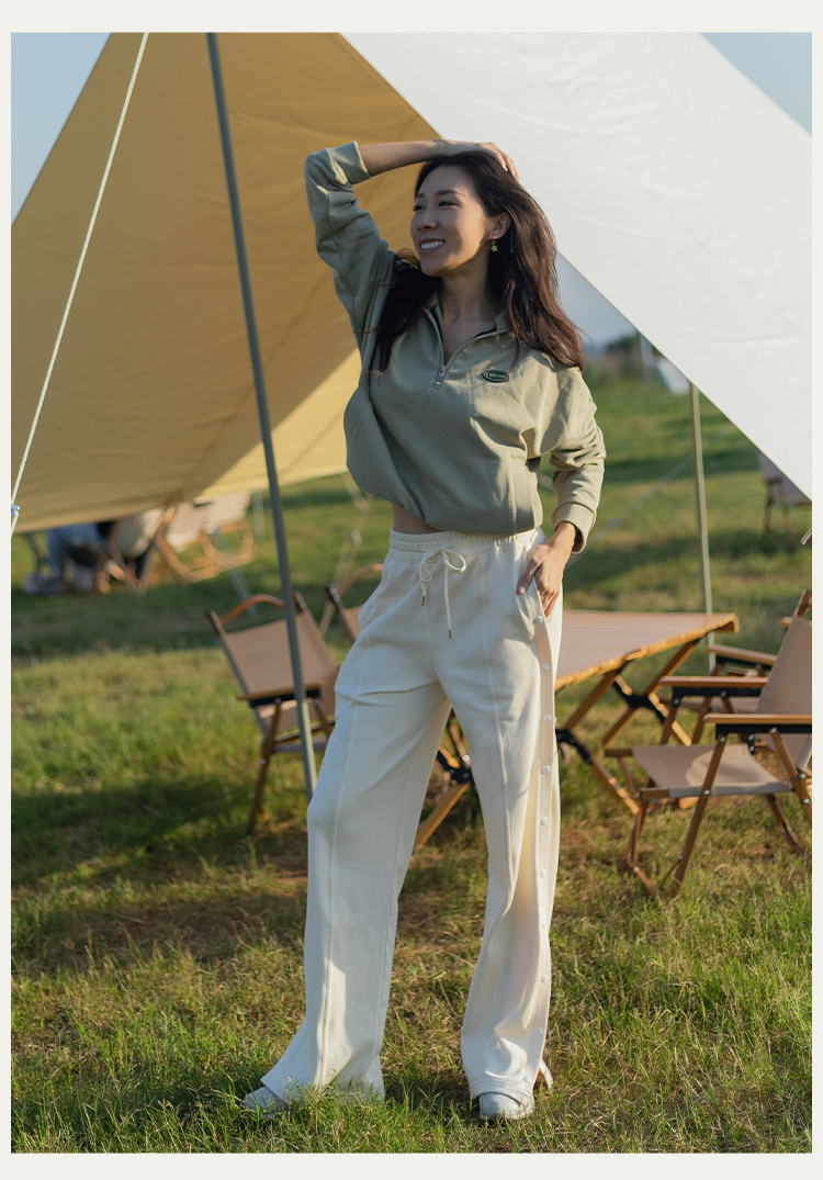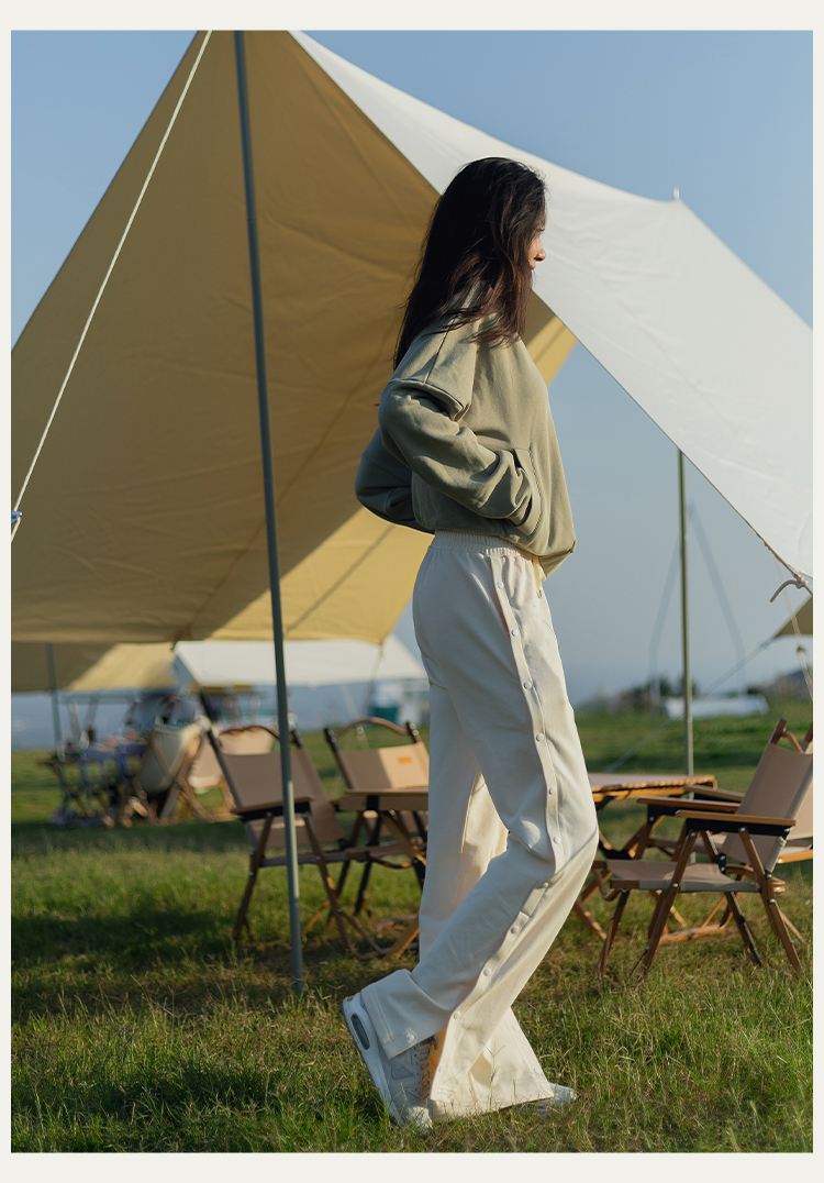 【81%棉垂感毛圈卫衣面料】多穿法侧缝排扣运动休闲长裤