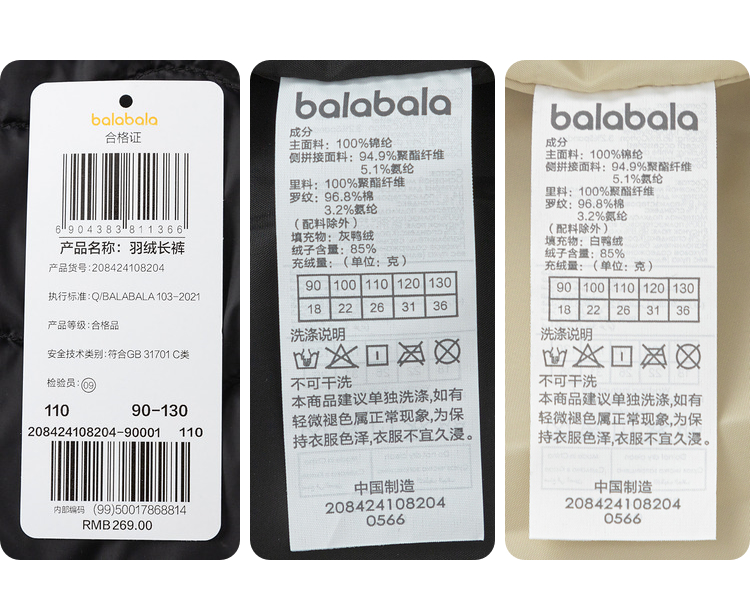 【云优选】巴拉巴拉童装儿童裤子男童女童保暖厚羽绒裤冬装新款束脚长裤