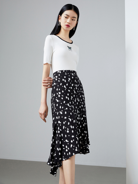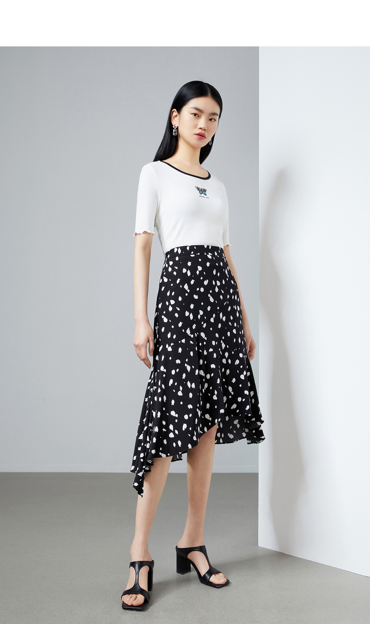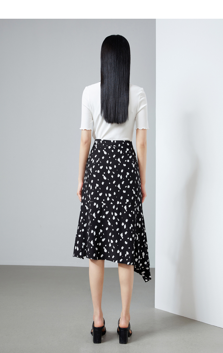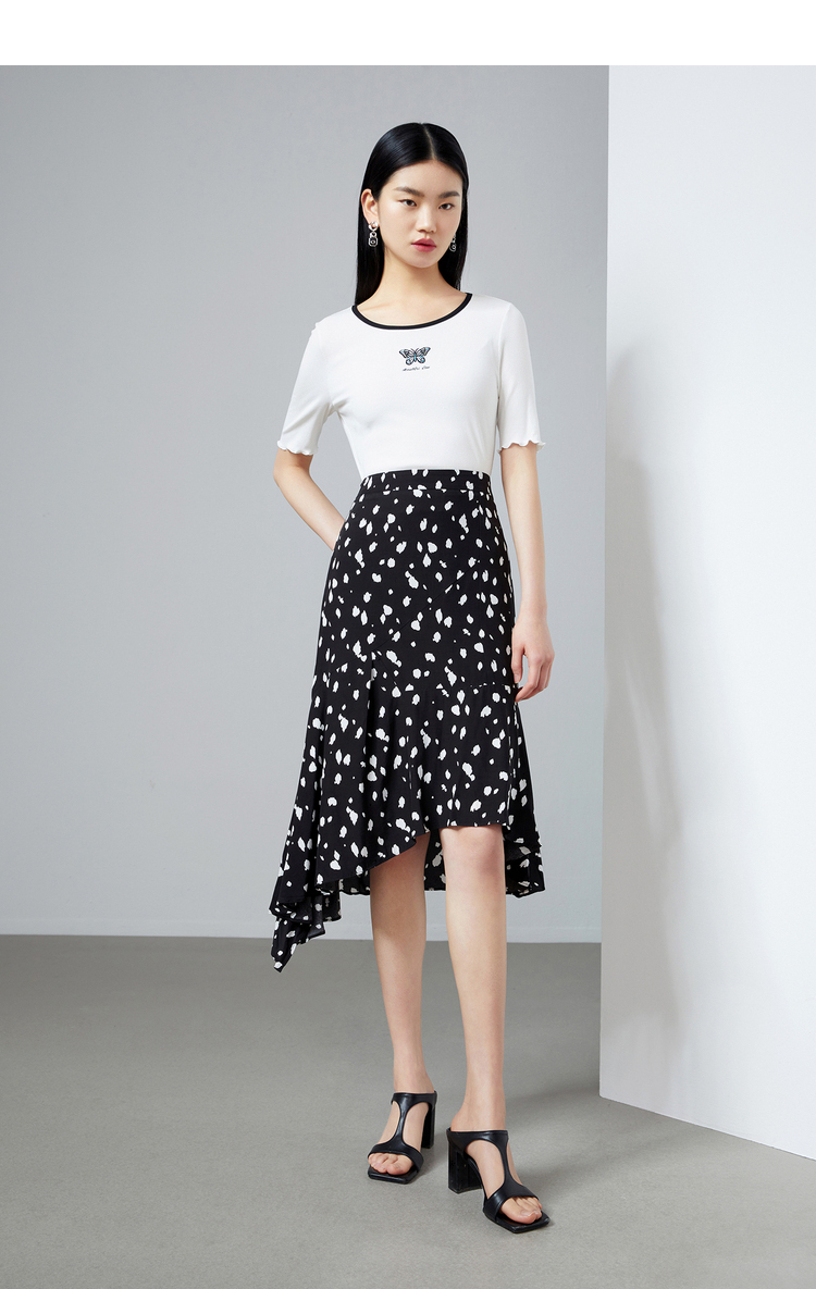 NEELLY纳俪商场同款撞色高腰半身裙女不规则裙摆气质A字裙潮新款N22044E04427