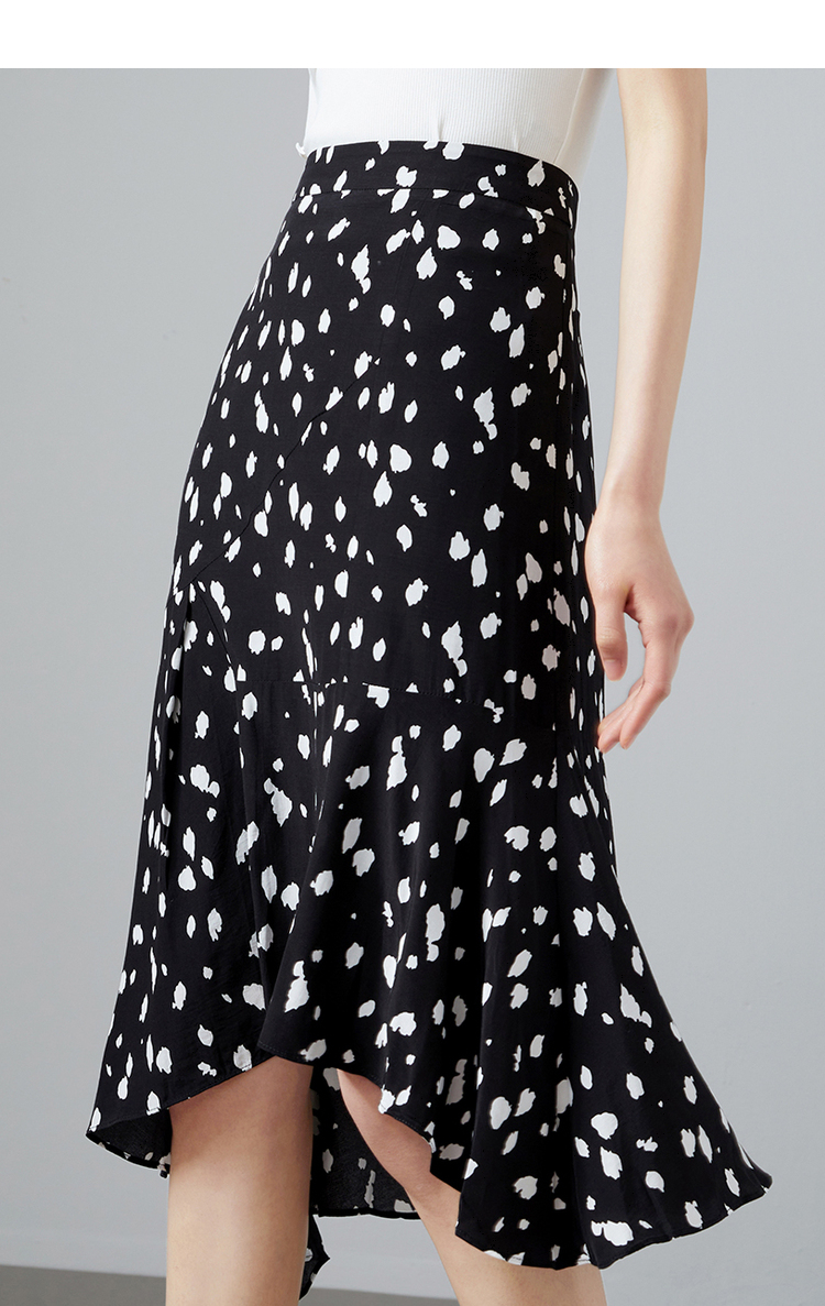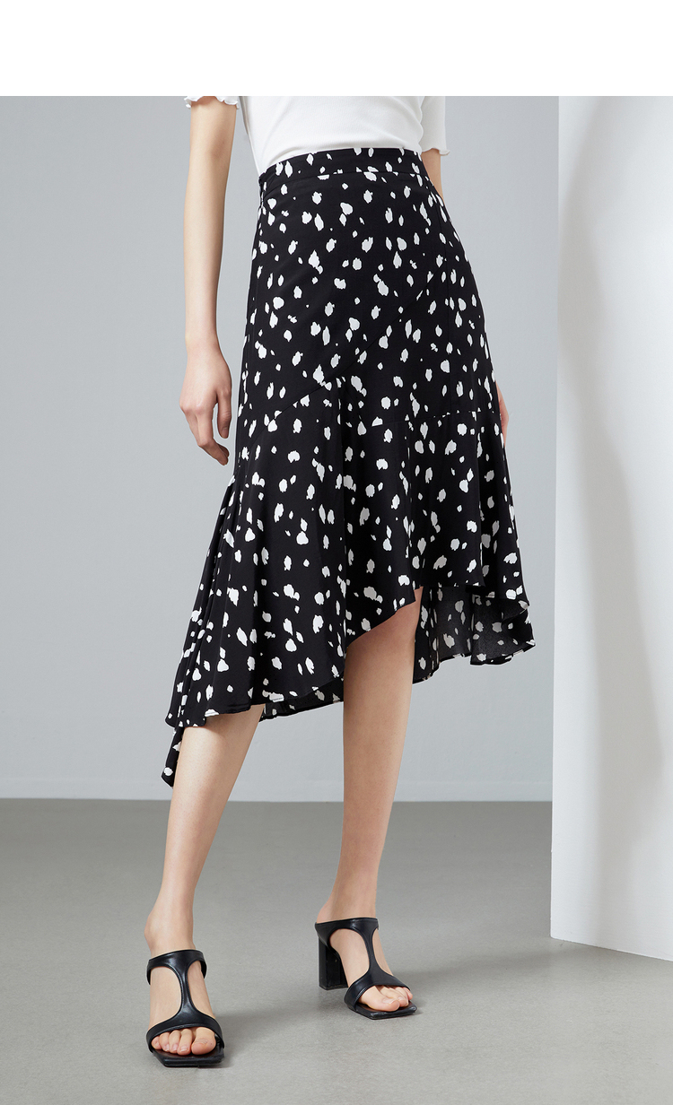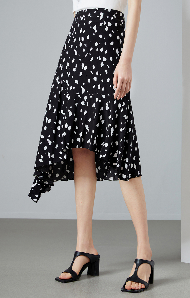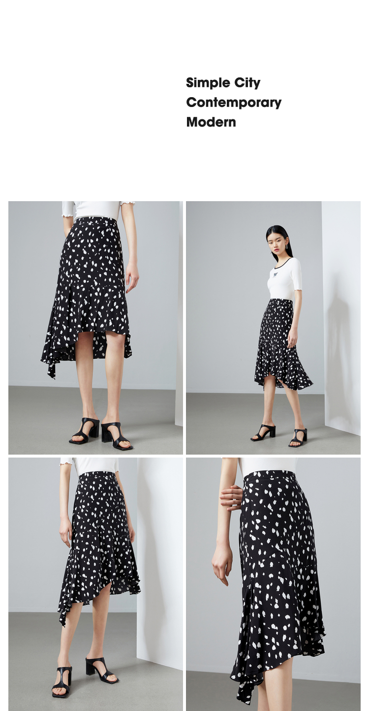 NEELLY纳俪商场同款撞色高腰半身裙女不规则裙摆气质A字裙潮新款N22044E04427