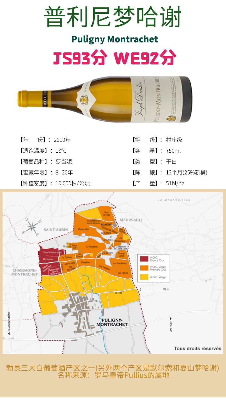 约瑟夫·杜鲁安Puligny Montrachet 2019 普利尼梦哈谢