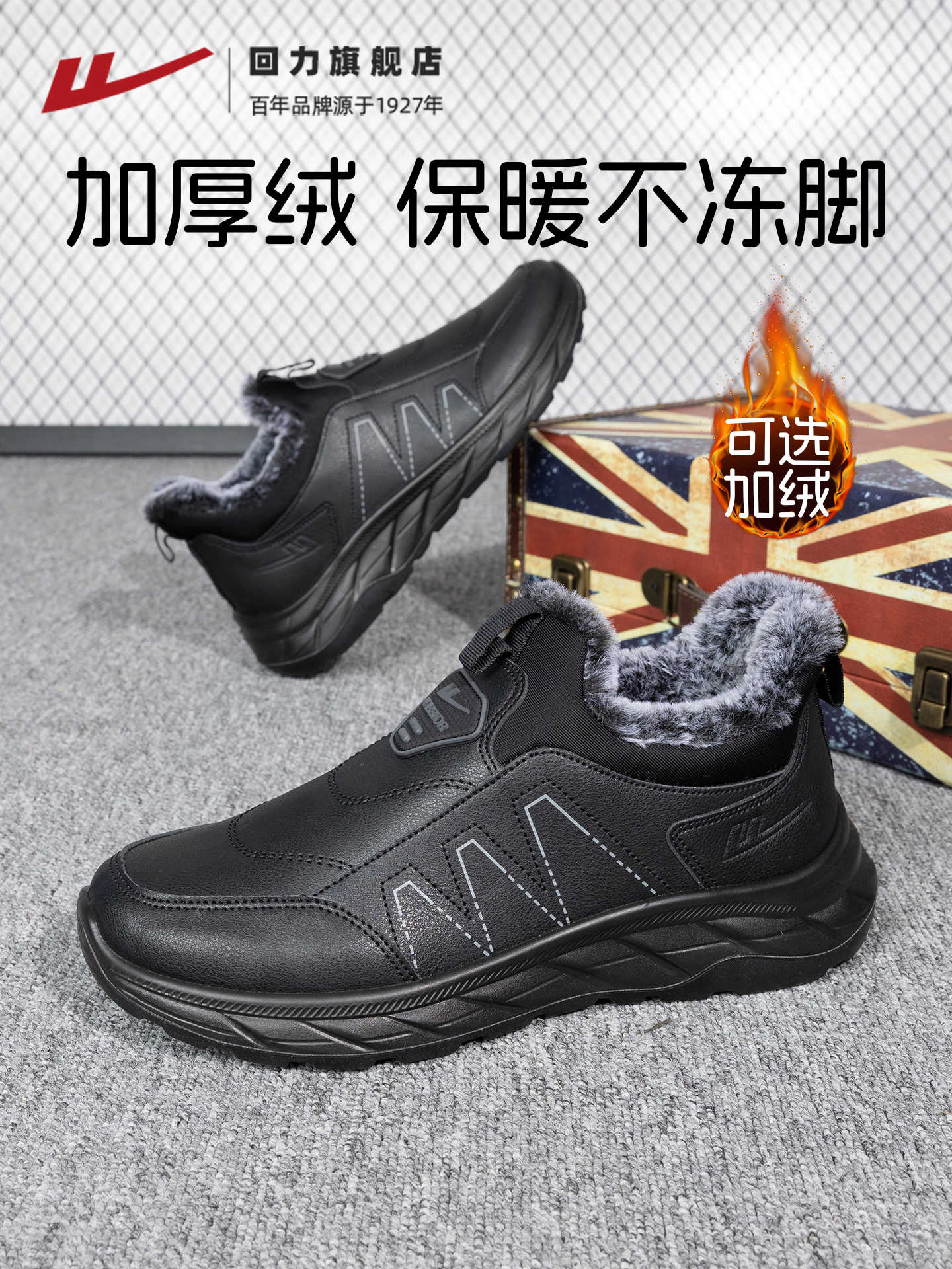 回力中老年棉鞋加绒保暖休闲鞋防泼水皮雪地靴冬季防寒爸爸健步鞋