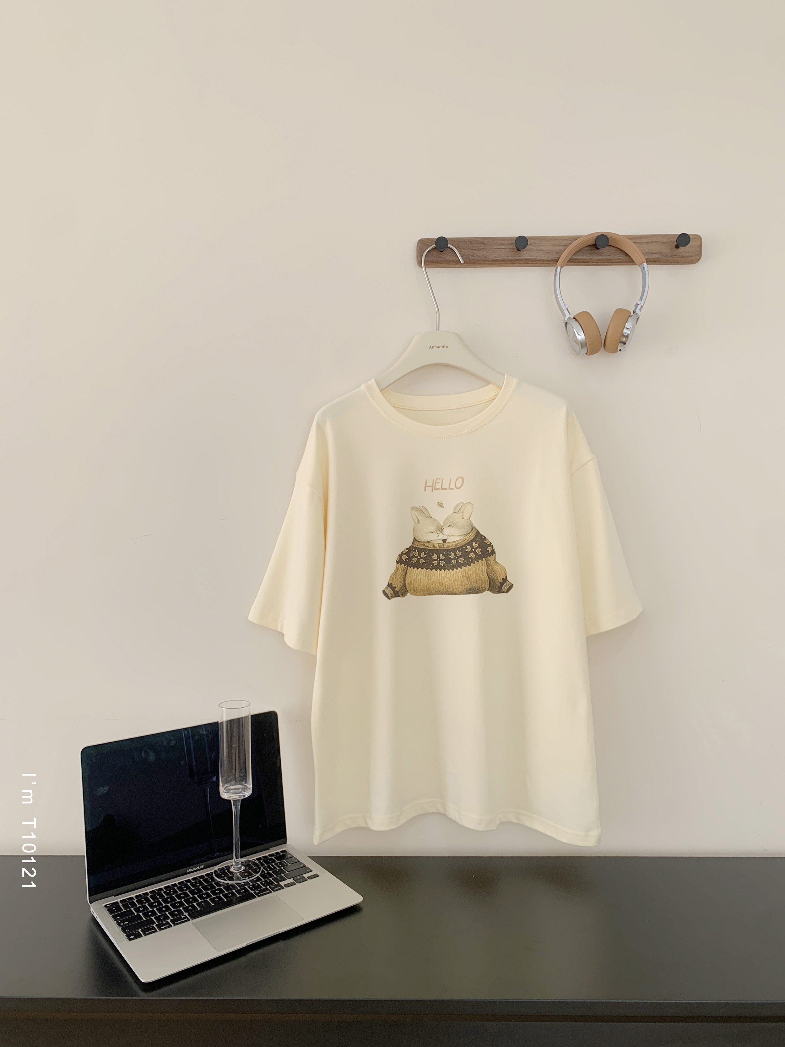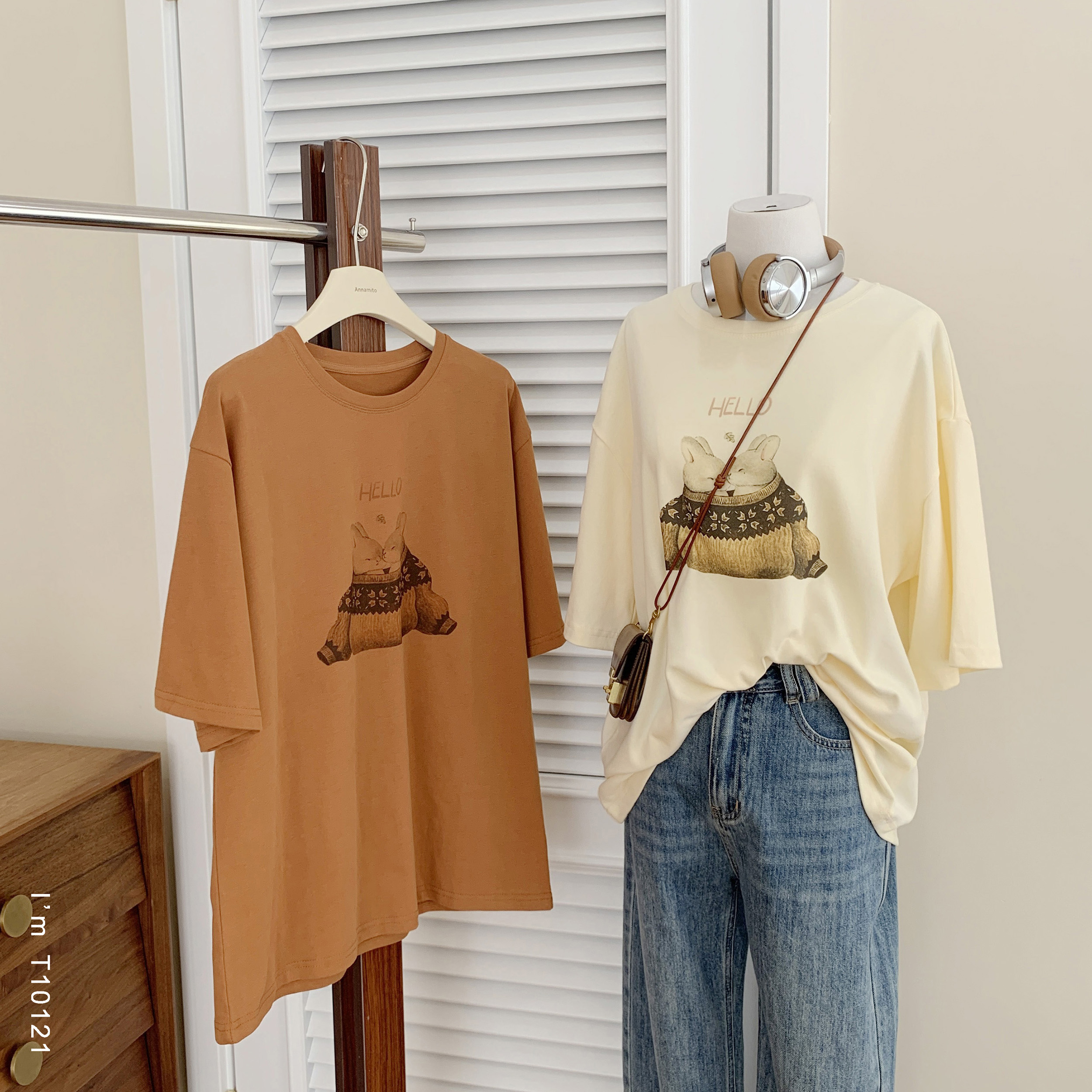 这款兔子卡通印花T 简直就是衣橱里的精髓了~