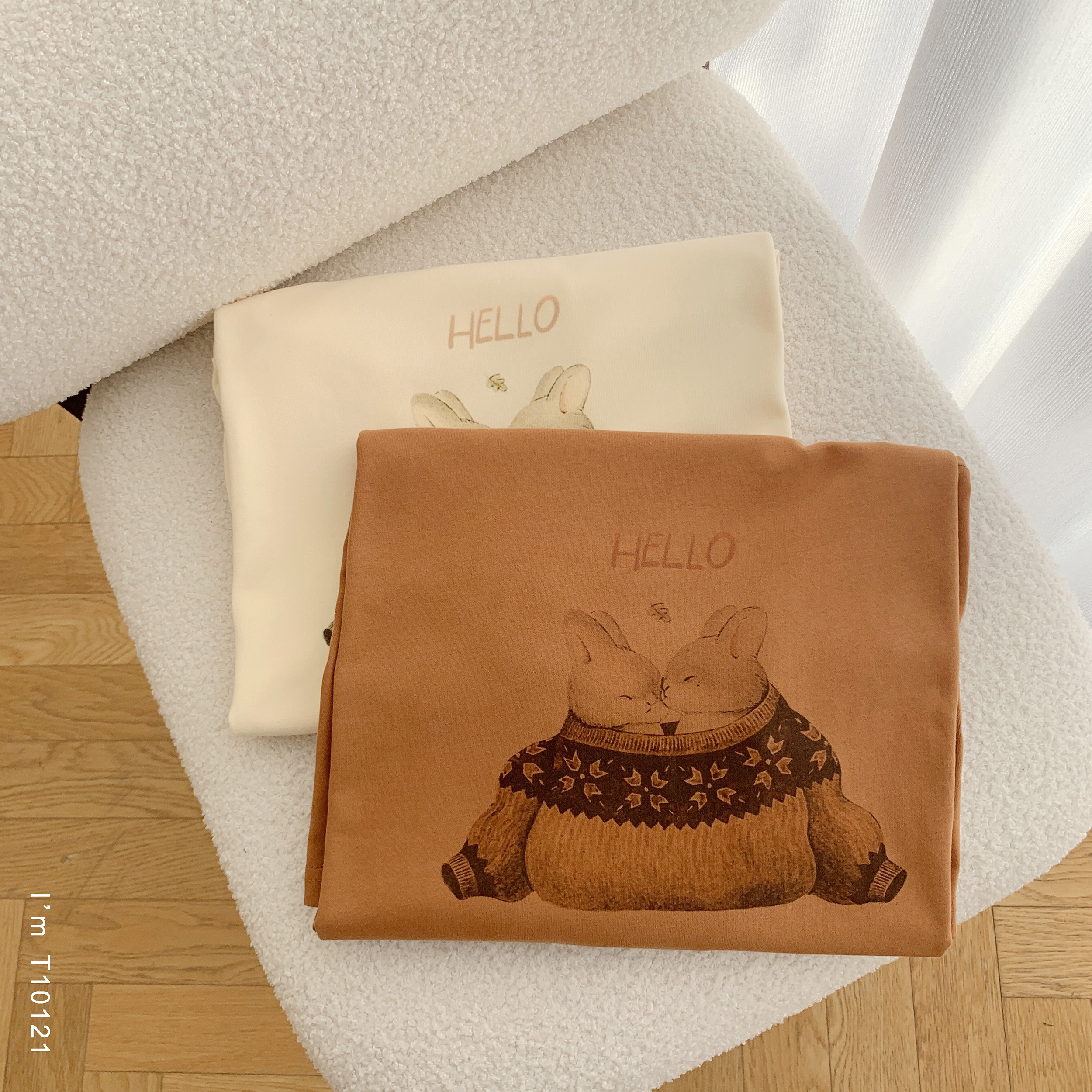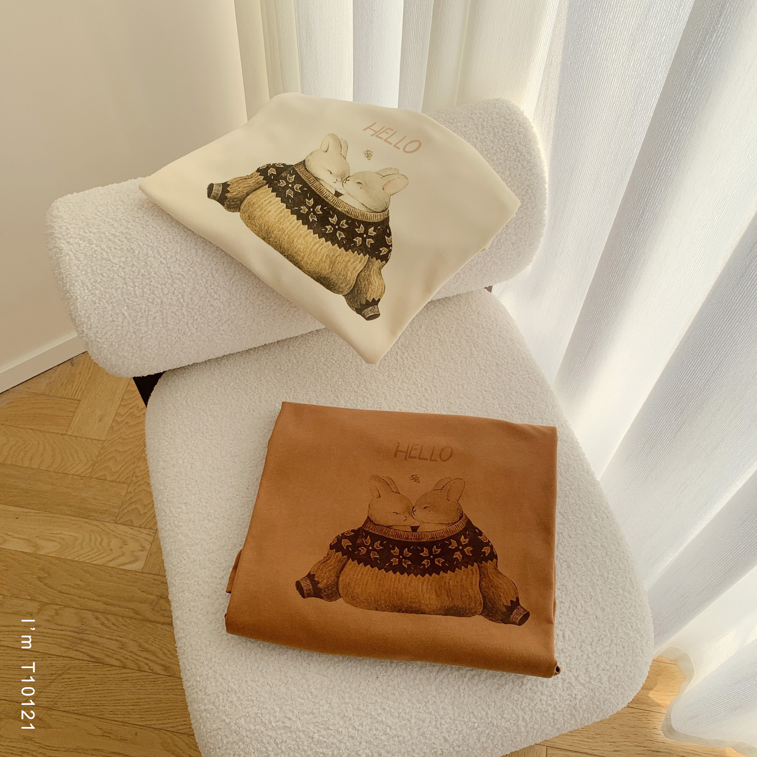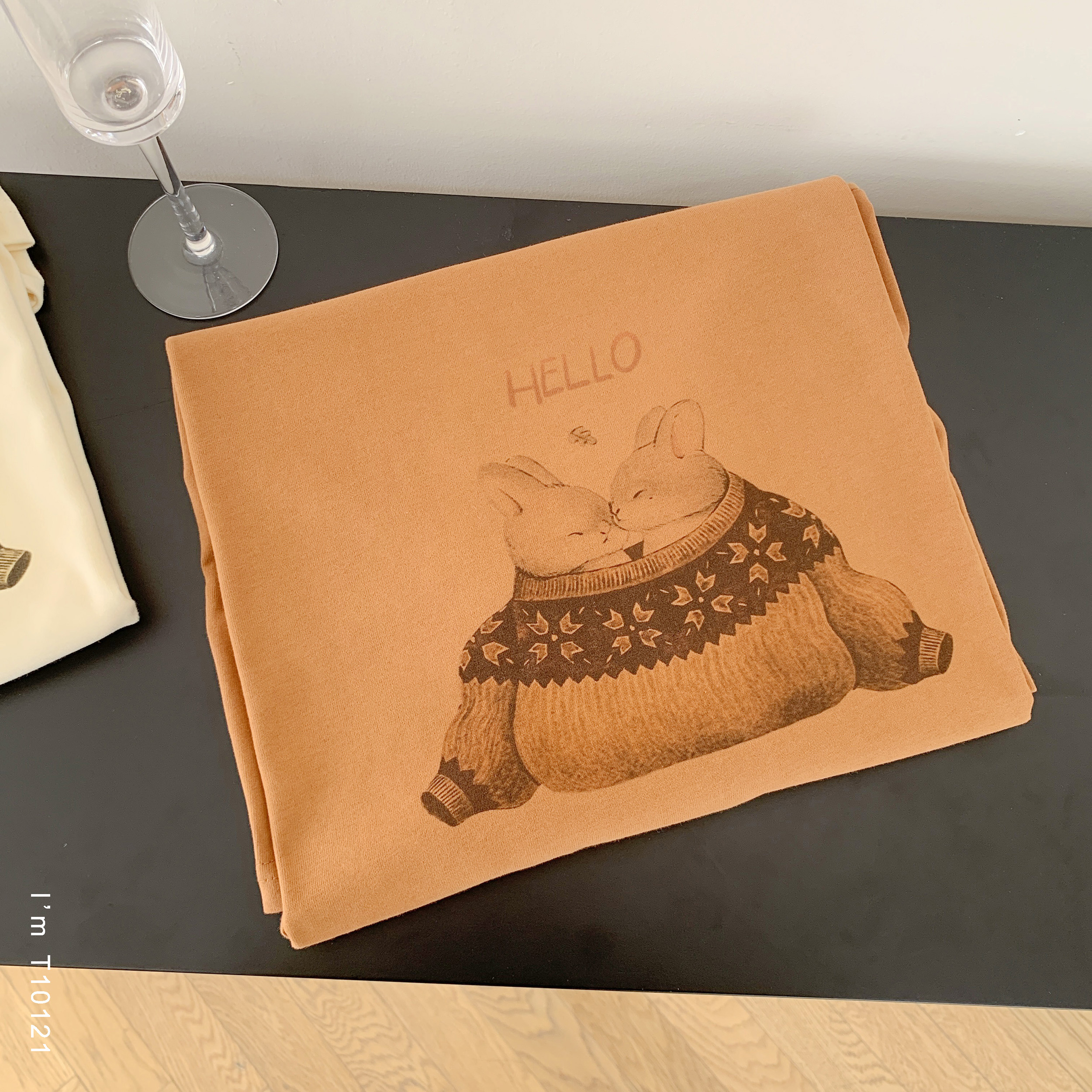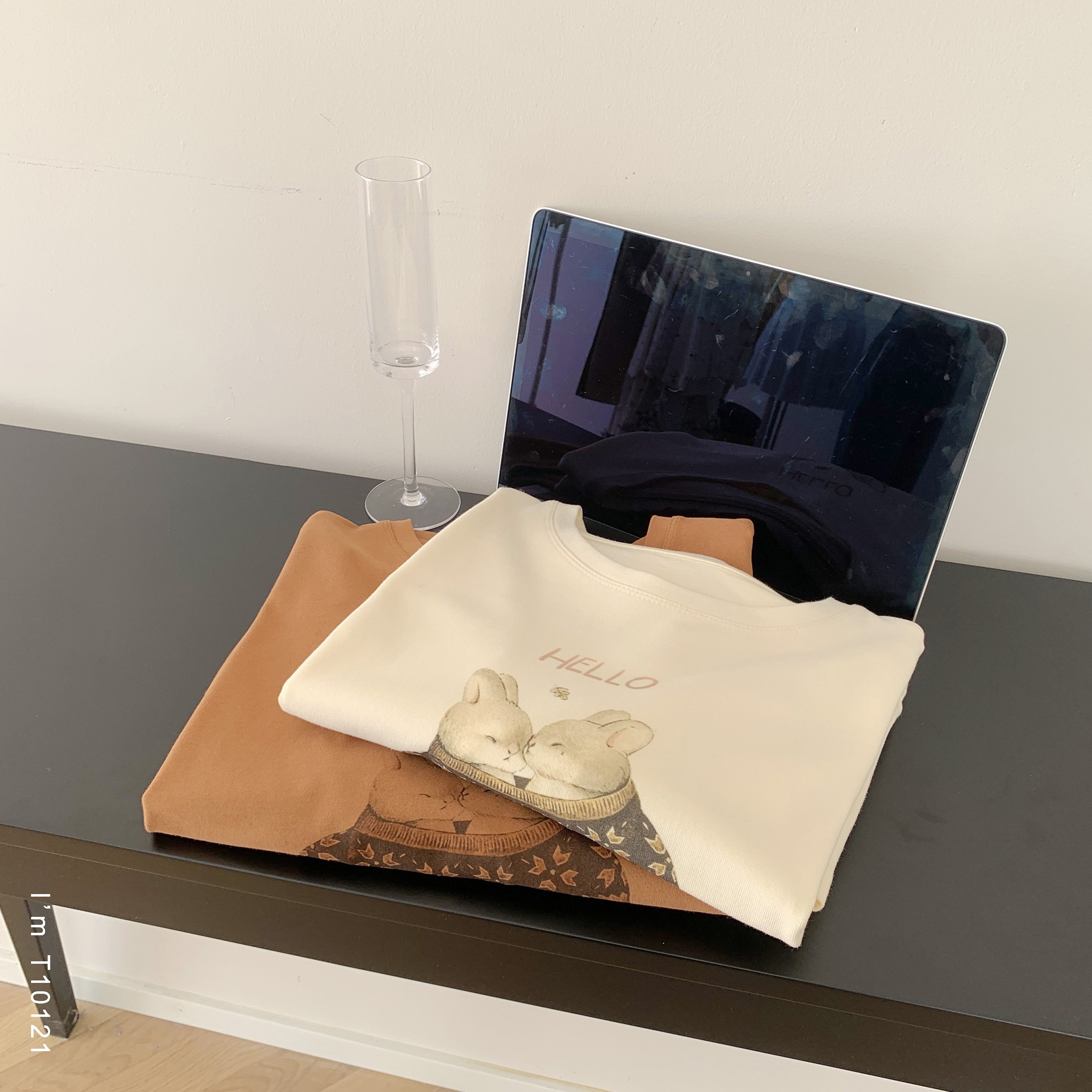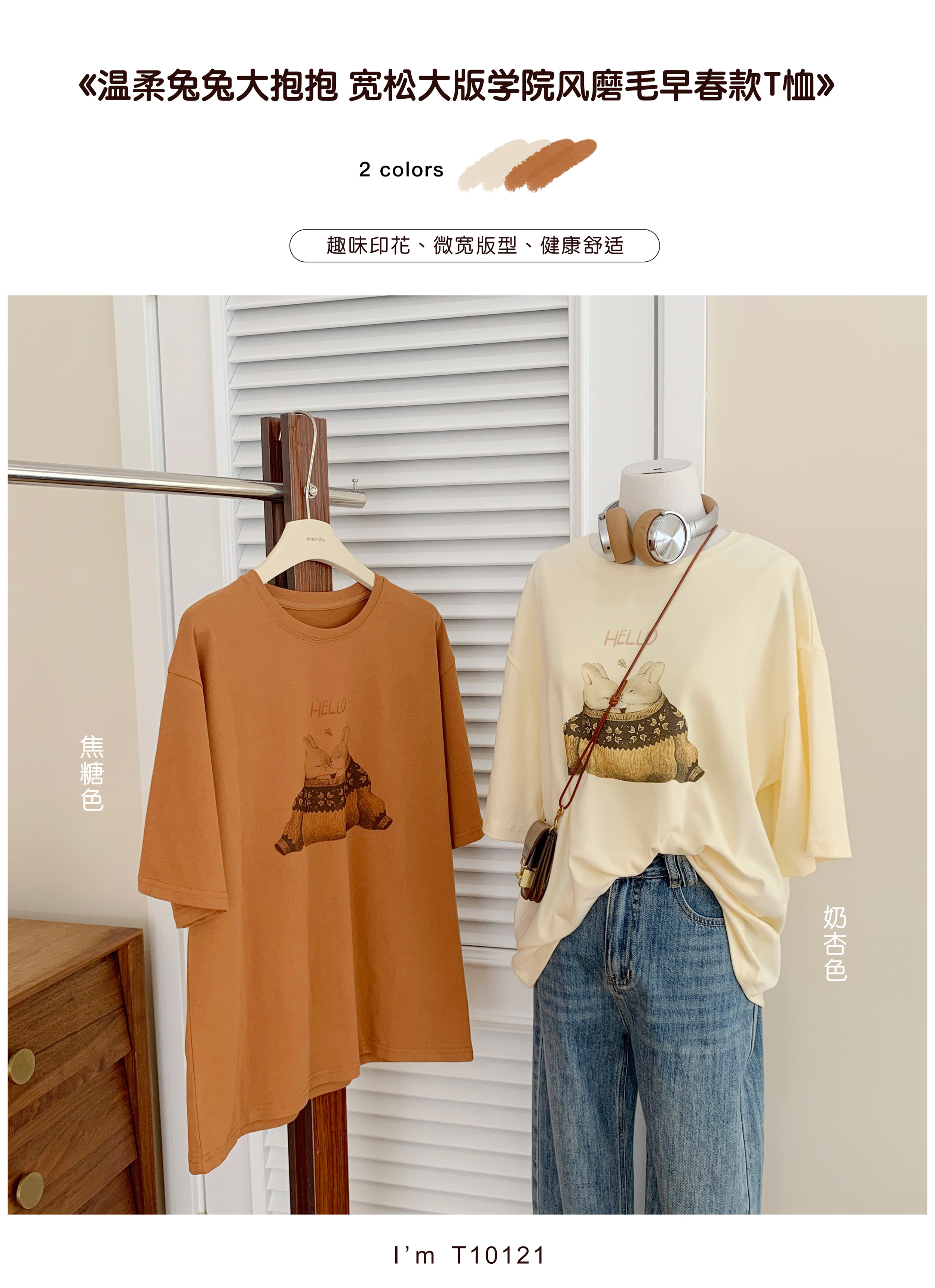 老米优品🎈3-5天。春款磨毛T《温柔兔兔的抱抱 🐰 宽松廓形磨毛早春款T恤》减龄又童趣,不挑身材哟~T250218A