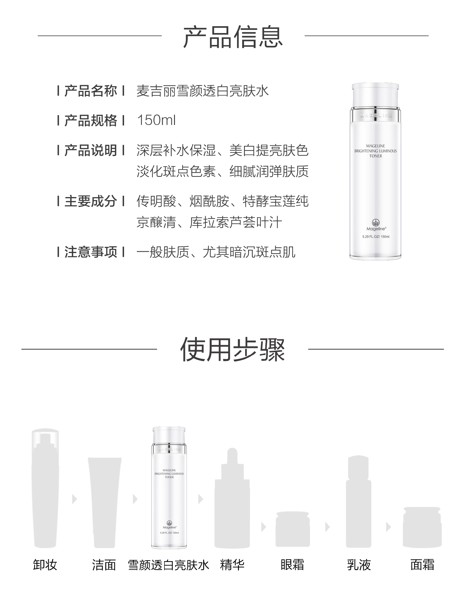 自营(麦吉丽)-雪颜透白亮肤水美白淡斑提亮肤色补水保湿细致毛孔官方正品(云仓直发 无质量问题不支持退换货)