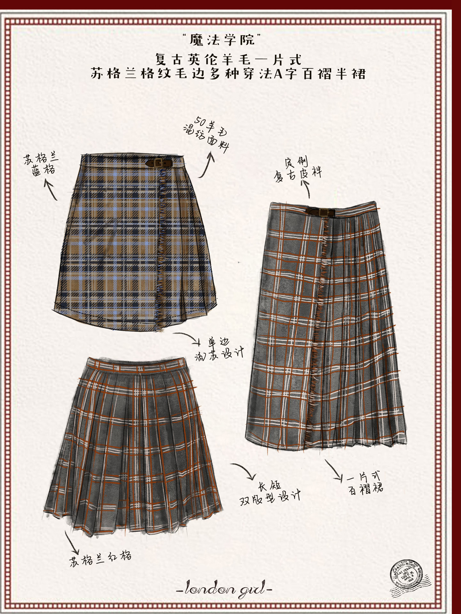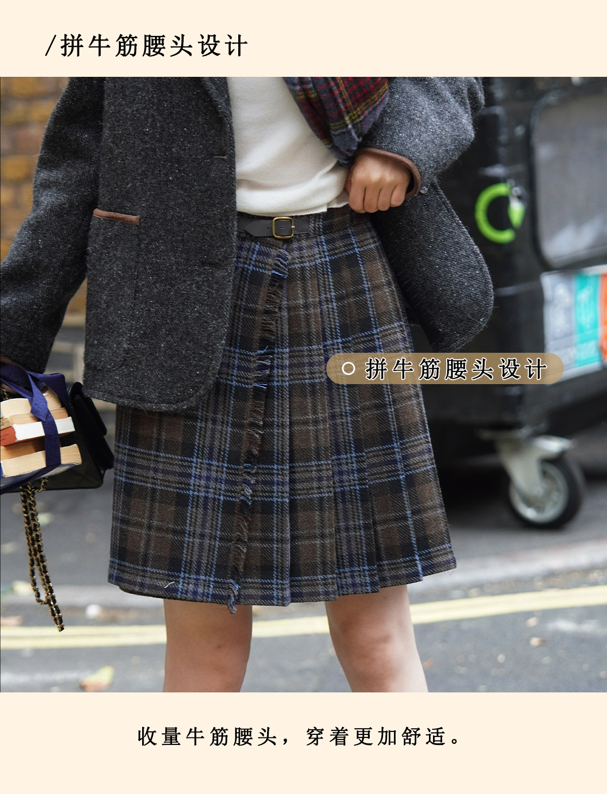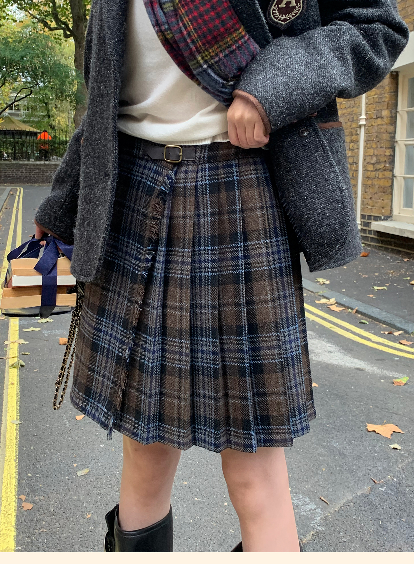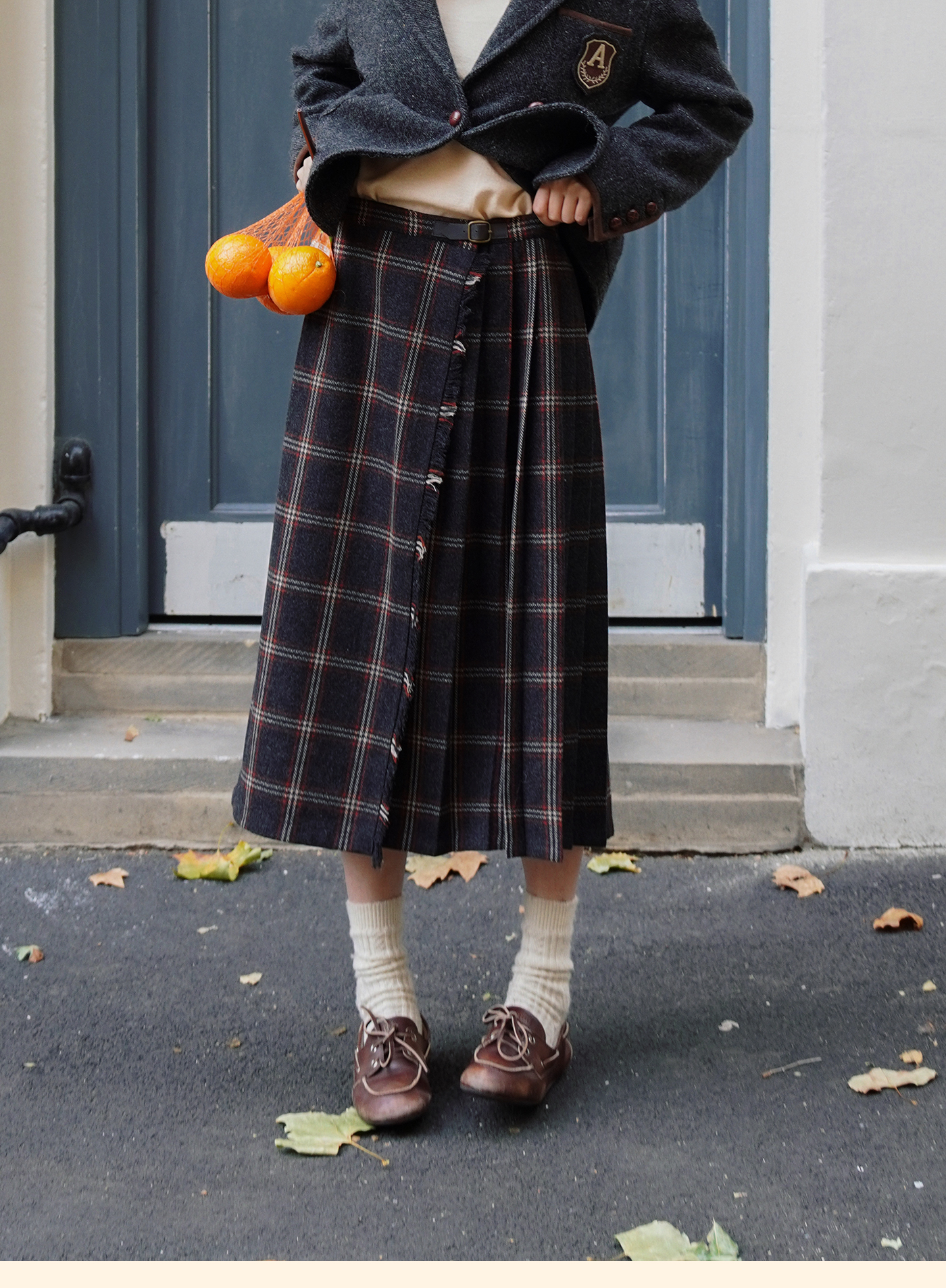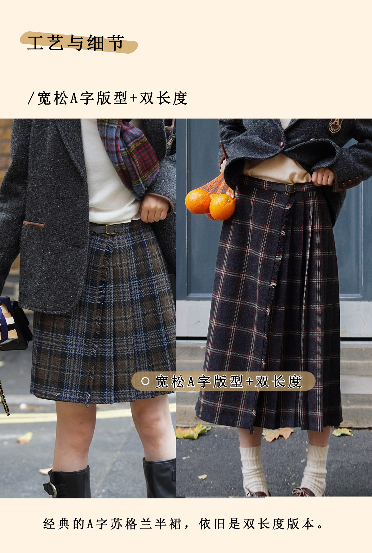 浮生八记/25D204/一片式苏格兰格纹A字百褶半裙