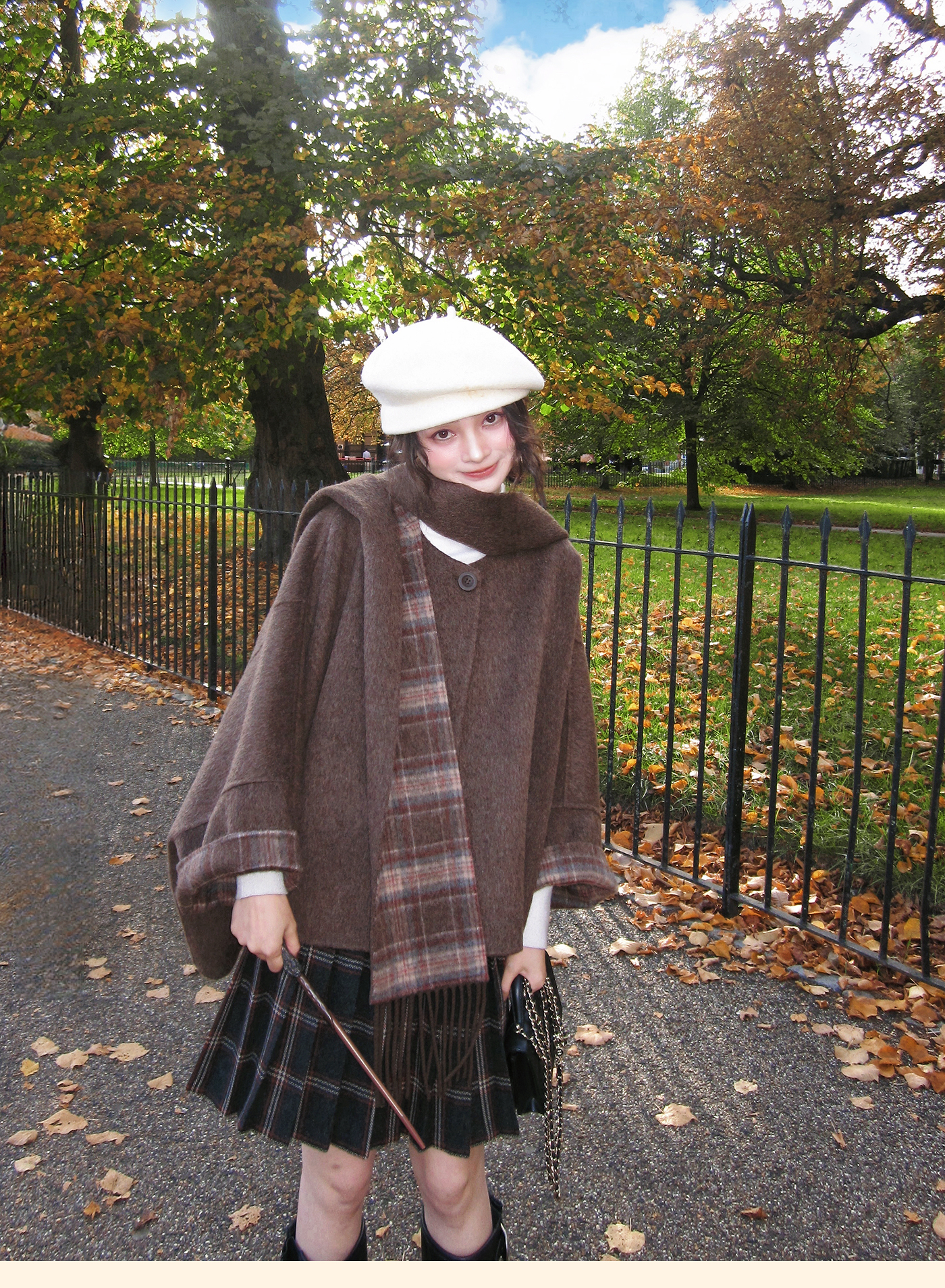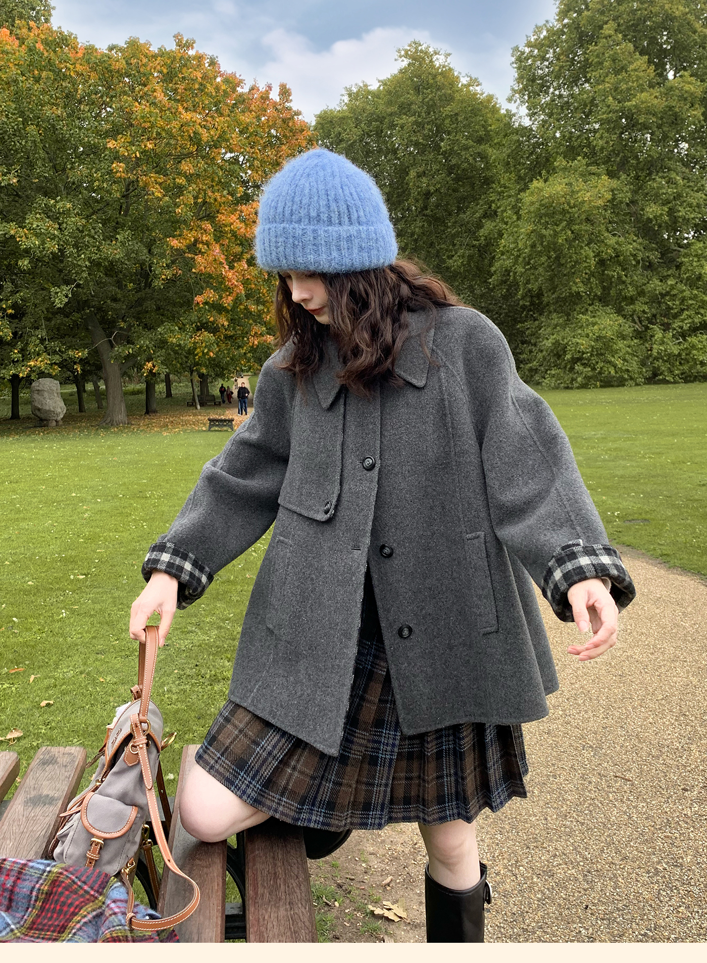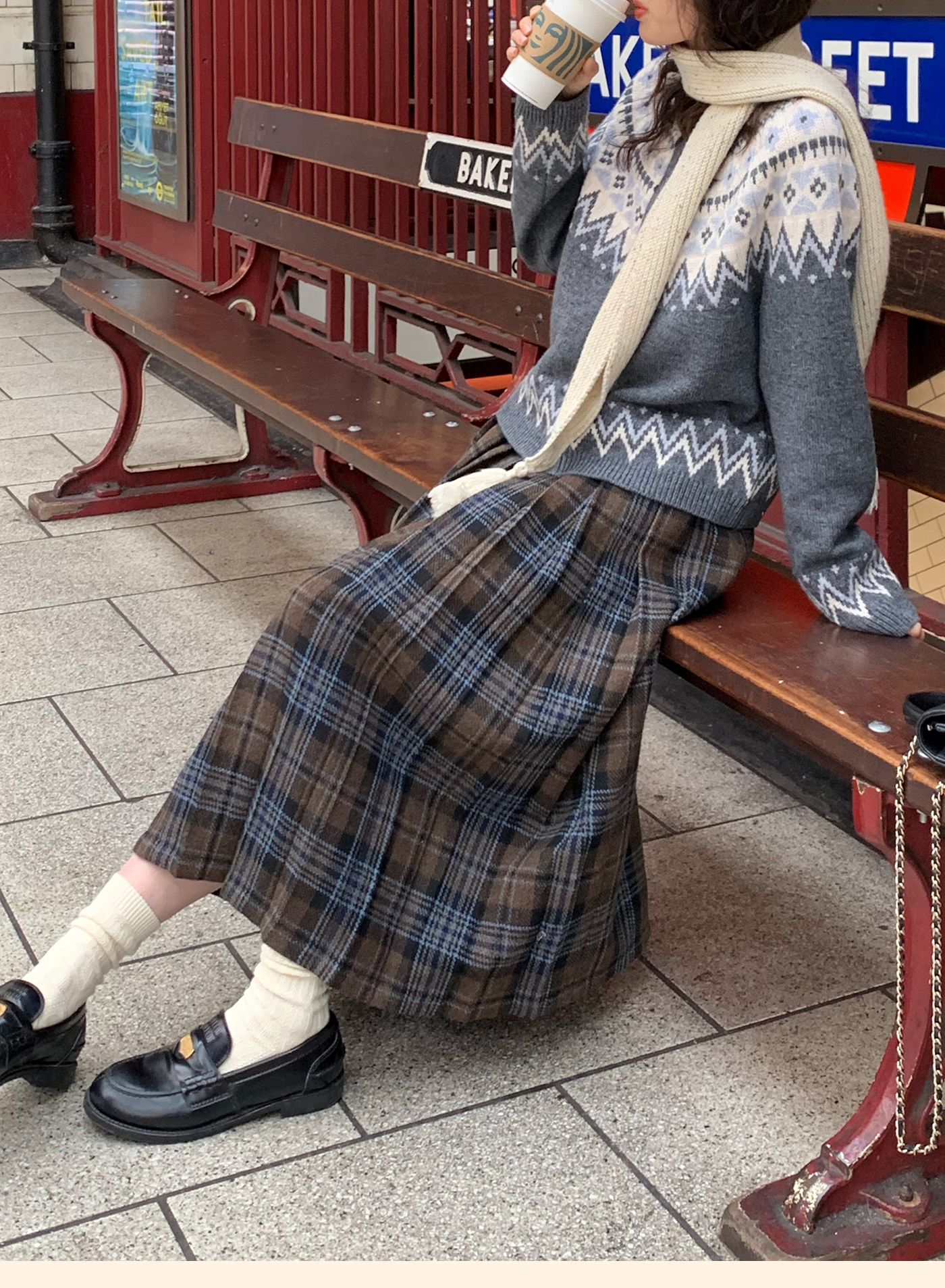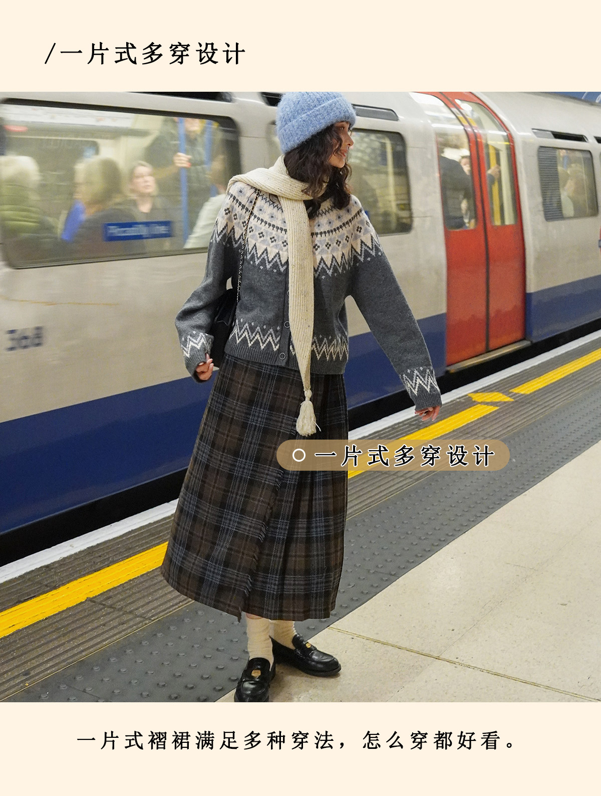 浮生八记/25D204/一片式苏格兰格纹A字百褶半裙