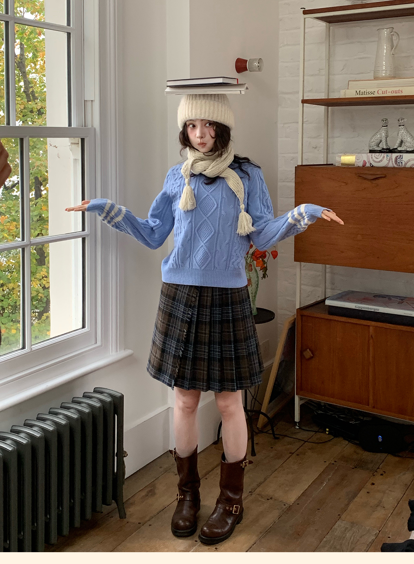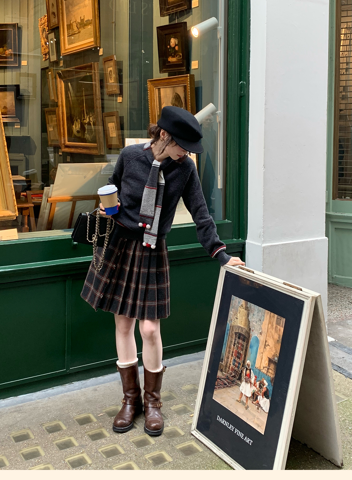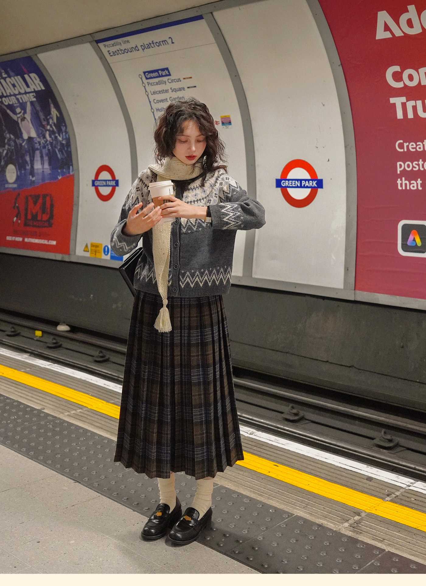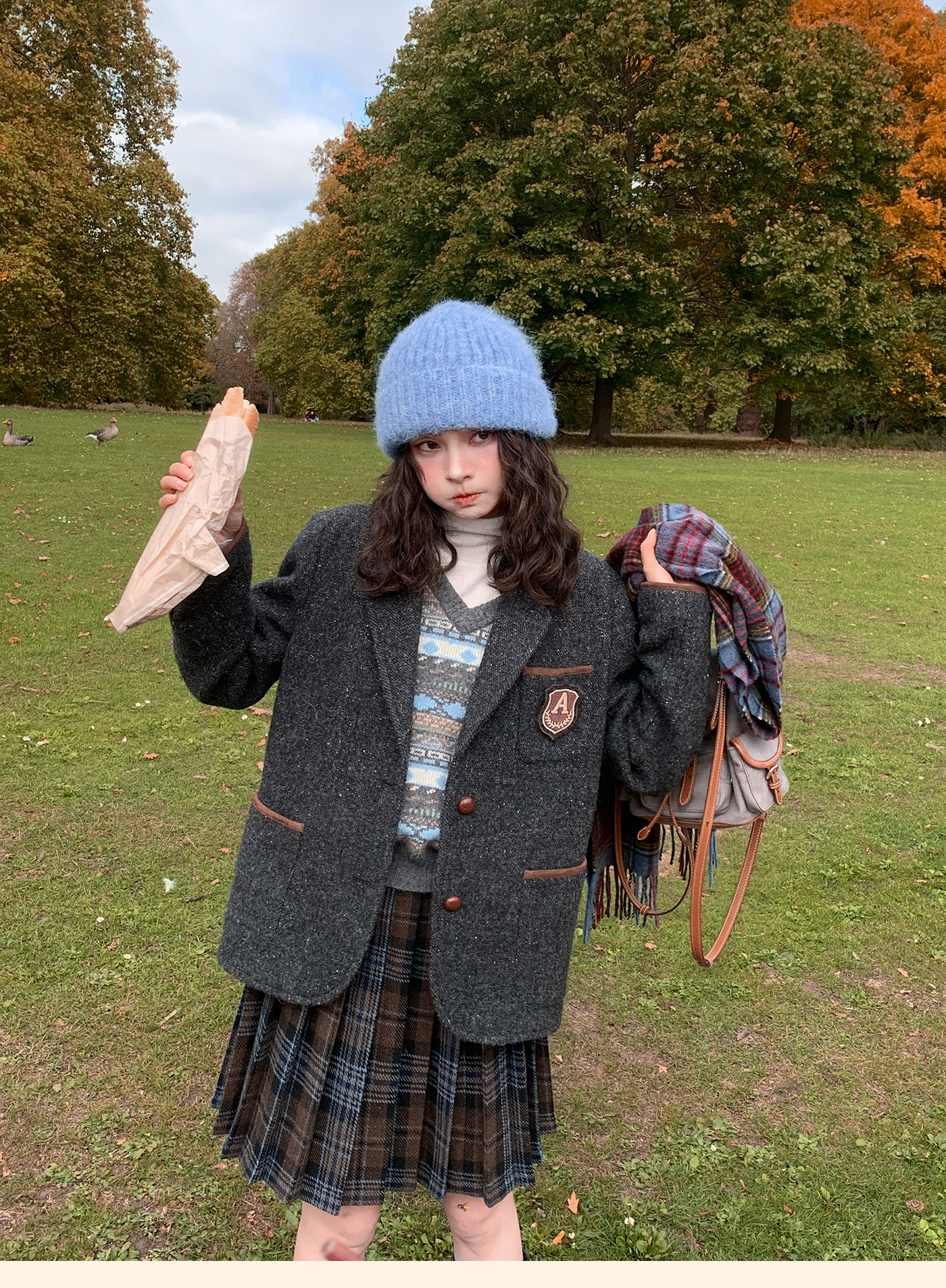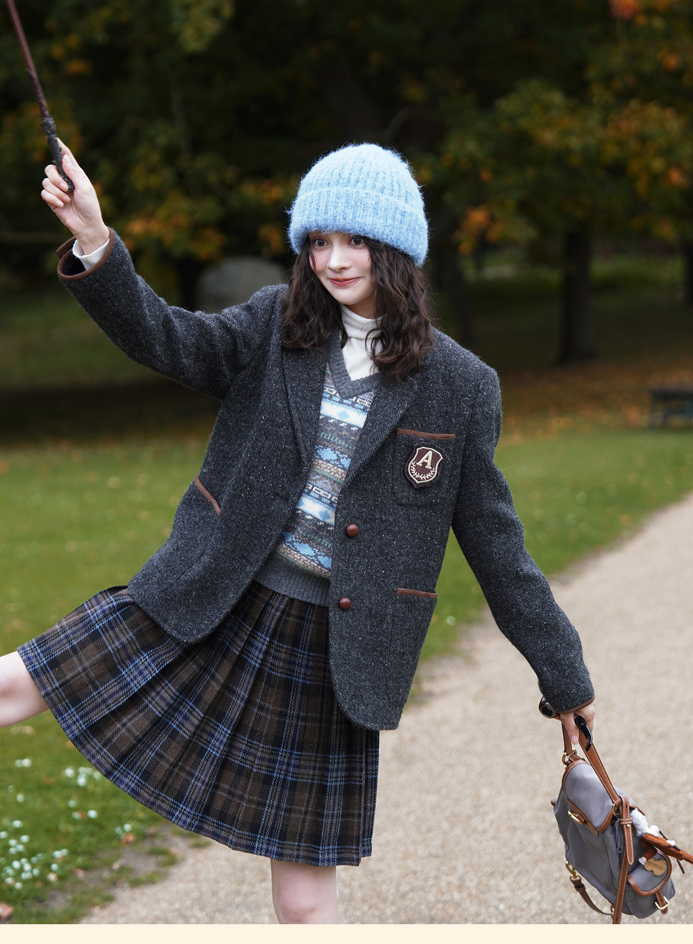 浮生八记/25D204/一片式苏格兰格纹A字百褶半裙