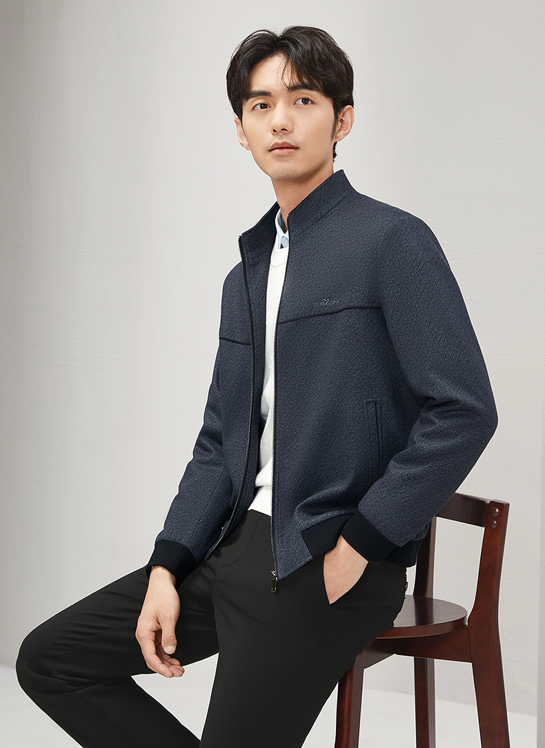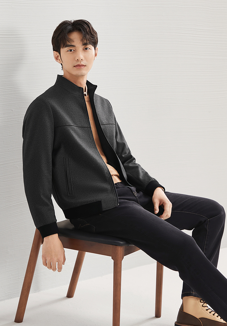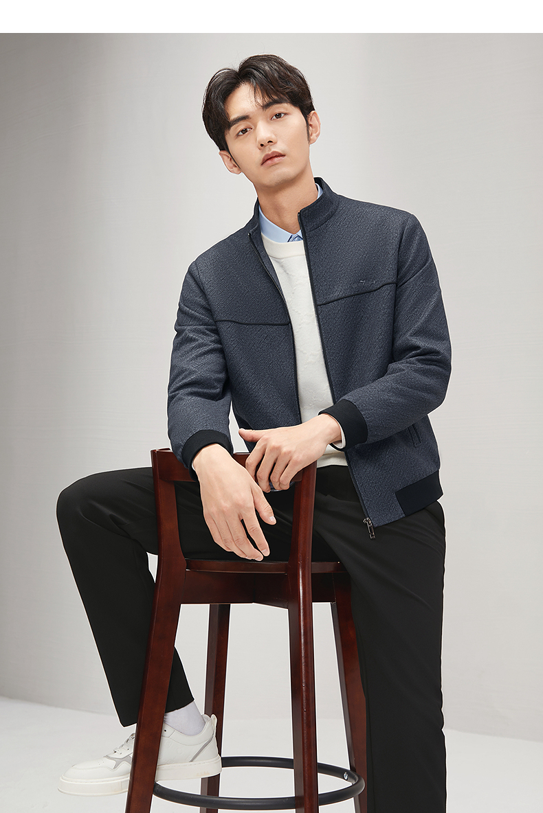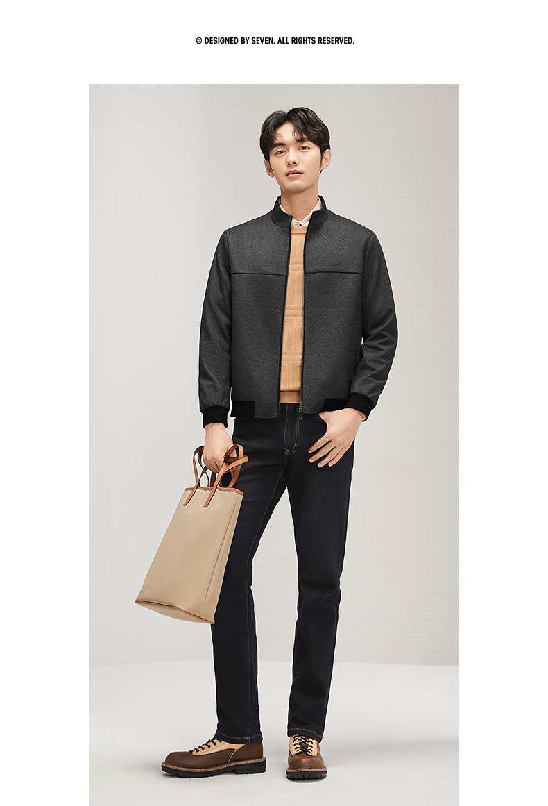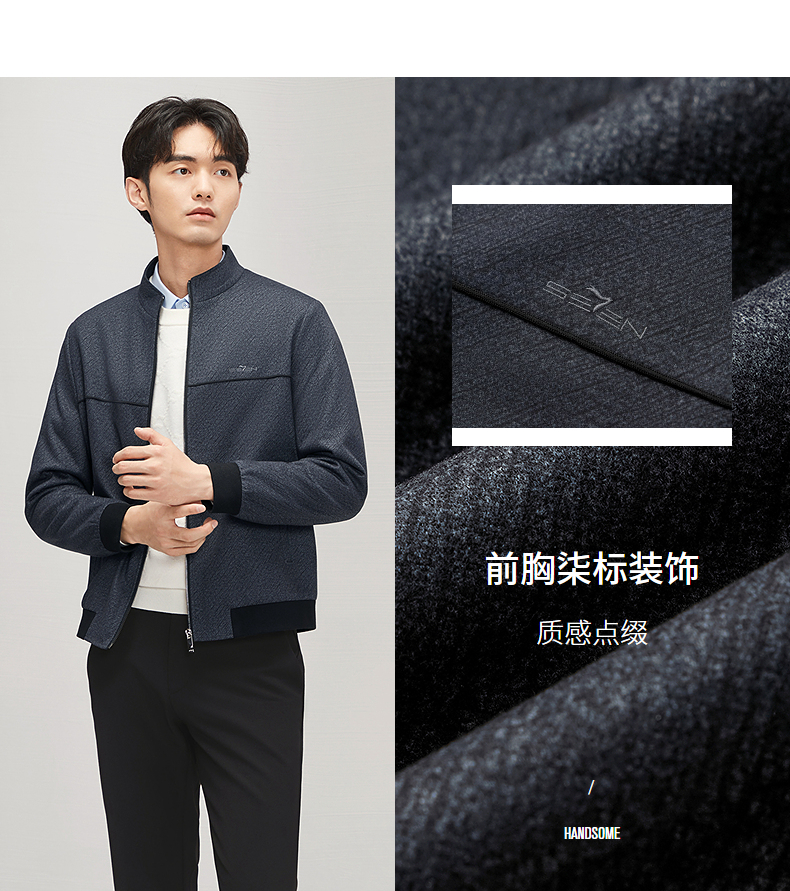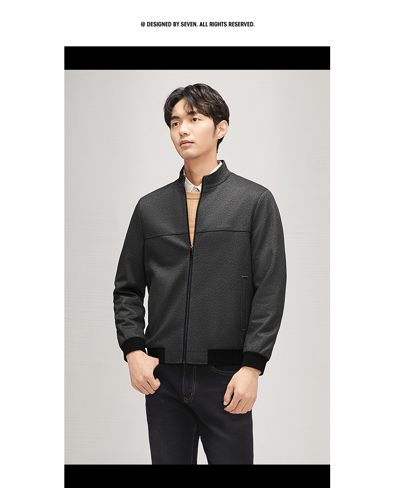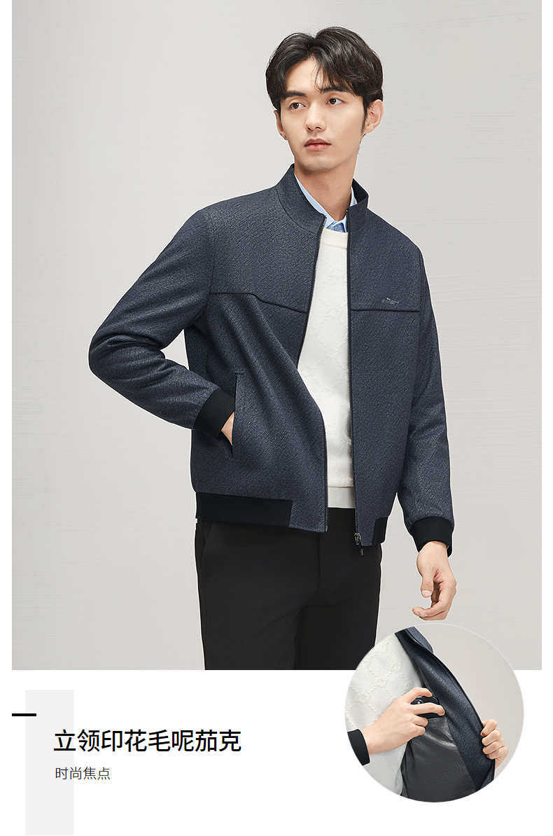 柒牌立领夹克男2024秋冬新款时尚潮流中青年厚款男士休闲毛呢外套 127D70370