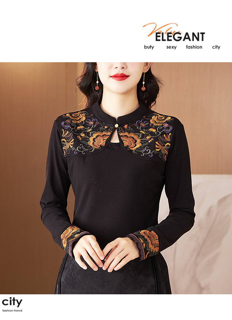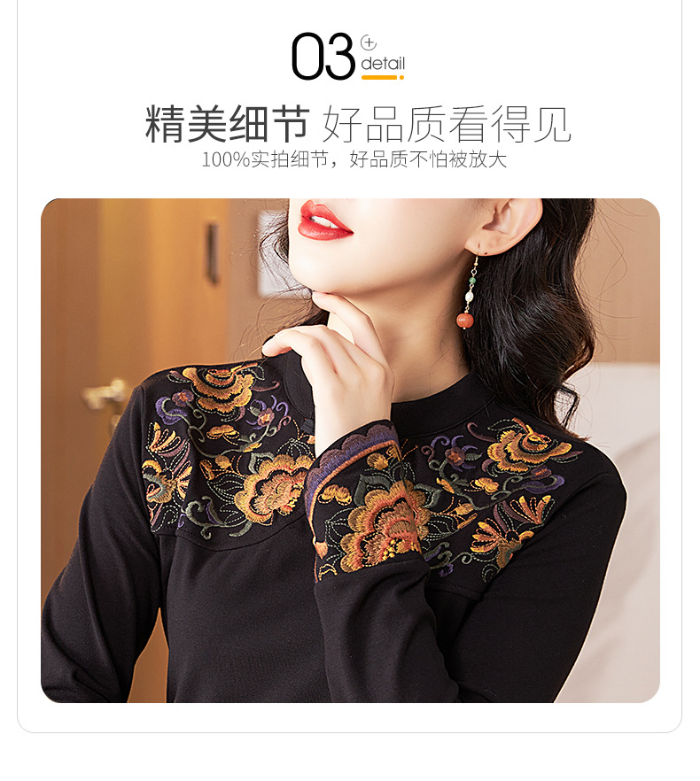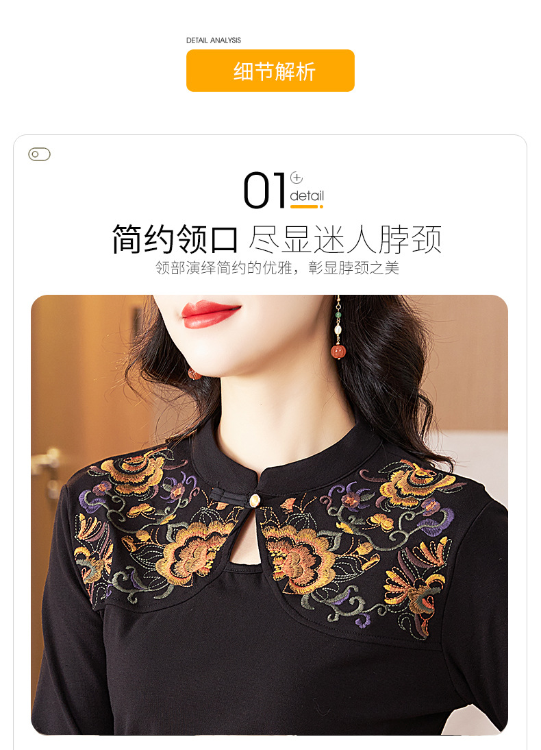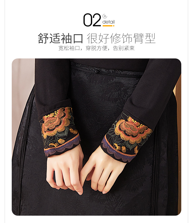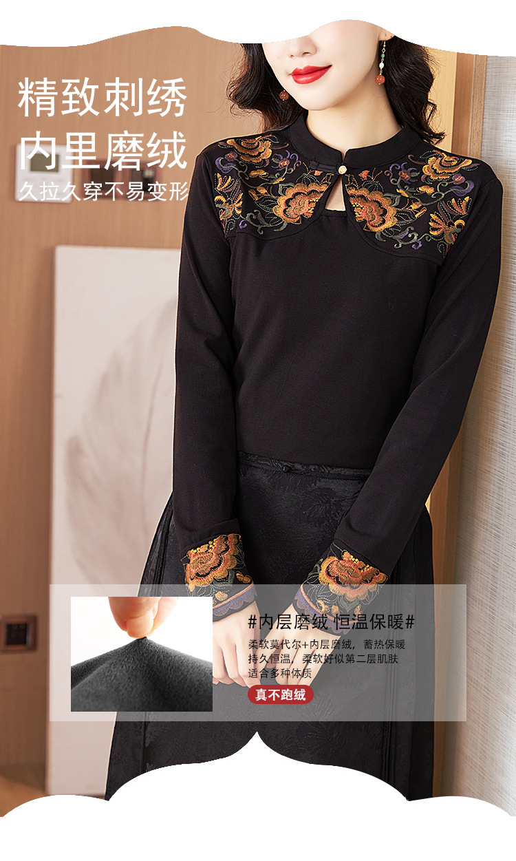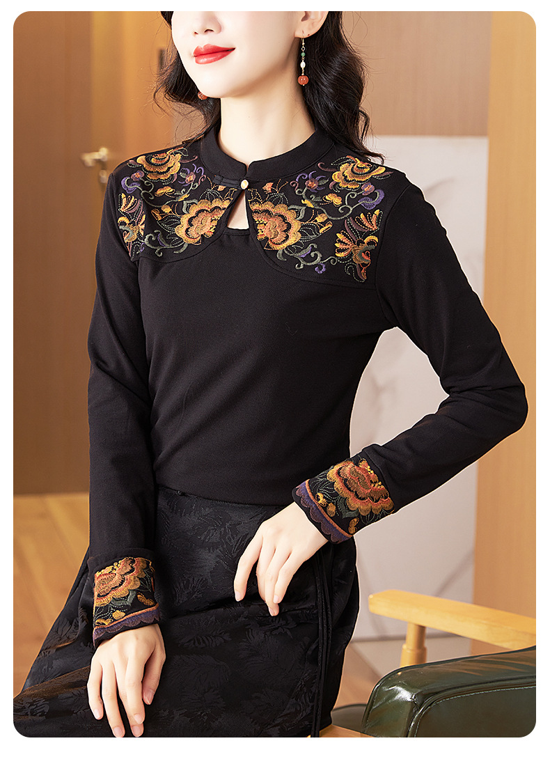 秋新款民族风秋装长袖刺绣T恤,绣花上衣圆领套头黑色打底衫KQL-422H2286