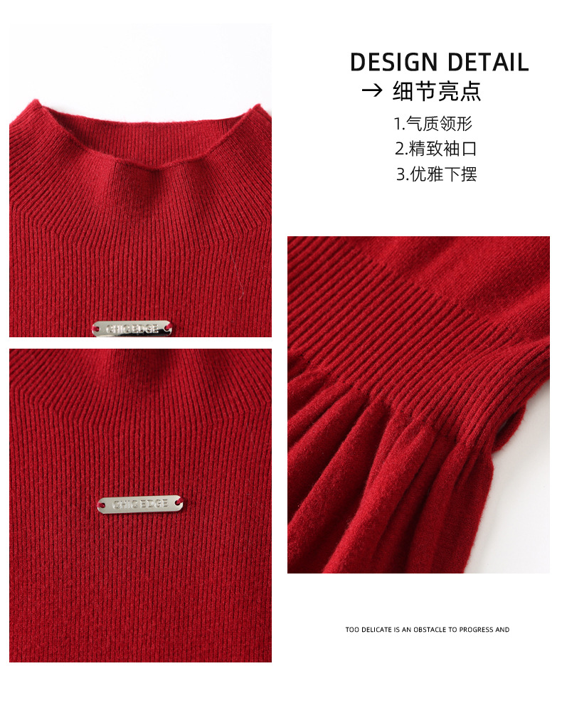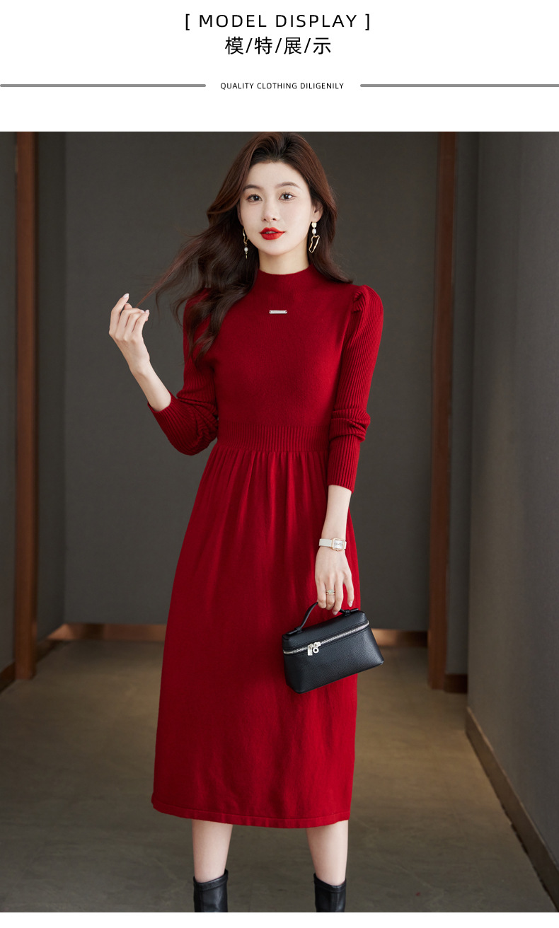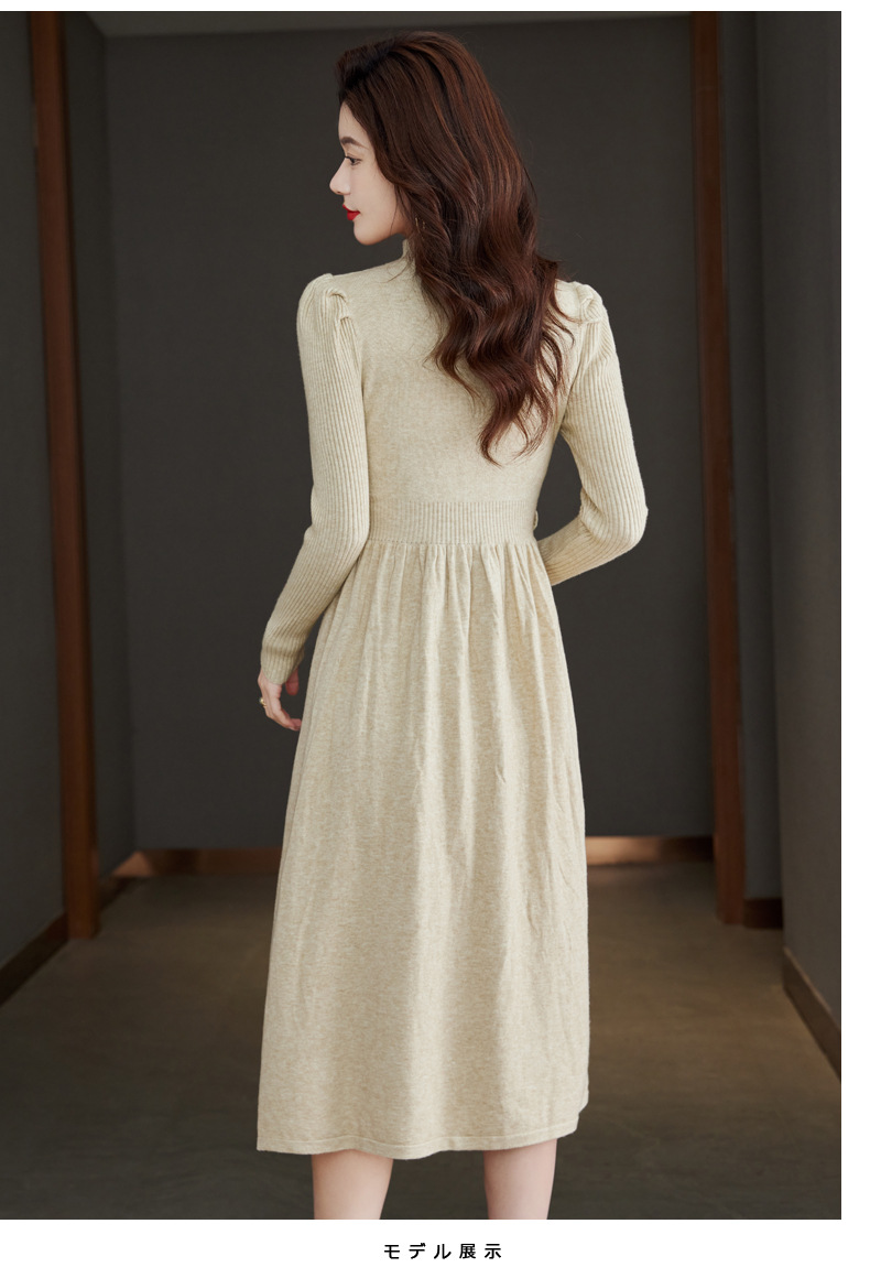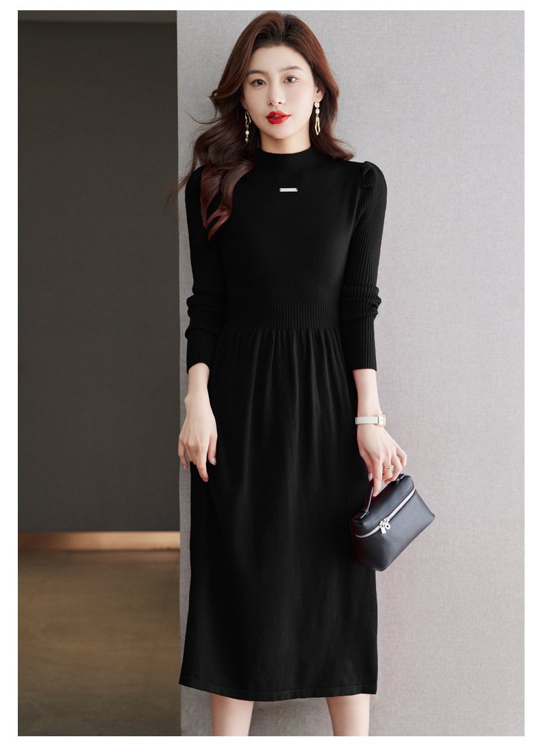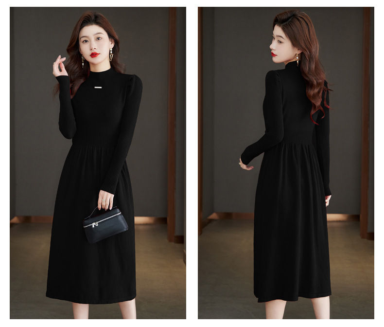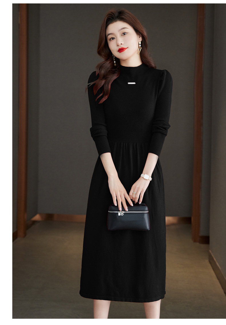 法式泡泡袖针织连衣裙,女秋冬新款小个子内搭收腰打底毛衣裙CC-QL-W8379