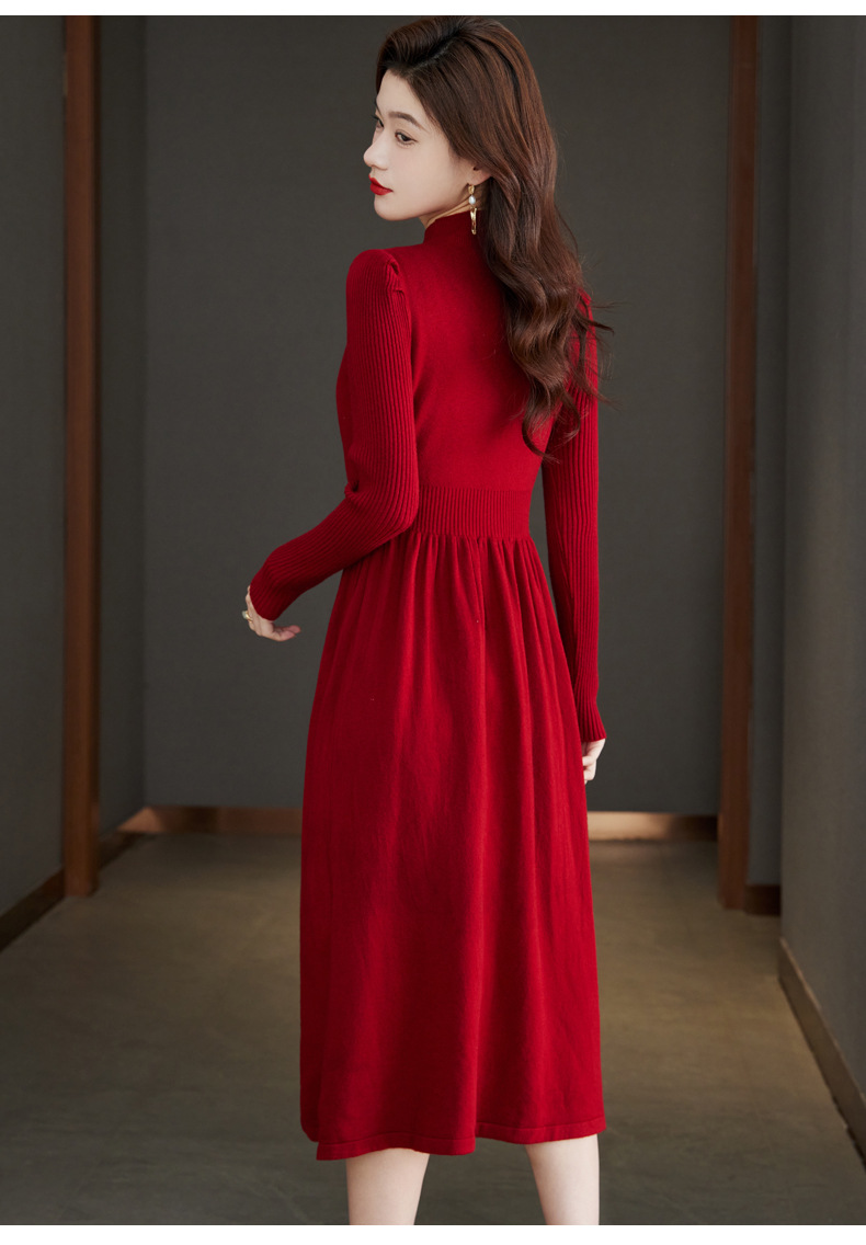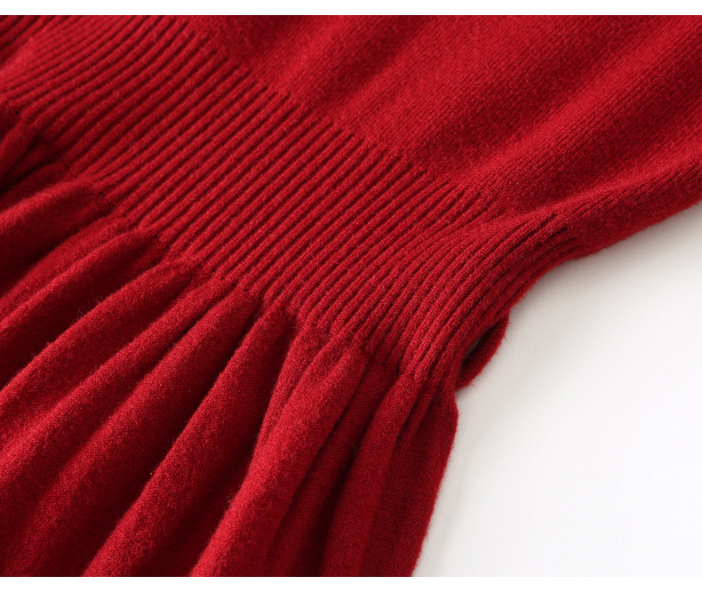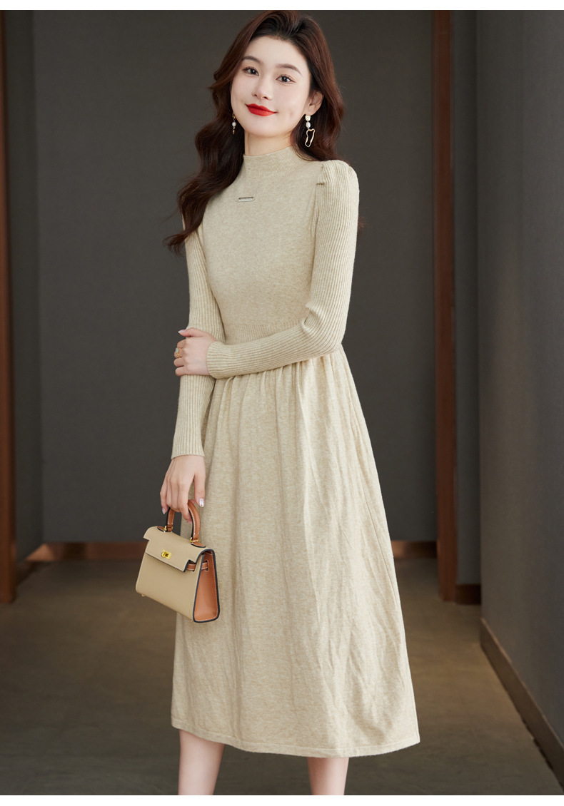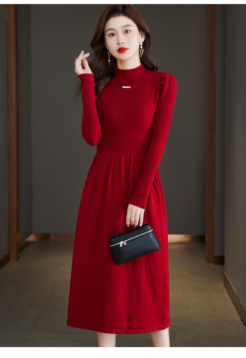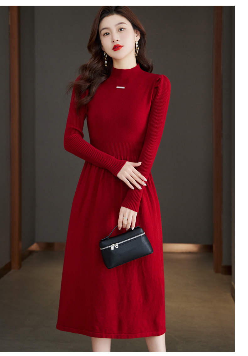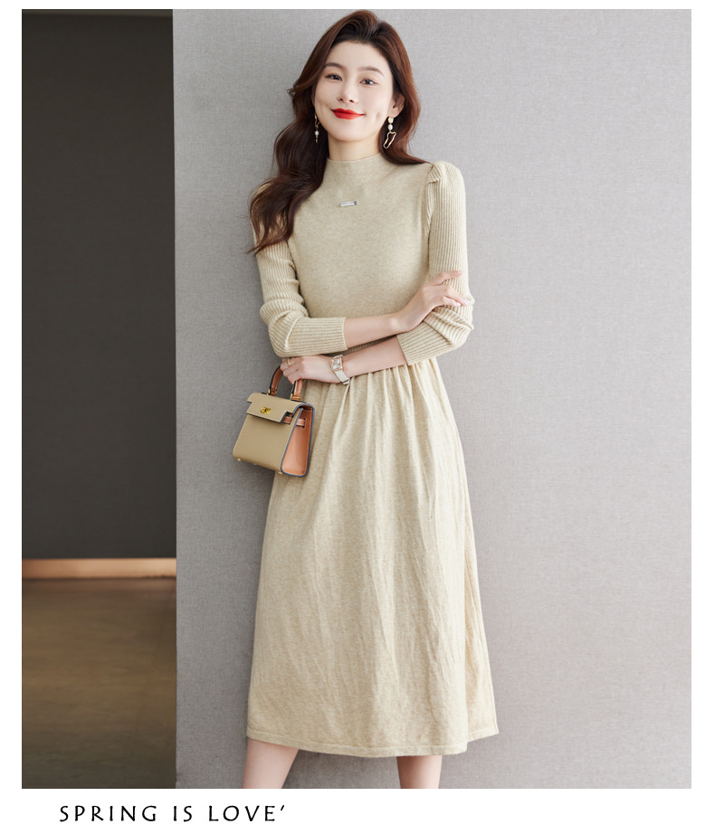 法式泡泡袖针织连衣裙,女秋冬新款小个子内搭收腰打底毛衣裙CC-QL-W8379