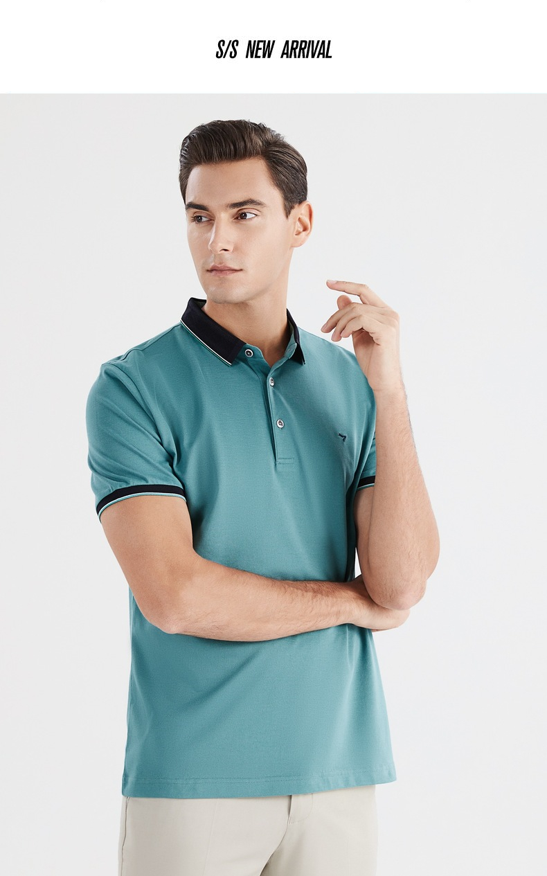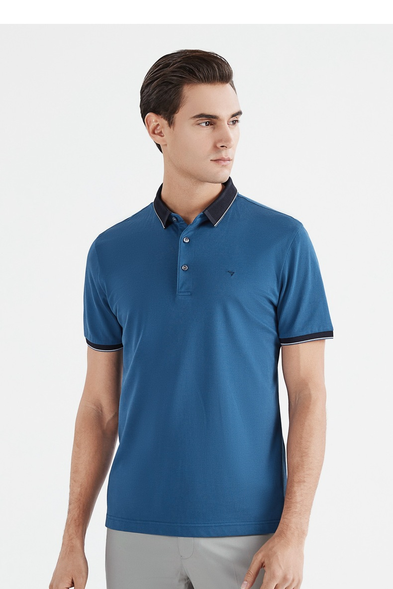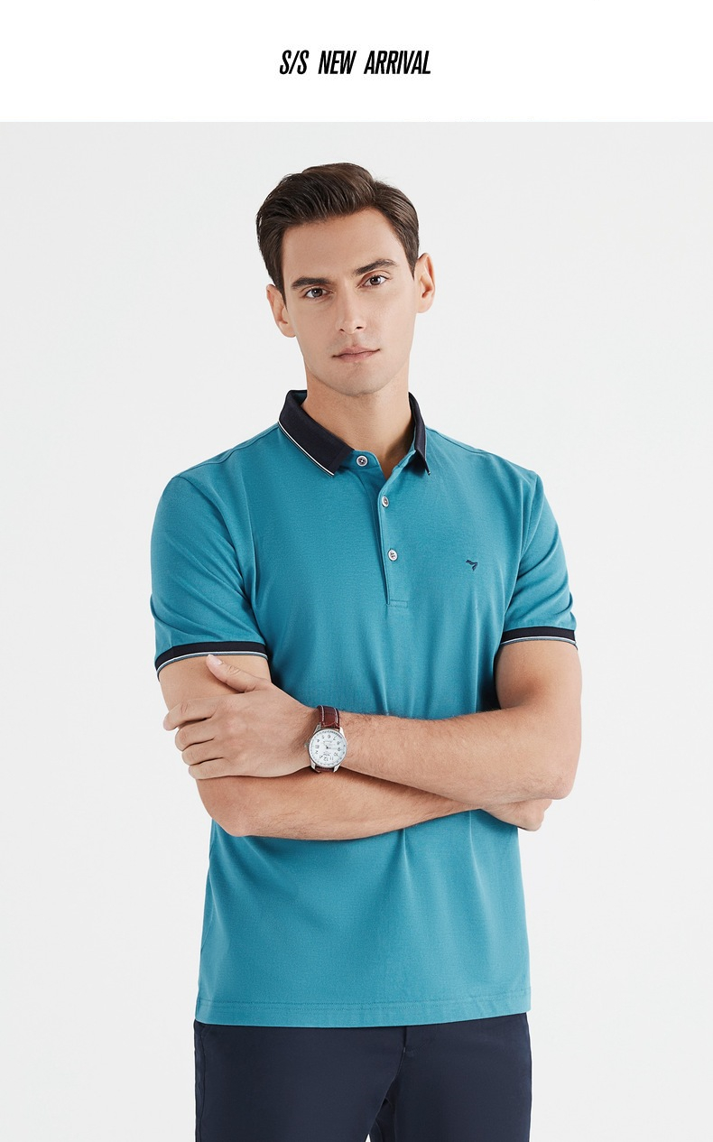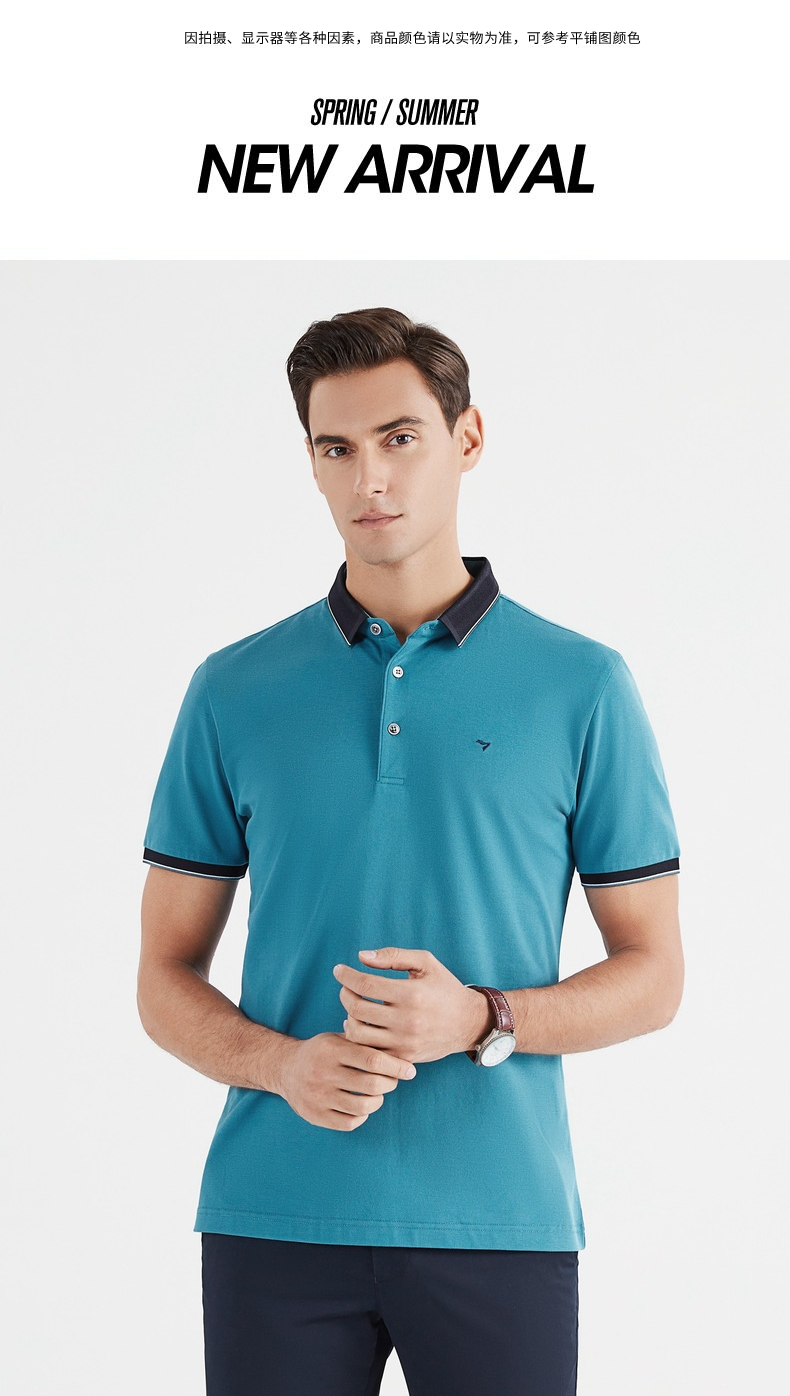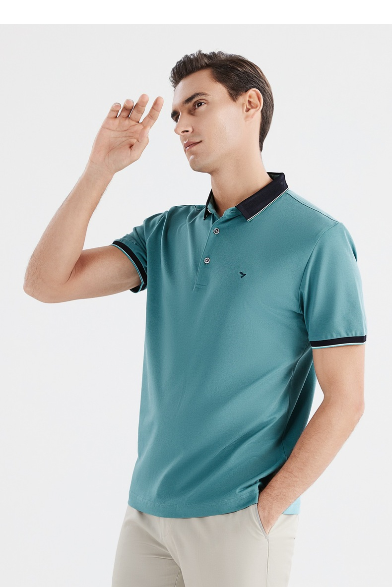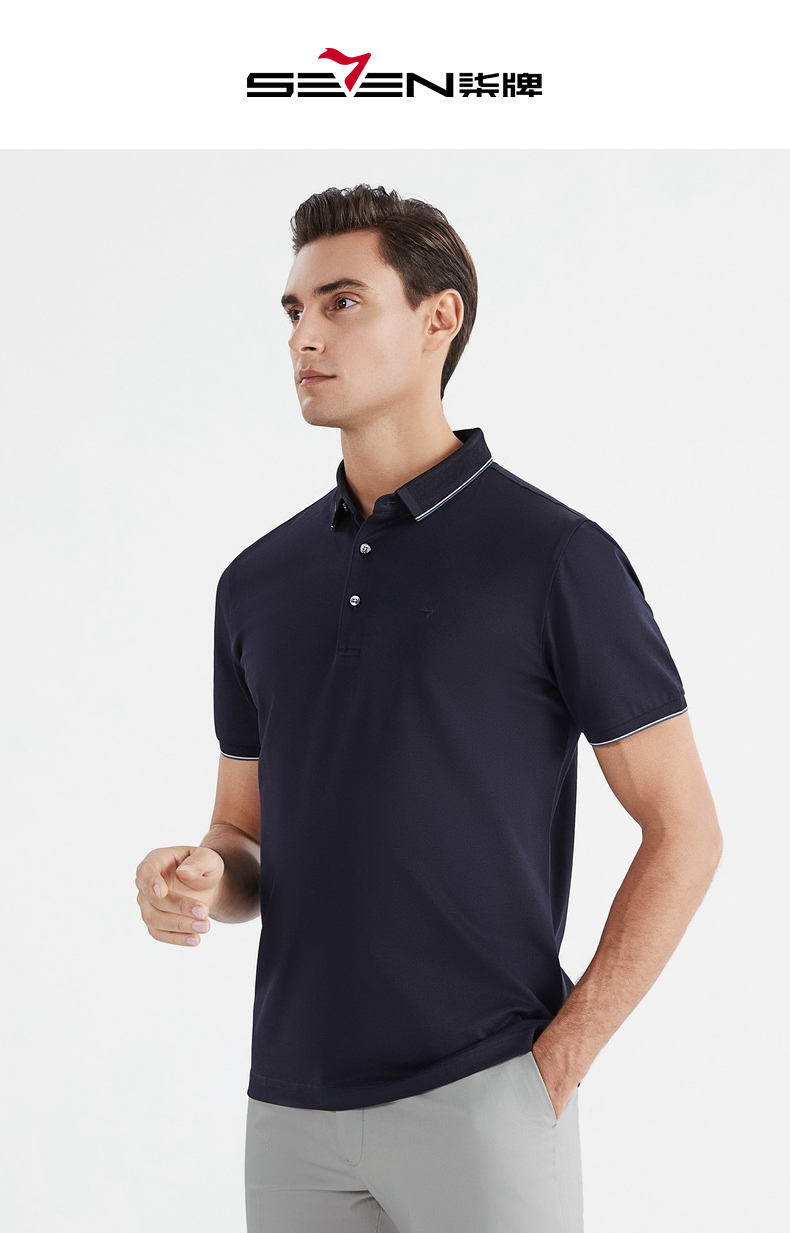 【含桑蚕丝】柒牌男士短袖polo衫夏季薄款撞色翻领休闲保罗衫 122T70130