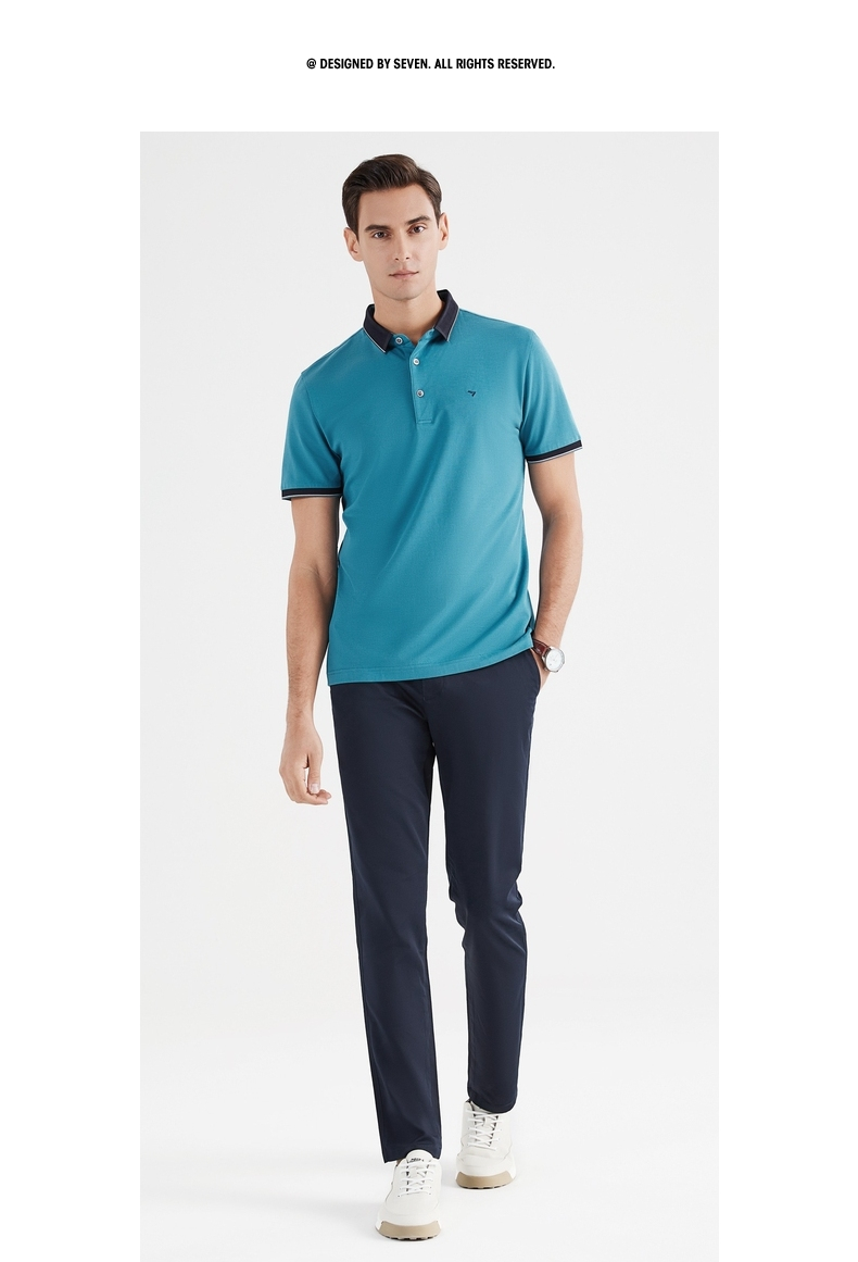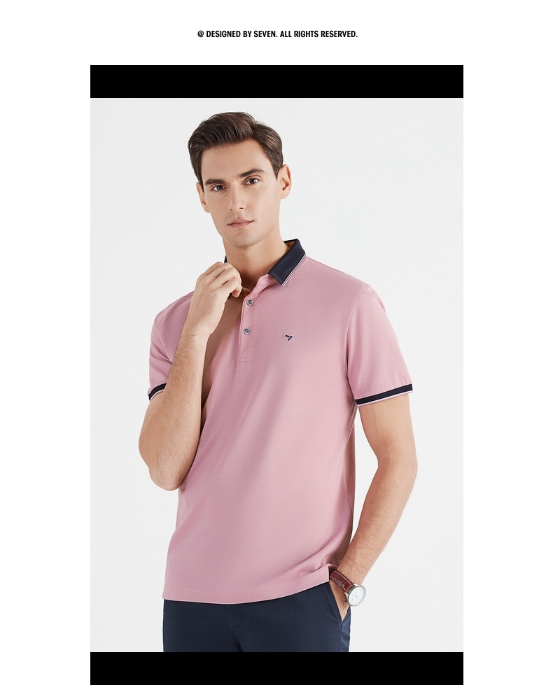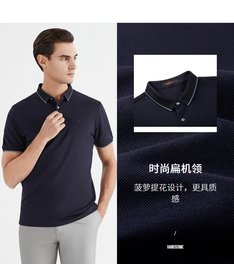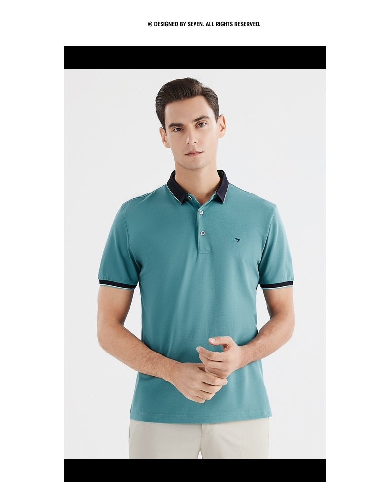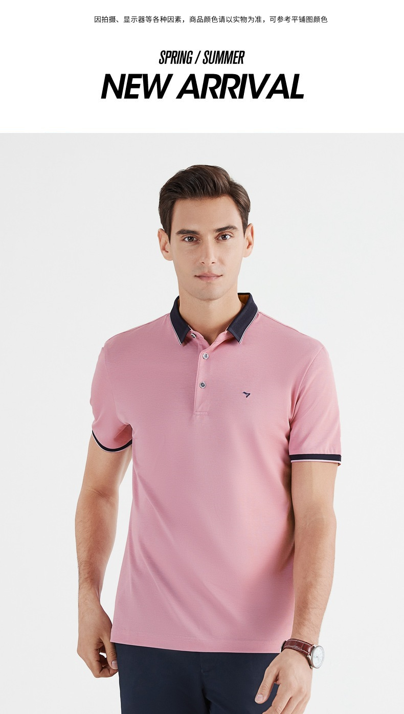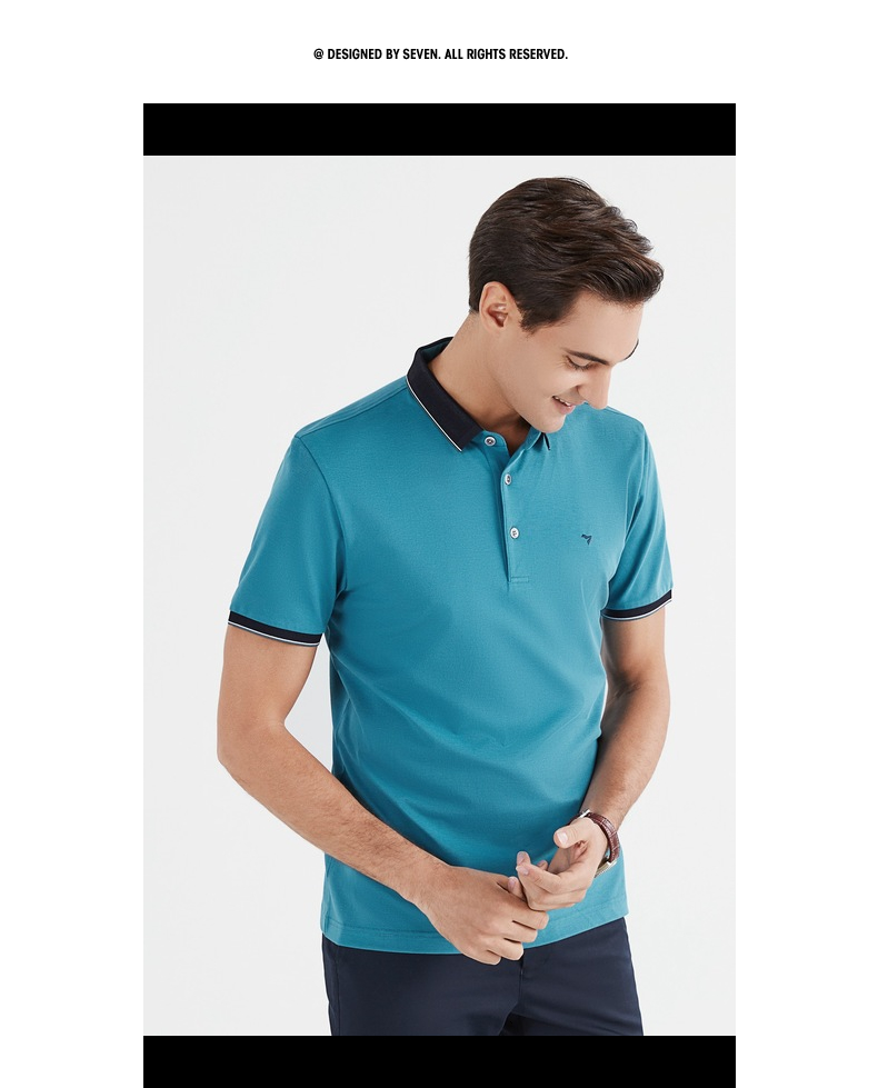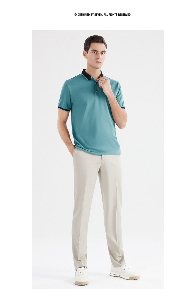 【含桑蚕丝】柒牌男士短袖polo衫夏季薄款撞色翻领休闲保罗衫 122T70130