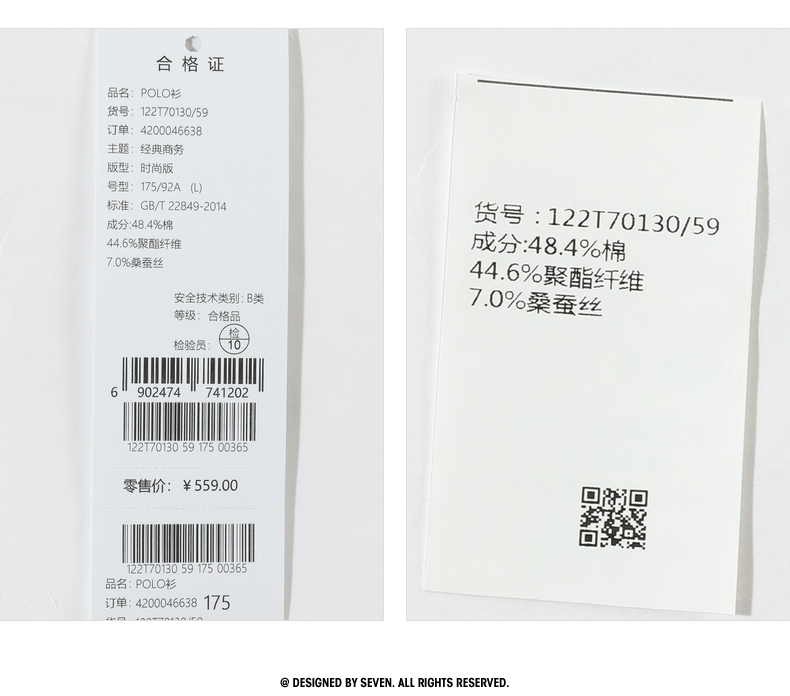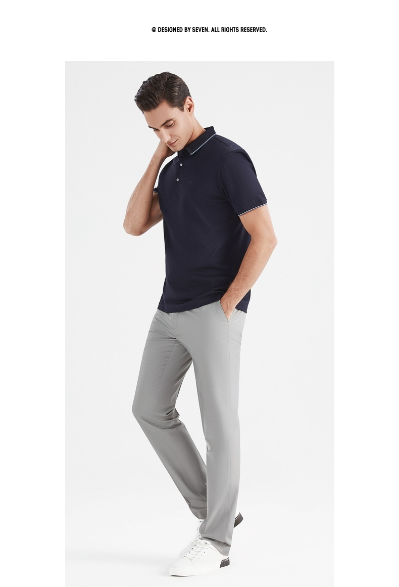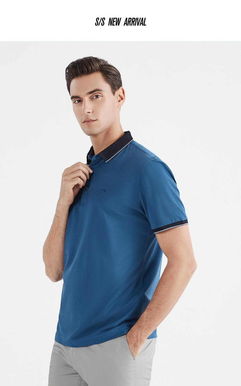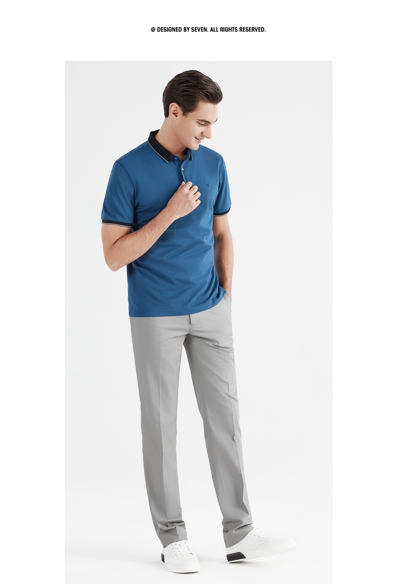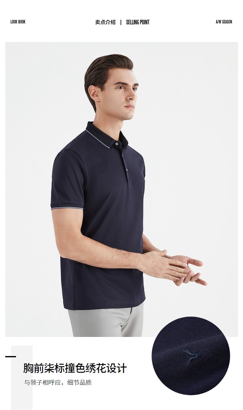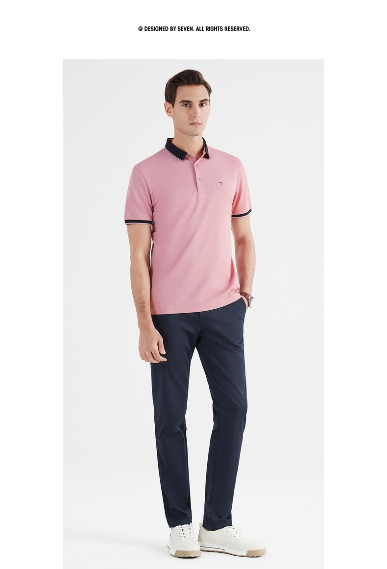 【含桑蚕丝】柒牌男士短袖polo衫夏季薄款撞色翻领休闲保罗衫 122T70130