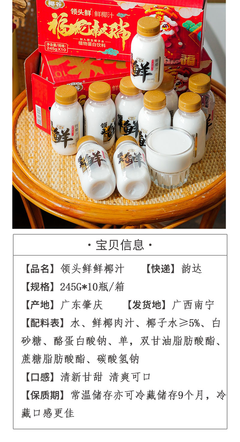 真椰汁!鲜椰肉+原生椰子水,椰子的味道好醇厚呀,虽然椰子味很浓,但是不会很甜,一口气能炫1瓶。