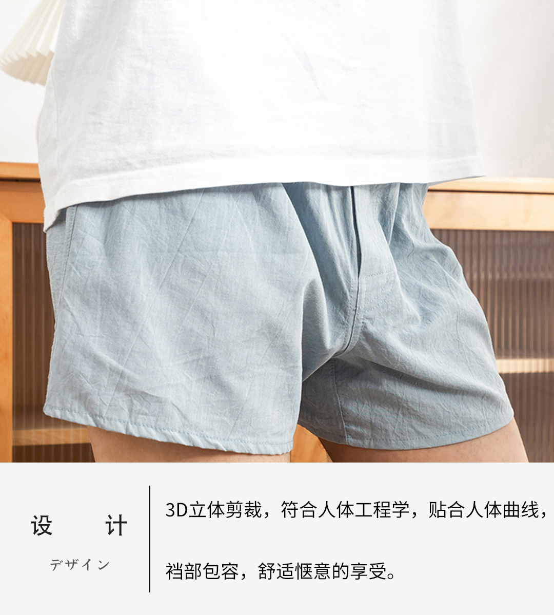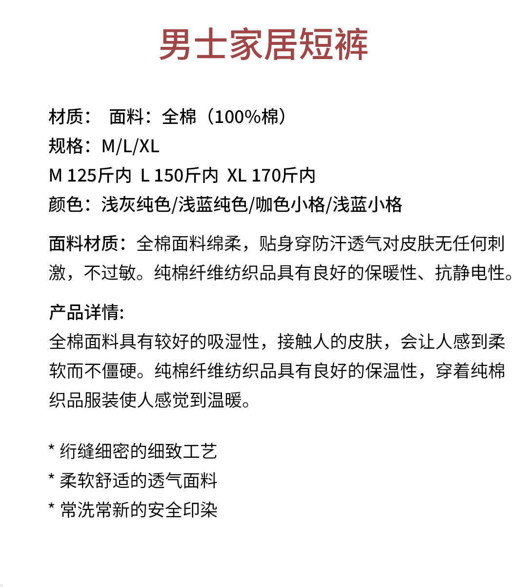 【全棉家居短裤】男生内裤全棉家居短裤水洗棉格子纯色