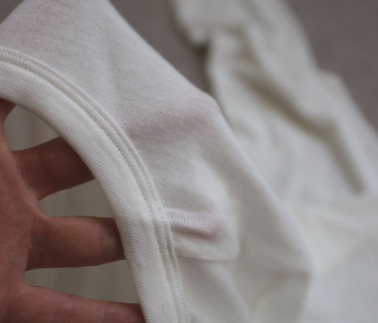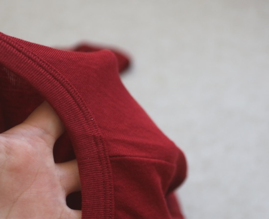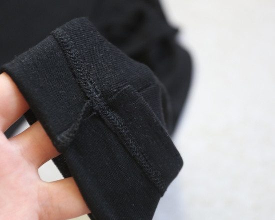 适中的小圆领 缝线都有弹力 踩的都很扎实 领口袖口也是同布料 弹力很足