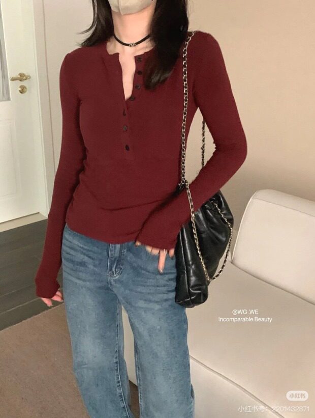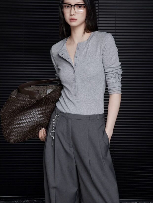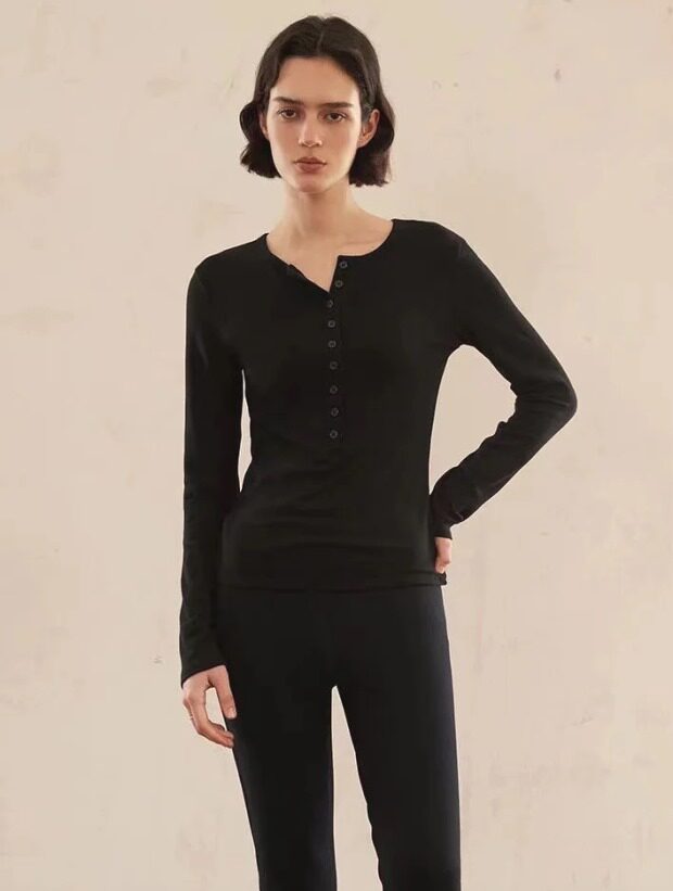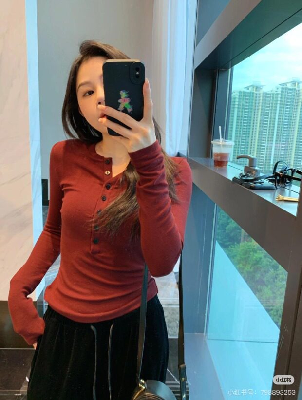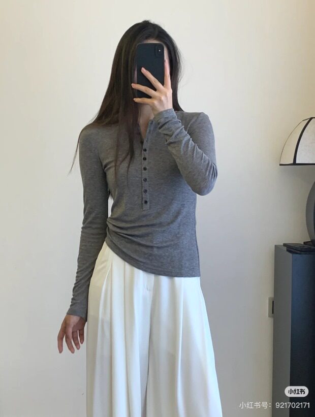 薄薄一件 正肩的微包身版型 纱线很细 弹力非常大 软薄滑糯