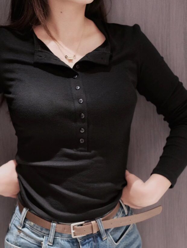 好久不见的亨利领 九颗扣扣 全部都能开 而且都是贝母扣 五彩斑斓的黑 哈~