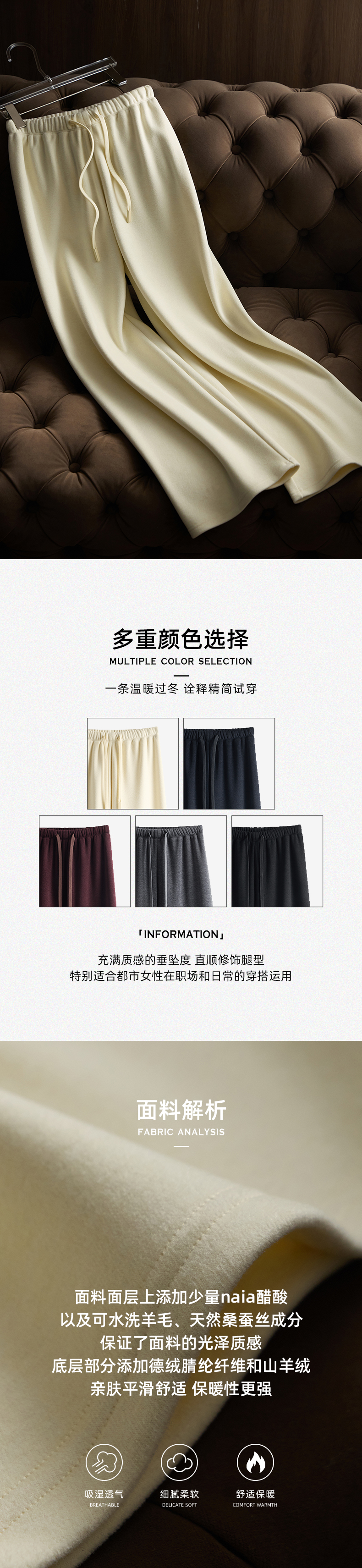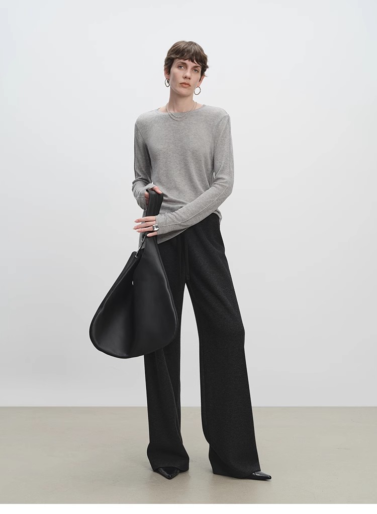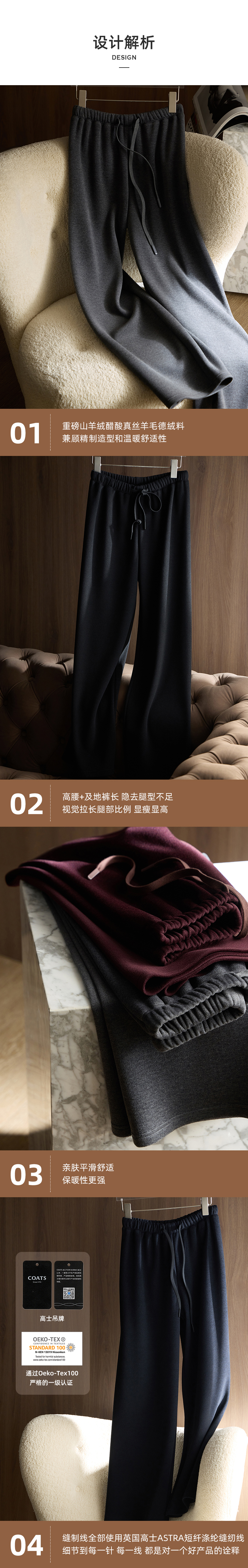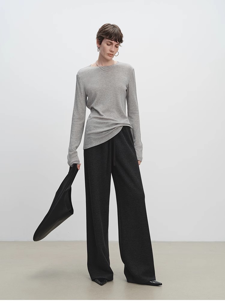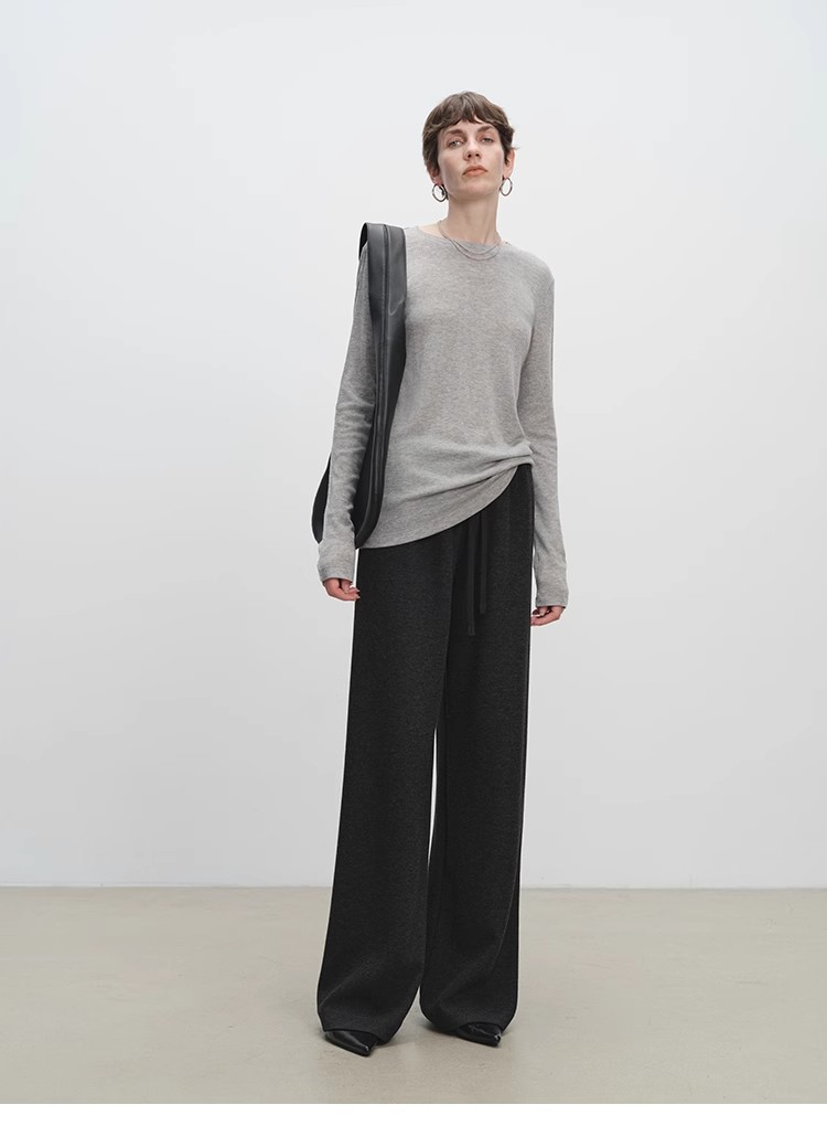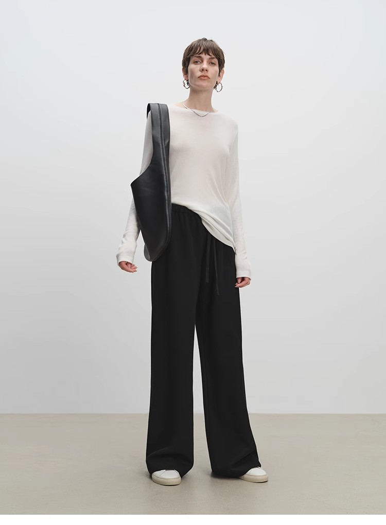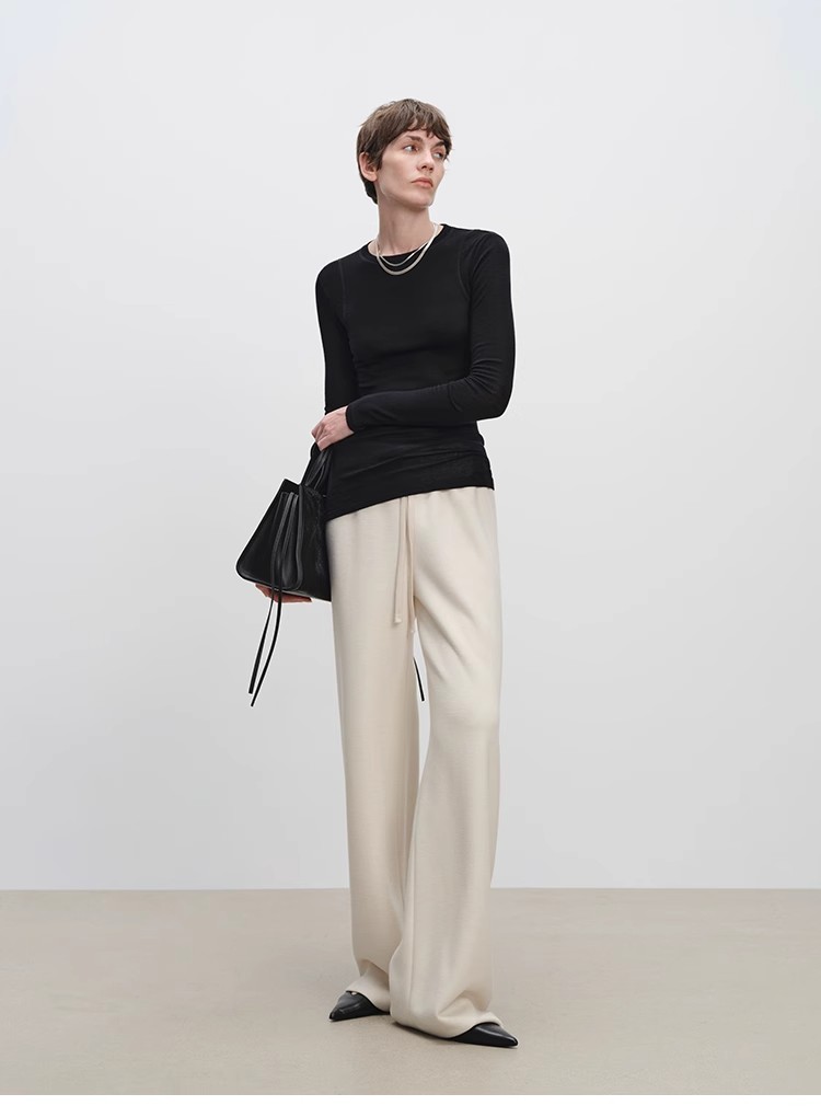 山羊绒醋酸桑蚕丝抽绳直筒毛呢空气裤 2652 厚垂有型黄金组合 一条过冬纸片人