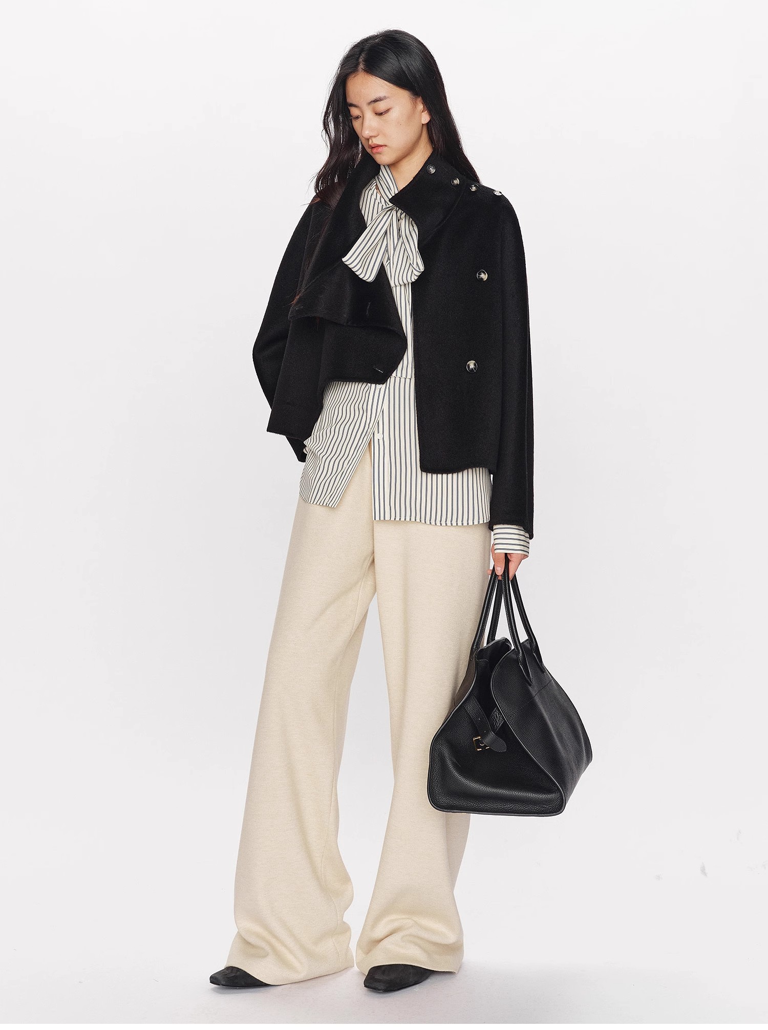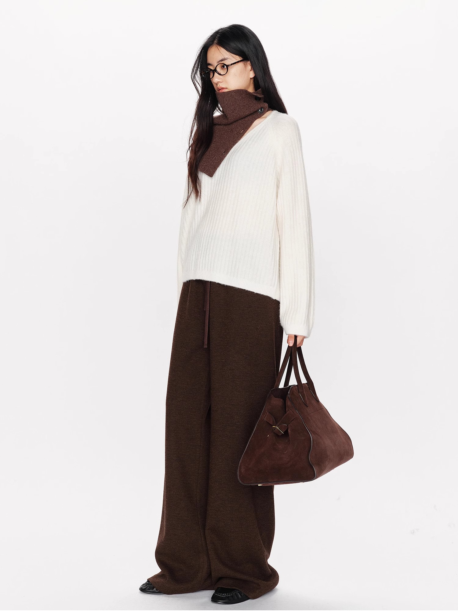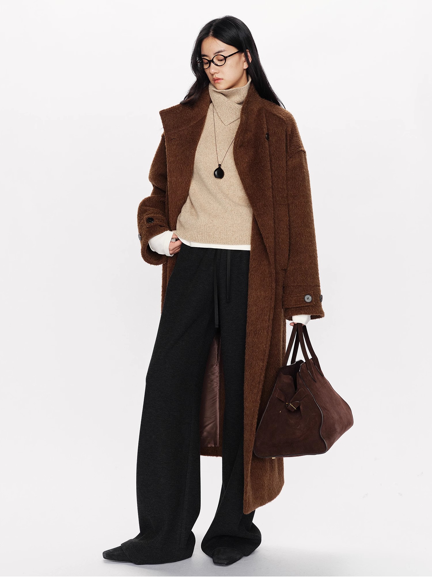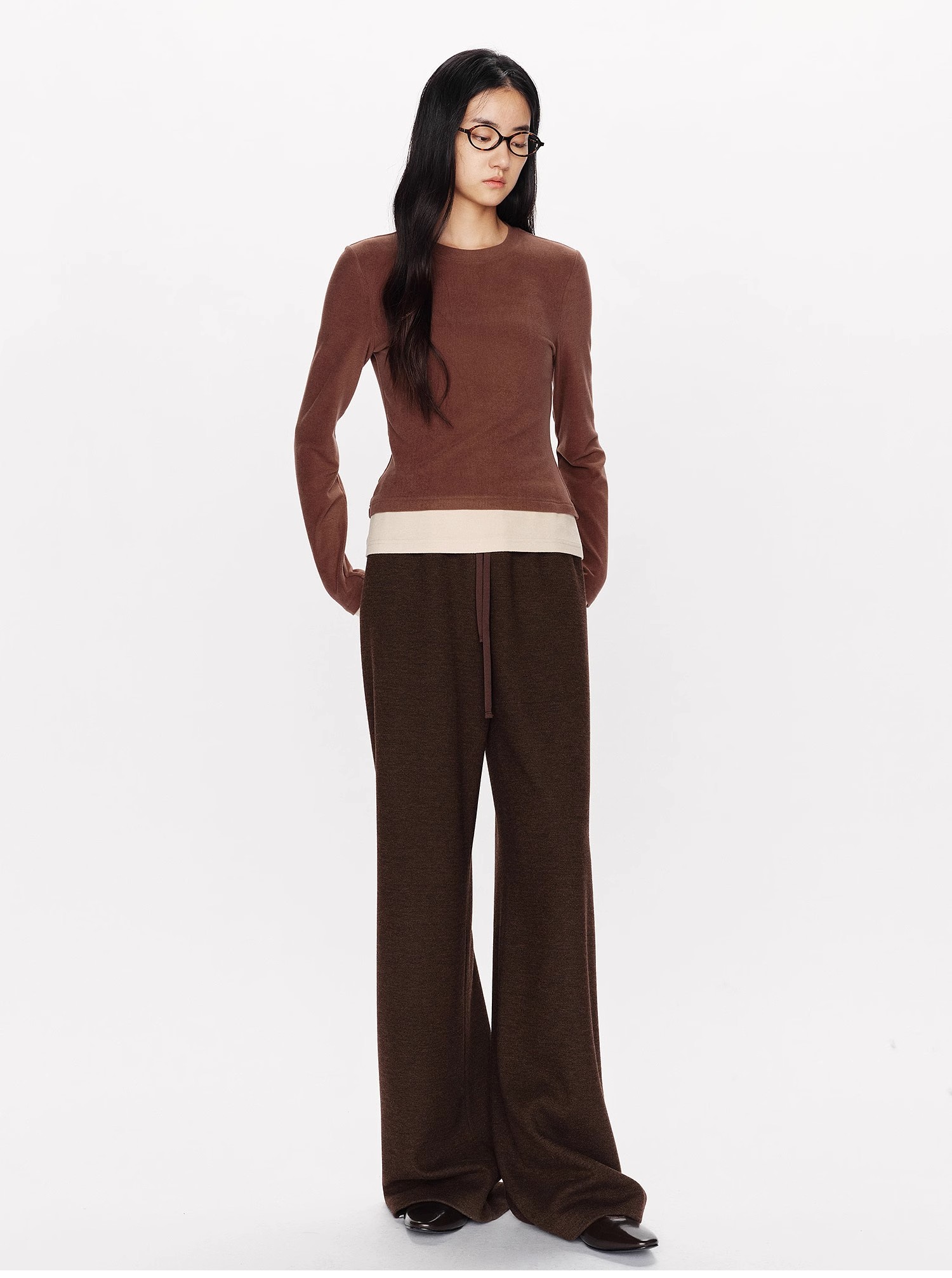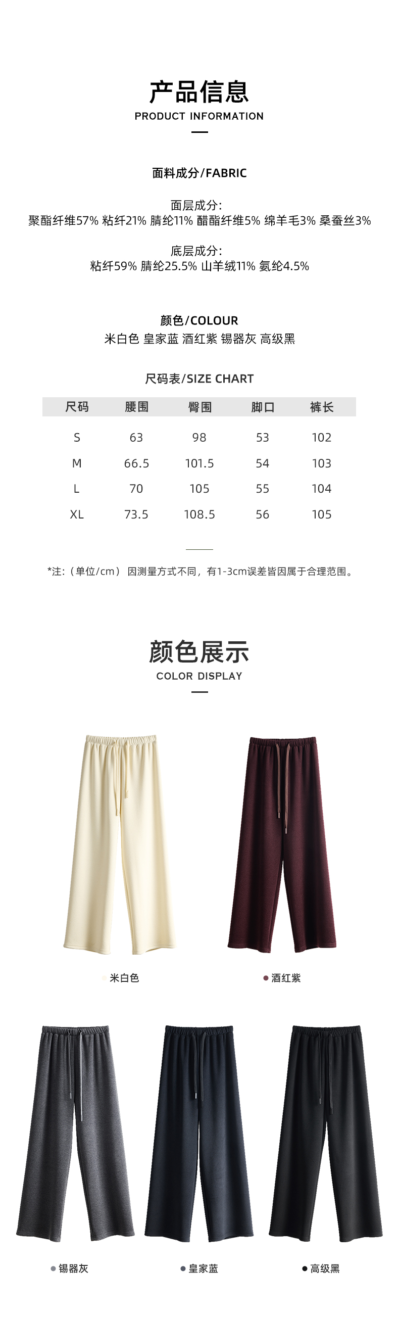山羊绒醋酸桑蚕丝抽绳直筒毛呢空气裤 2652 厚垂有型黄金组合 一条过冬纸片人