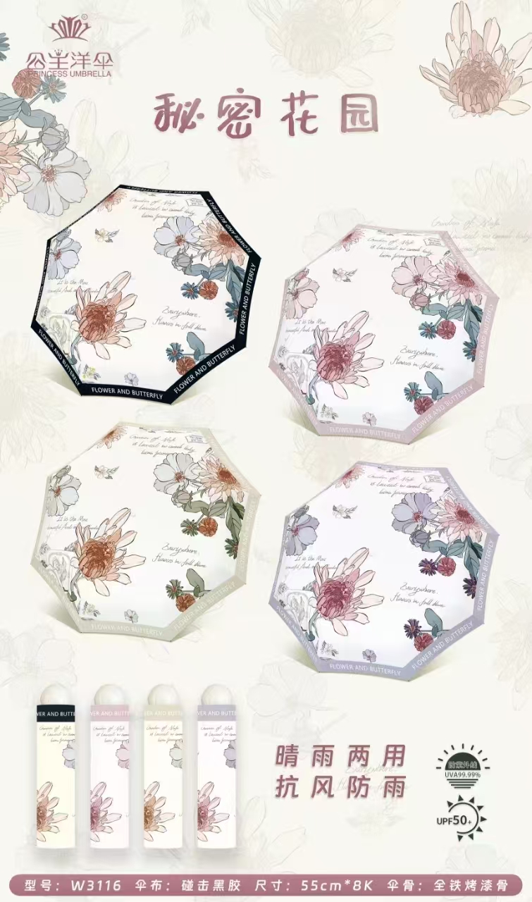 馨宜优品花间咿语黑胶防晒伞(240395)