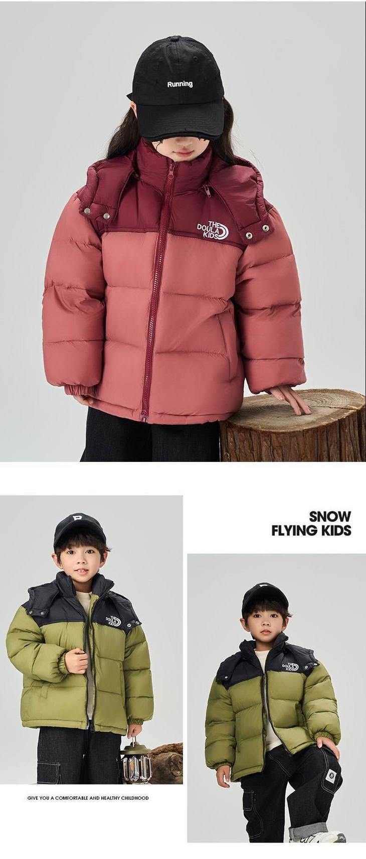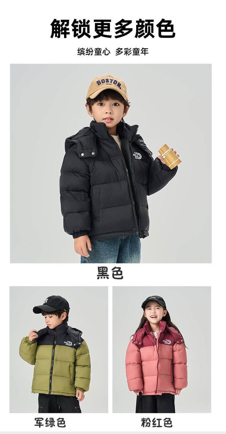 为宝贝选择一件儿童轻暖面包羽绒服 是对他们最好的陪伴与呵护~ 买一件等于拥有两件!性价比真的好高! 可拆卸连帽设计,可以保护宝贝们娇嫩的脖子和耳朵
