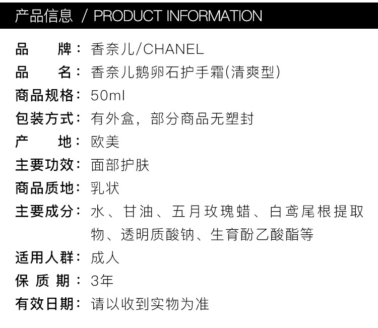 香奈儿智慧紧肤黑白蛋护手霜50ml