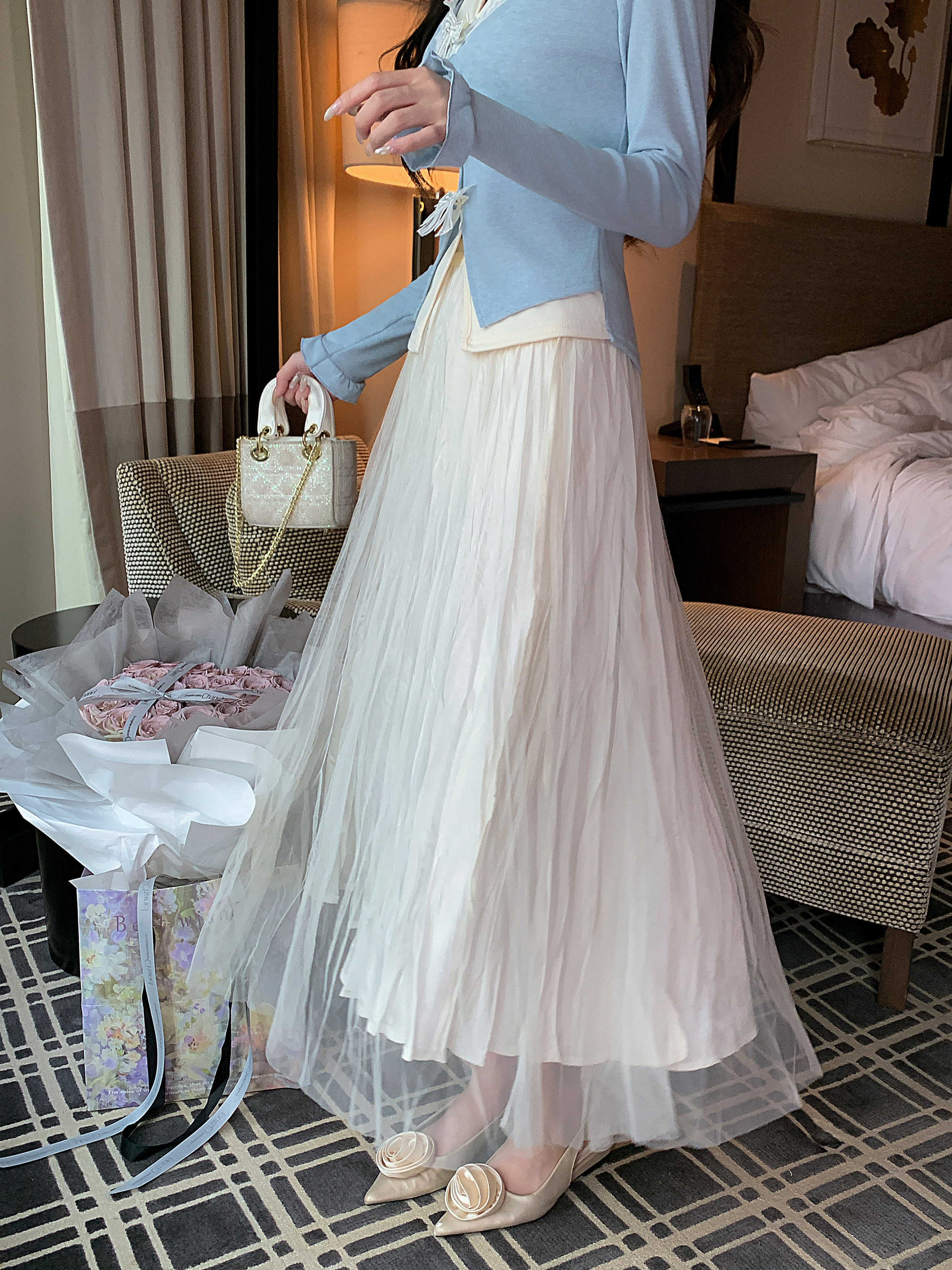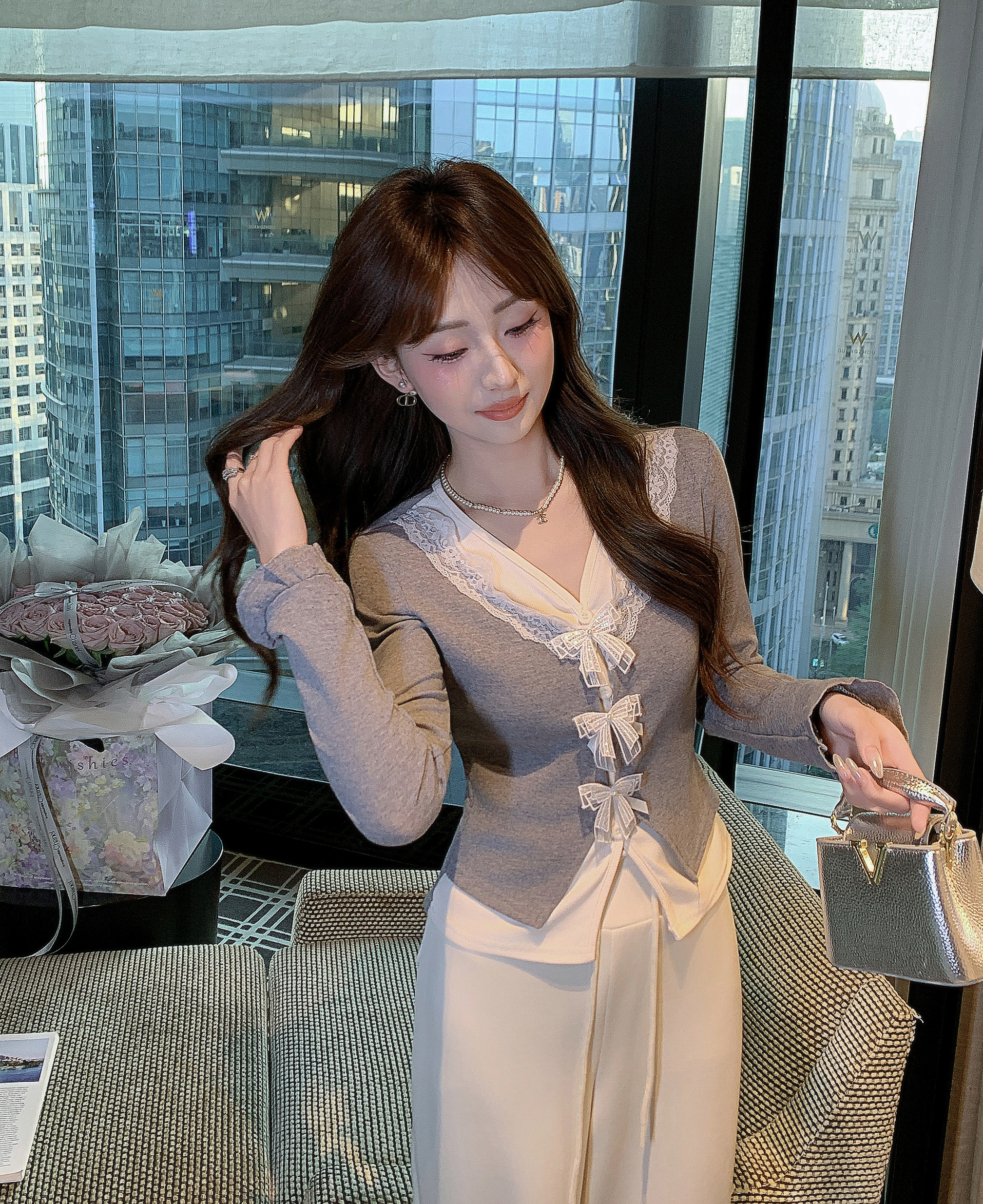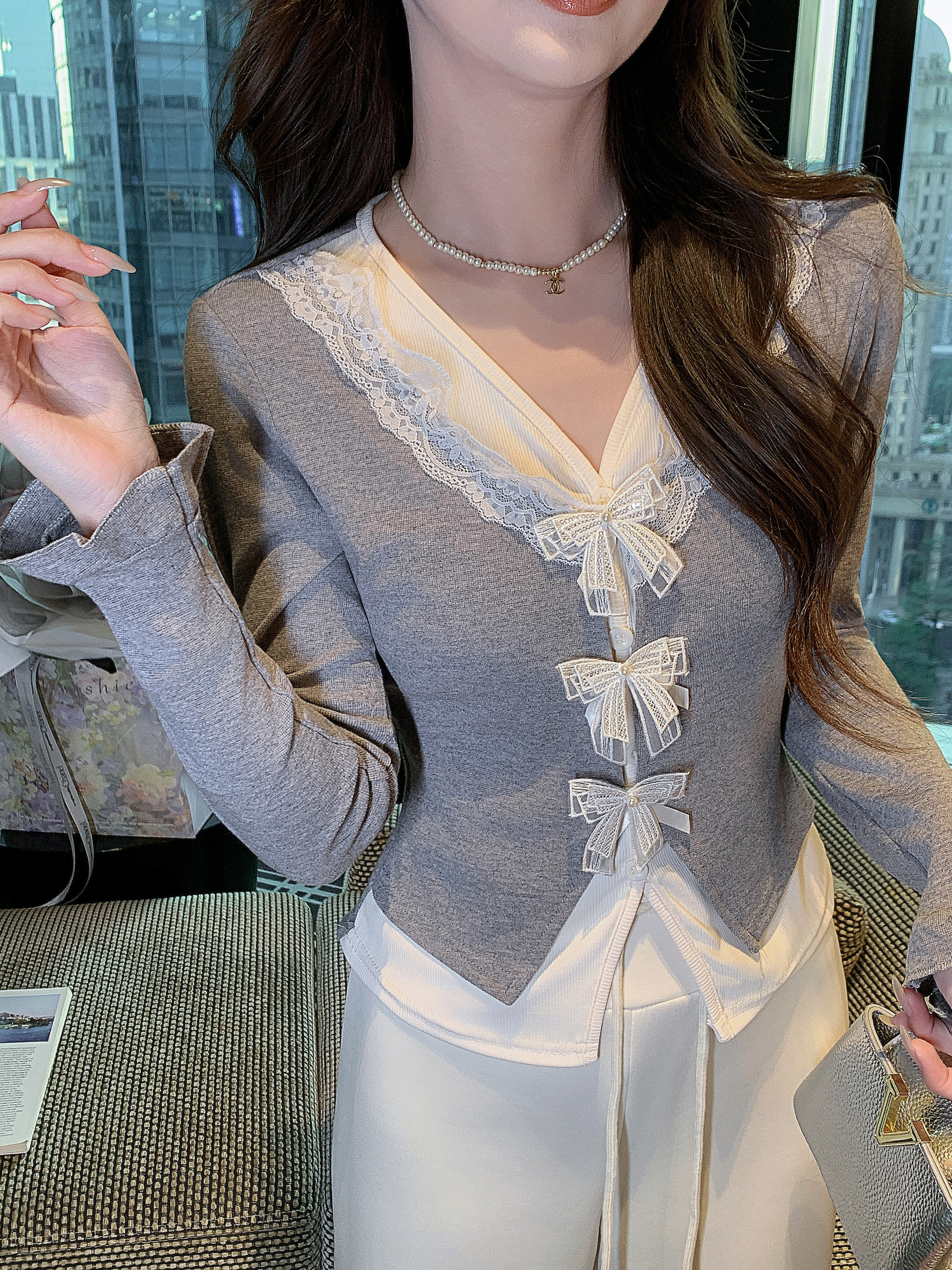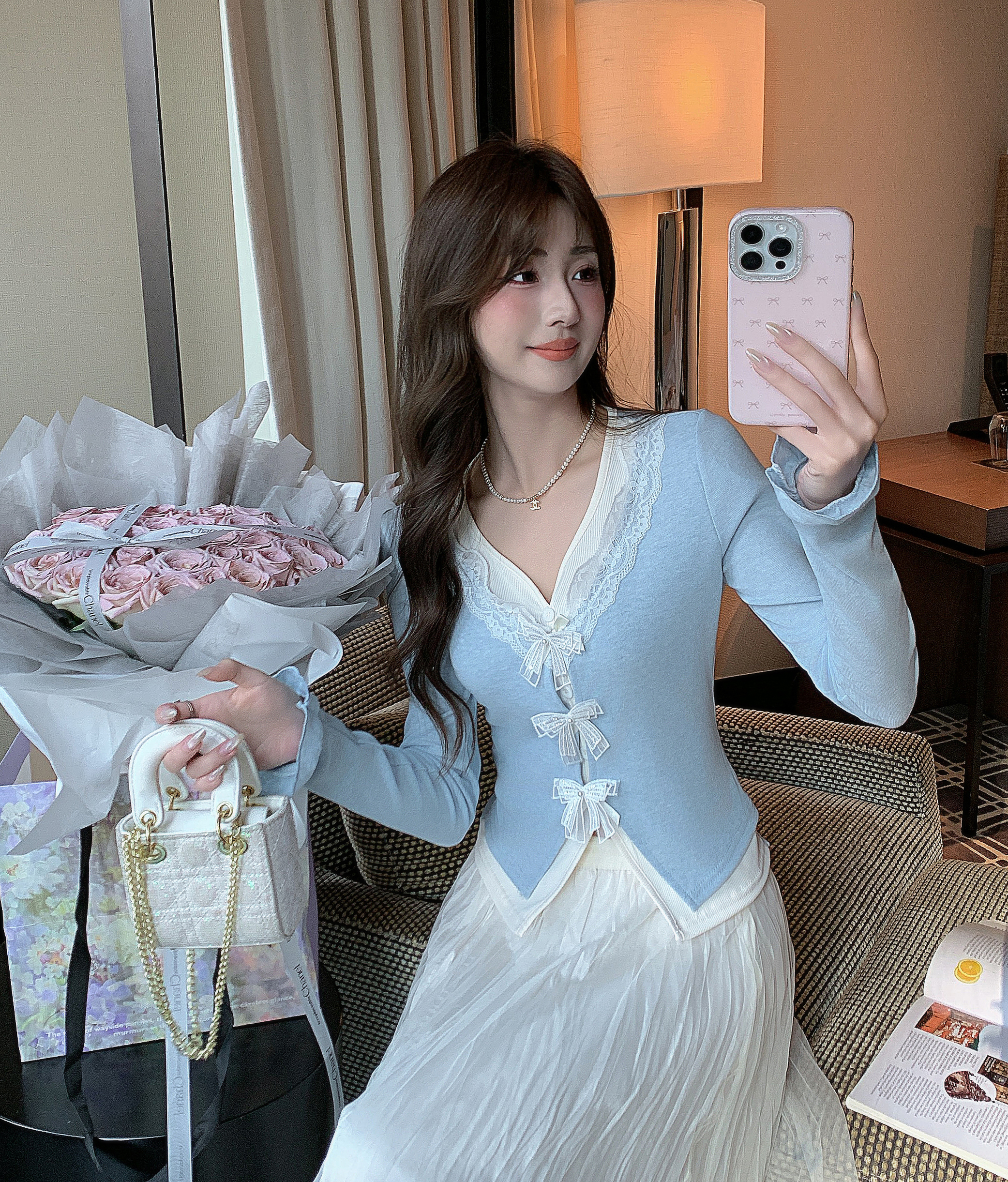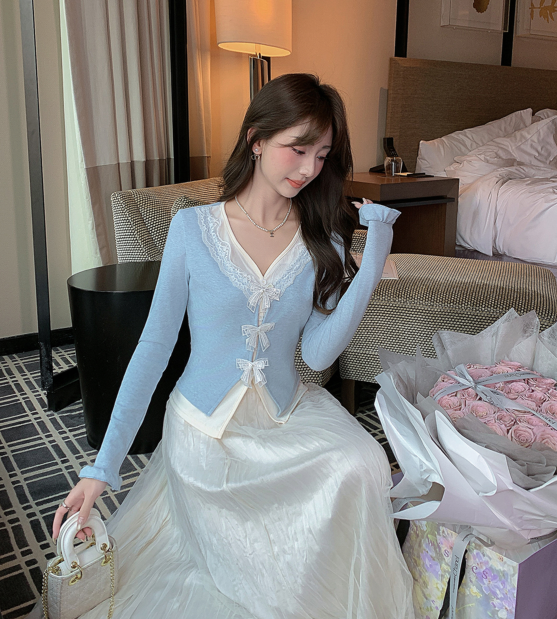 张心子【半糖主义】甜美假两件撞色针织衫女长袖早春新款修身上衣 U2602047