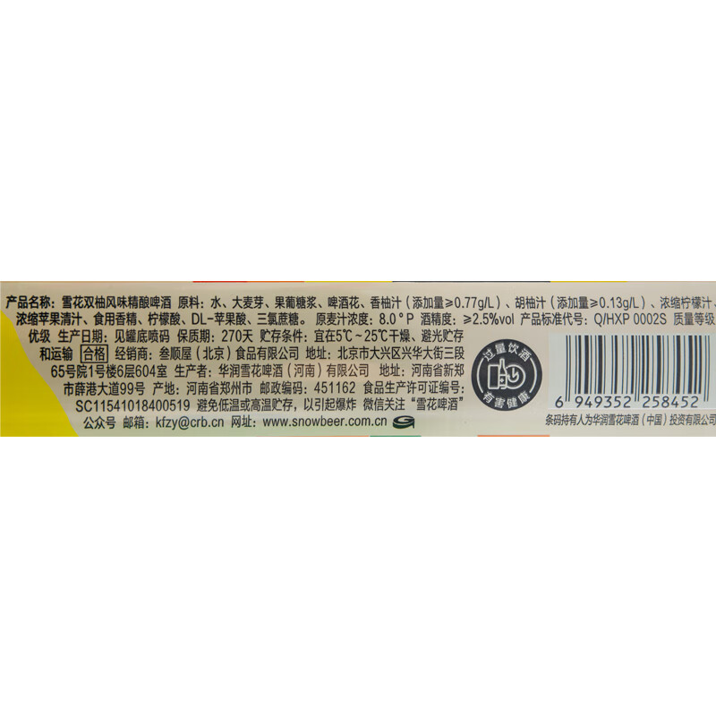 雪花7S联名款精酿啤酒 双柚味 500ml/听