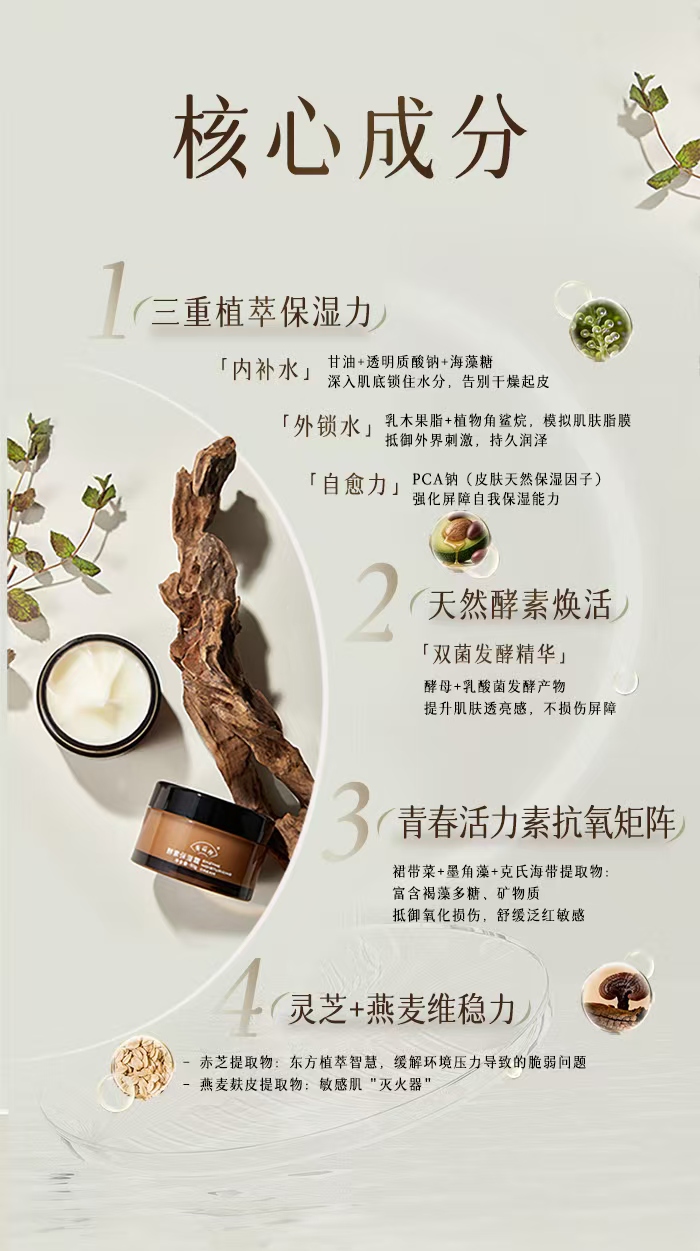纯素养肤 , 长效保湿 、抗皱、 紧致肌肤 ,发酵精华深度,保湿养护肌肤微生态🌹🌹🌹