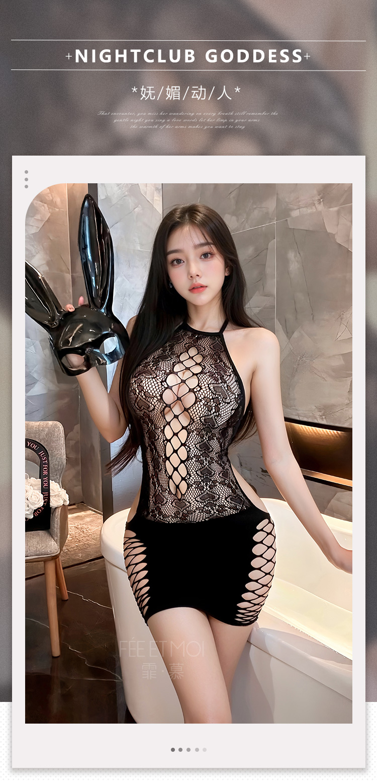 霏慕 爱意相连镂空包臀网衣裙7553 情趣内衣女约会战袍床上男女性感激情