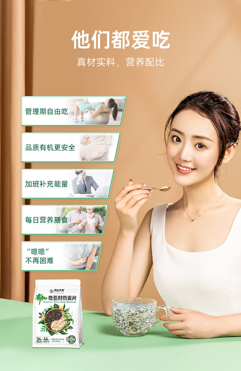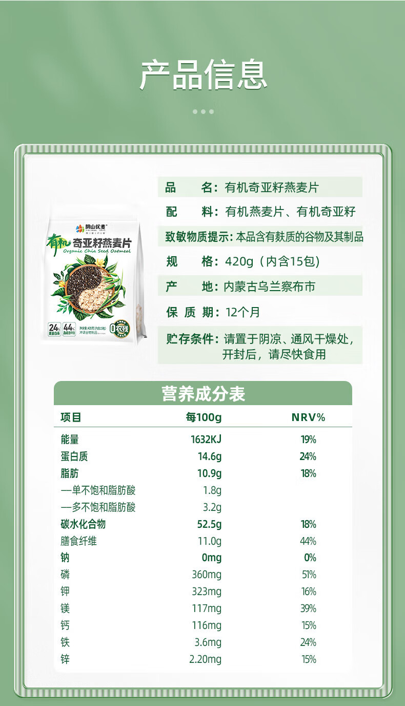 阴山优麦有机奇亚籽燕麦片 420g/袋