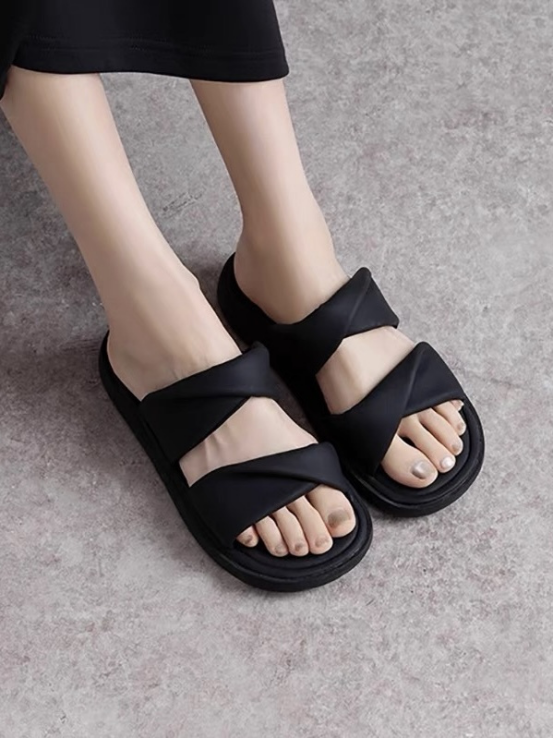 团长碎碎念 这双太舒服了👍极致轻盈❗️ 上脚直接封神👊 买过的姐妹都知道 这是一双巨舒服的“踩屎感”凉鞋! 像踩在云上一样舒适的拖鞋,又嗲又奶~ 鞋底舒适度很OK,加厚底,轻便柔软 穿着舒适不累脚 ,搭配任何风格都没问题! 什么都能搭!我建议人手一双! 上脚太好看自带休闲高级的气质! 脚感爆赞,好穿第一名 当你不知道穿什么鞋搭配衣服时 一脚蹬上这双准没错! 怎么样的风格都可以搭✅